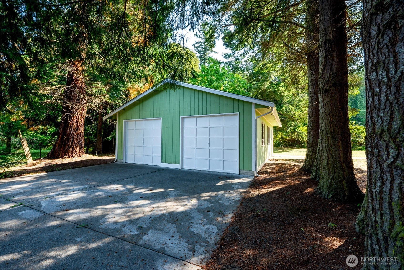Private oasis just minutes from downtown Sequim. This home has been upgraded just in time for you to move in! New roof and gutters in 2023, new carpet and toilets in 2025, recent septic inspection and pumping completed. New well pump, pressure tank and controls within the last few years. A large detached double garage is ready for vehicles, workshop or storage. Privacy trees around, and adjacent open field for activities or livestock. Garage/shop has new lighting and electrical panel w/plenty of power. Plumbing roughed in garage for H/C water, waste and vent. Two parcels Priced to sell