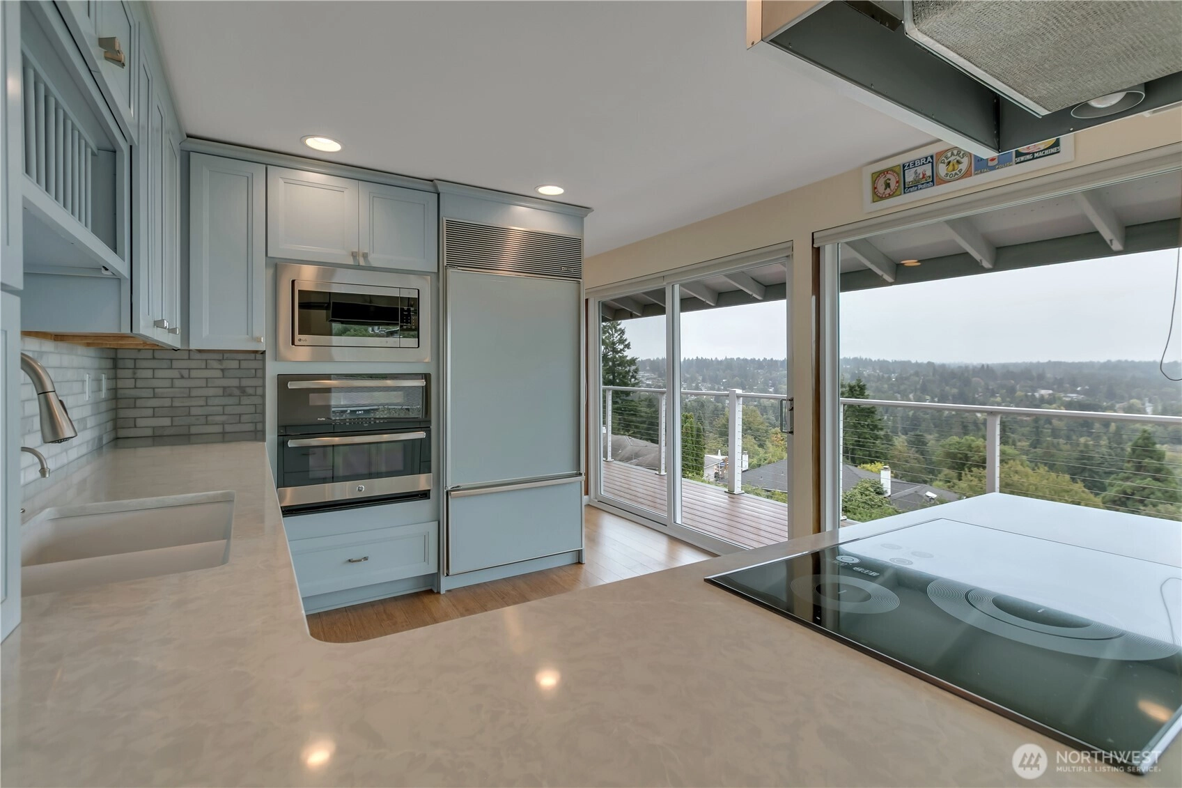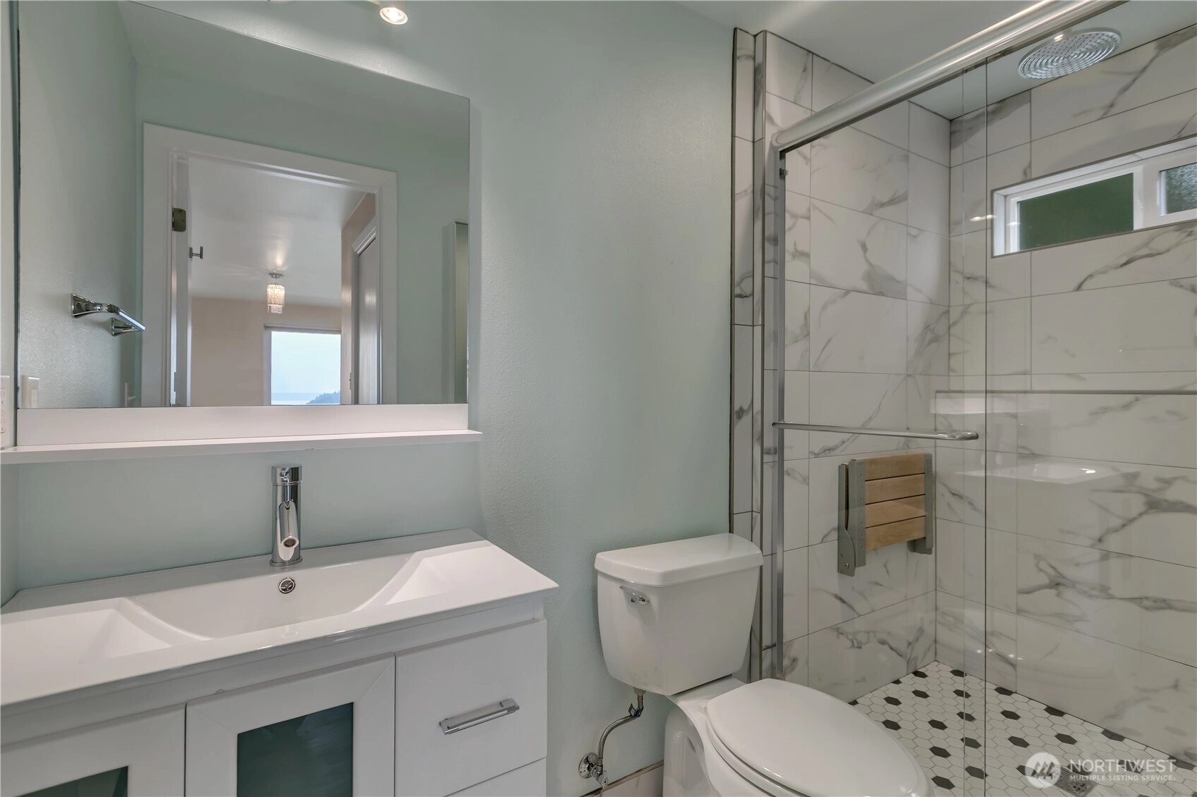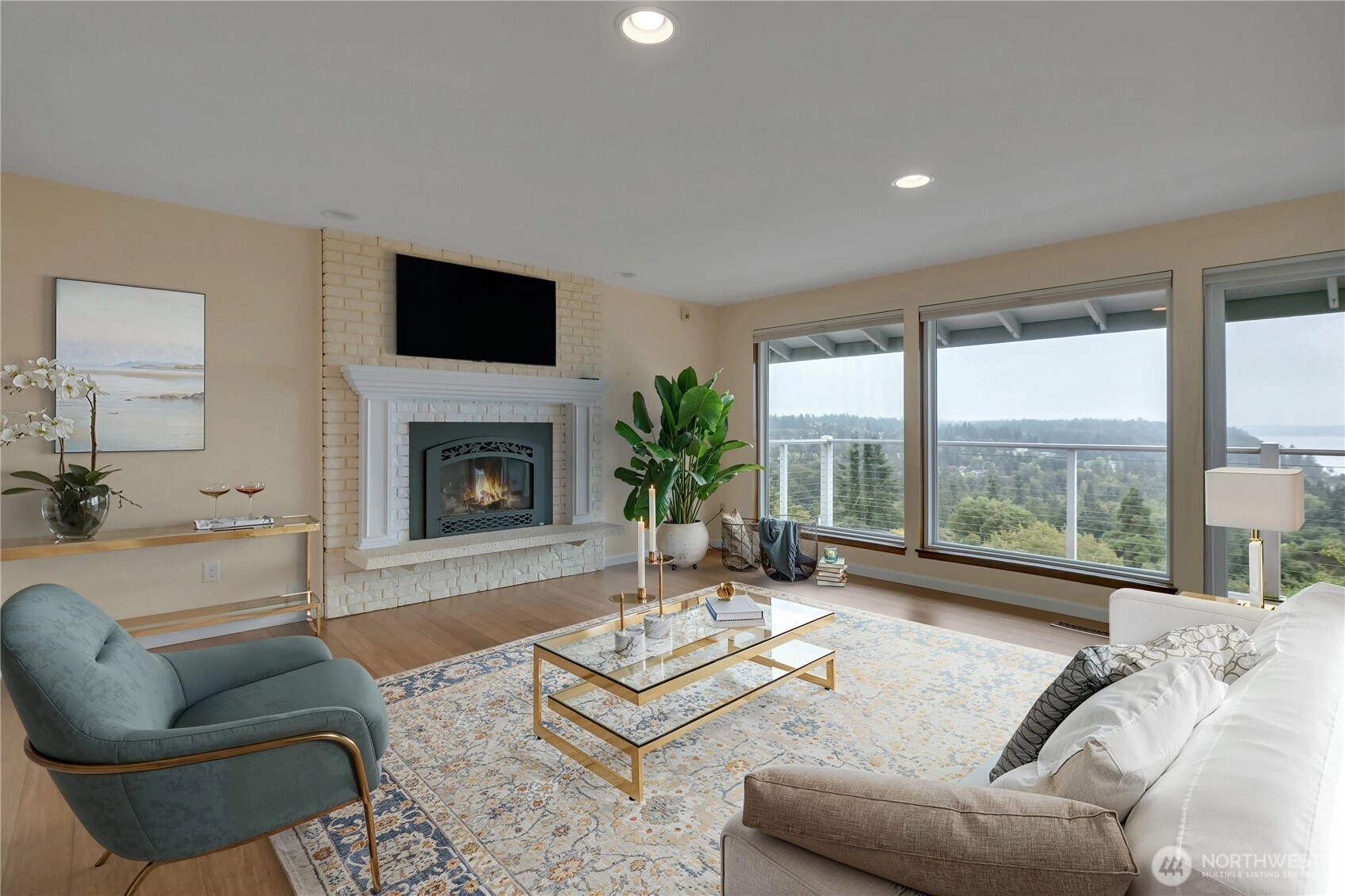Looking for unobstructed views of Puget sound, Mt Rainier & Territorial views as far as the eye can see, this is it! Upon entry of the main floor you will find a nice living space, dining area, beautiful updated kitchen featuring new stylish cabinets, quartz countertops & built in appliances, family room w/gas fireplace & half bath. The bamboo flooring compliments this level. Notice those evening sunsets. The lower level offers a primary suite w/private bath, walk-in closet & an additional view deck for relaxing. Two additional bedrooms, full bath & laundry space complete this floor. Looking for a shop? See the daylight basement/shop for arts & crafts, or maybe more storage. Located on a nicely landscaped lot. Lot A beach rights are a plus…