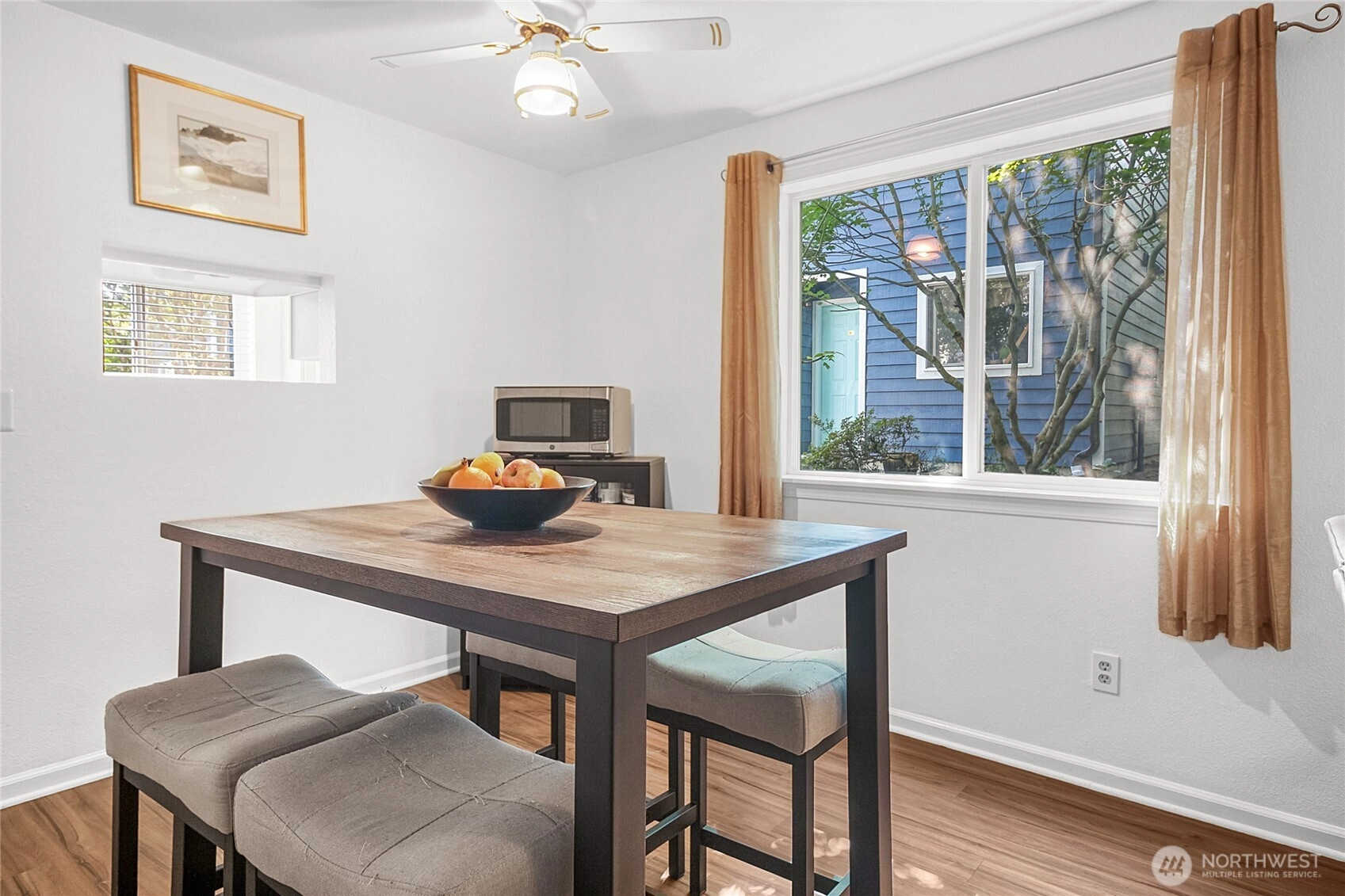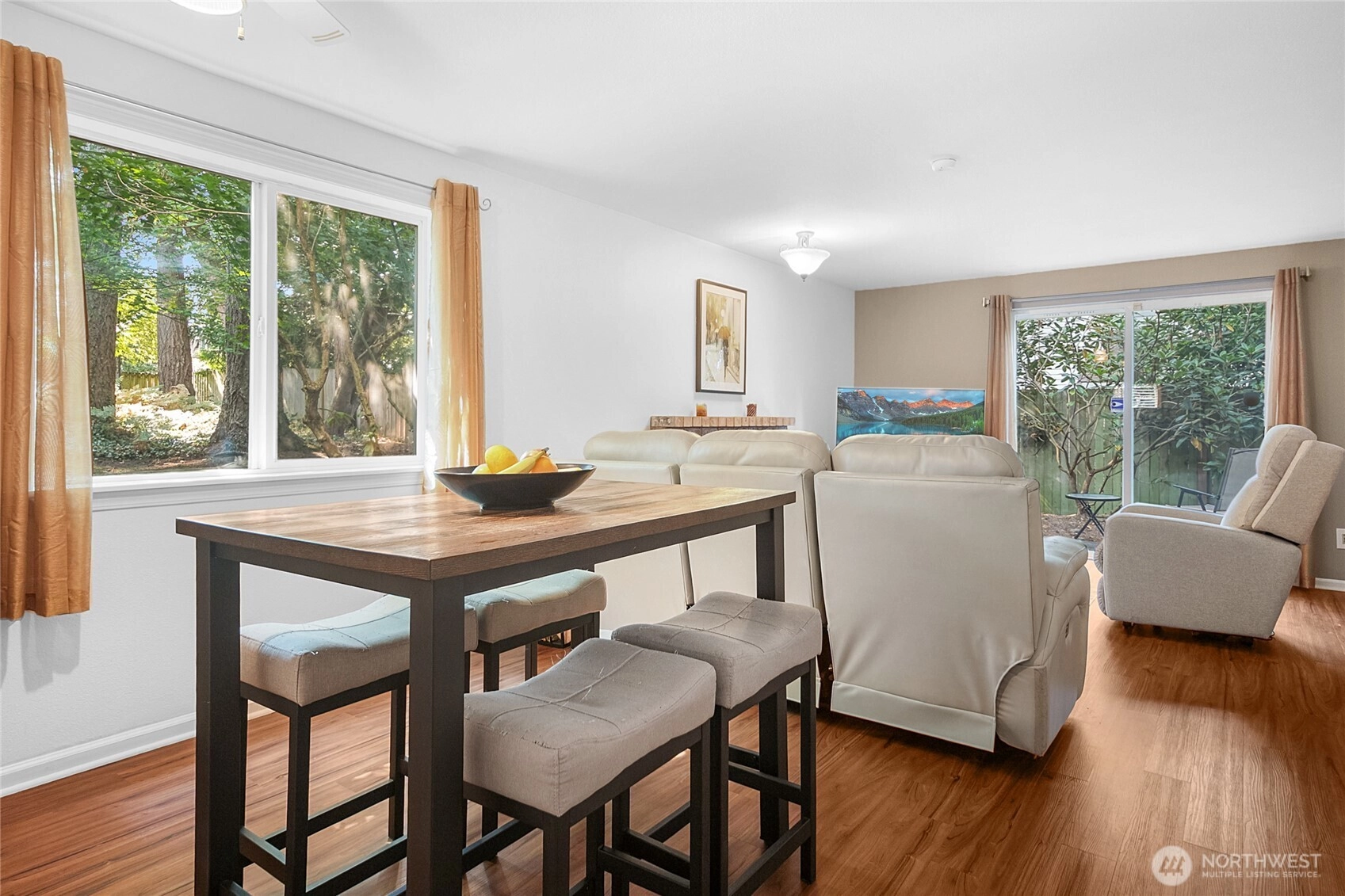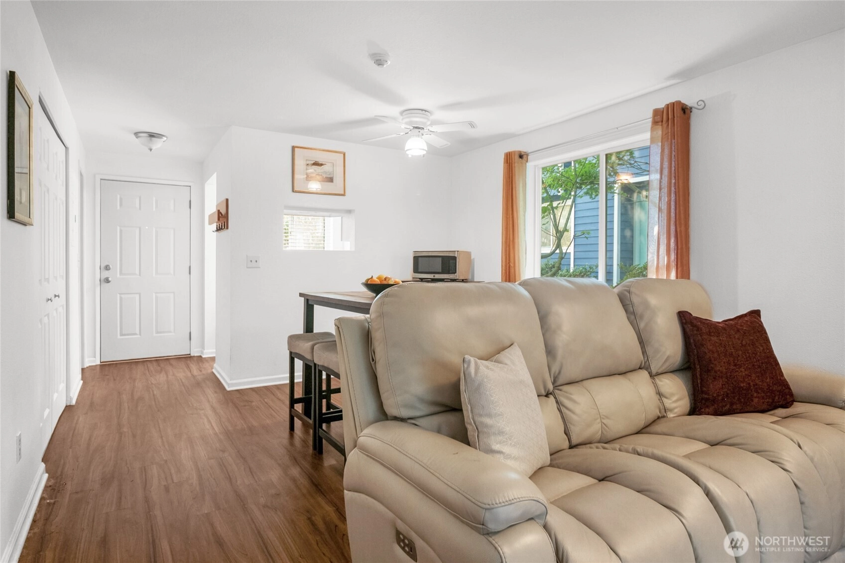 Welcome to this townhome nestled in the heart of Mountlake Terrace. Filled with light, it offers an open and inviting layout with the optimal blend of comfort, style, and convenience. The spacious living area flows effortlessly into the dining space and updated kitchen -- perfect for relaxing or entertaining. Upstairs are two generously-sized bedrooms and a full bathroom. This home is in immaculate condition! Located just minutes from the new Mountlake Terrace Light Rail Station, commuting has never been easier. Enjoy nearby parks, trails, shopping, and dining — all within a friendly community. Whether you're a first-time buyer or looking to downsize, this move-in ready townhome offers a low-maintenance lifestyle in an unbeatable location.