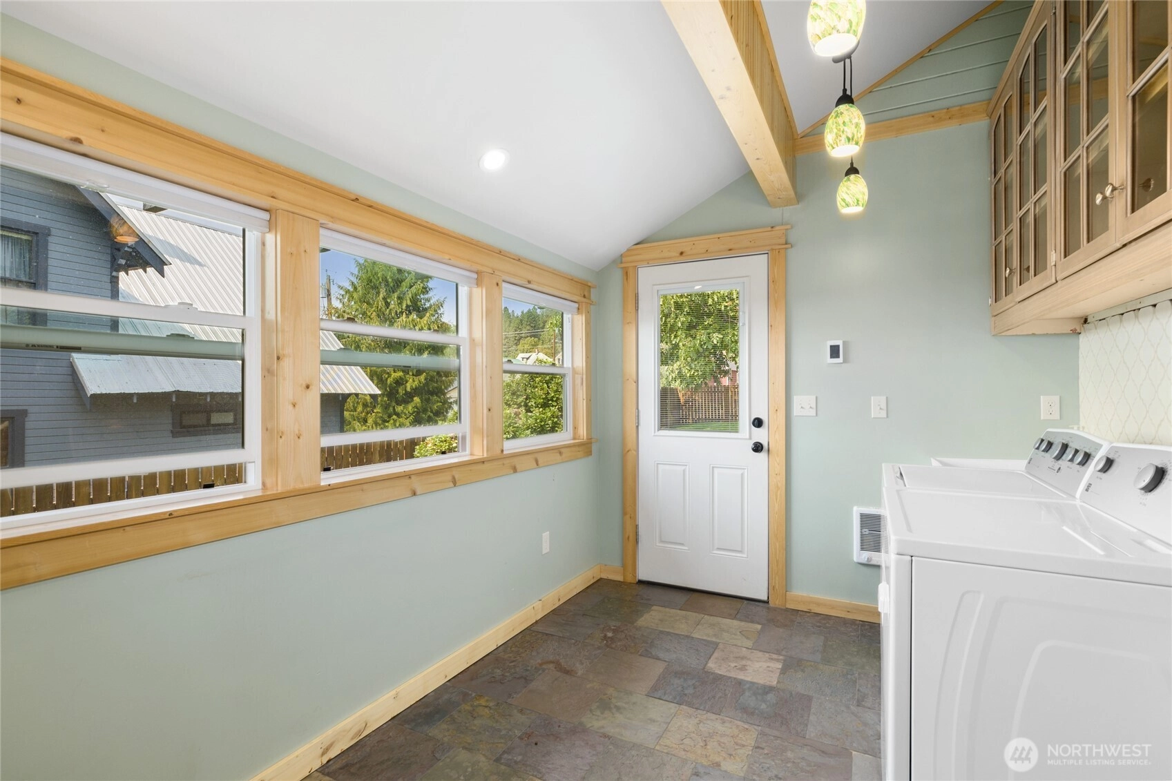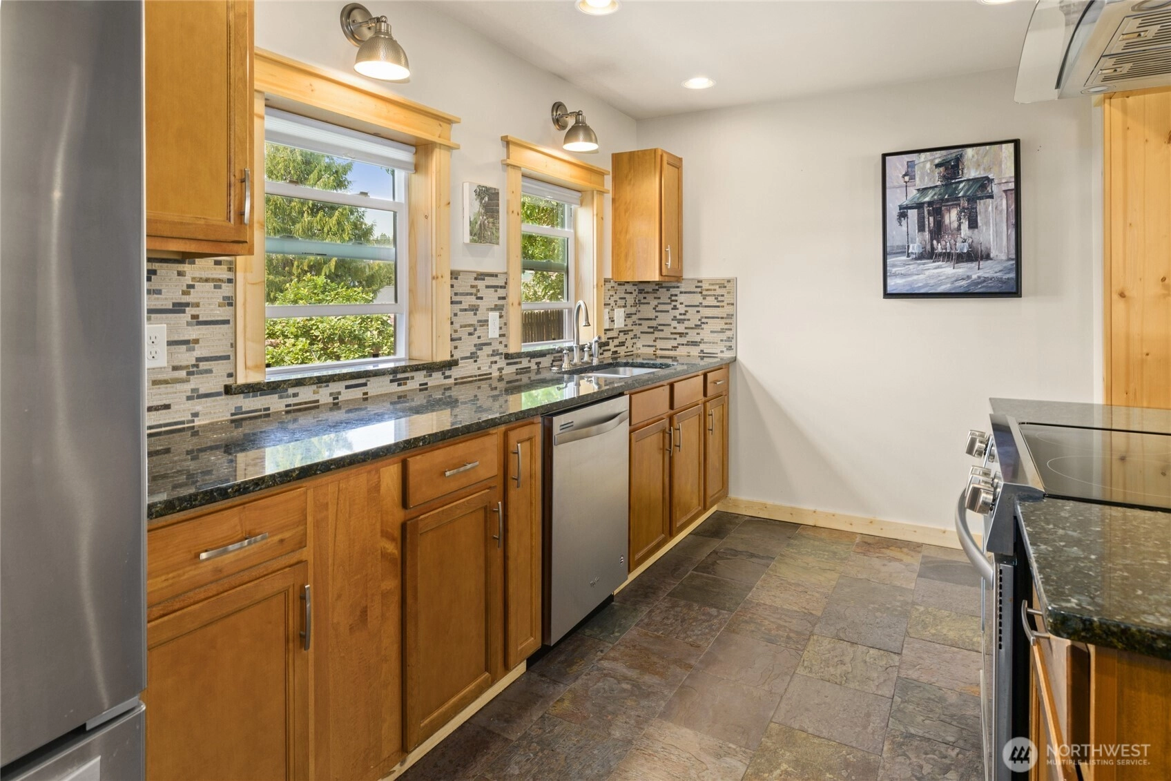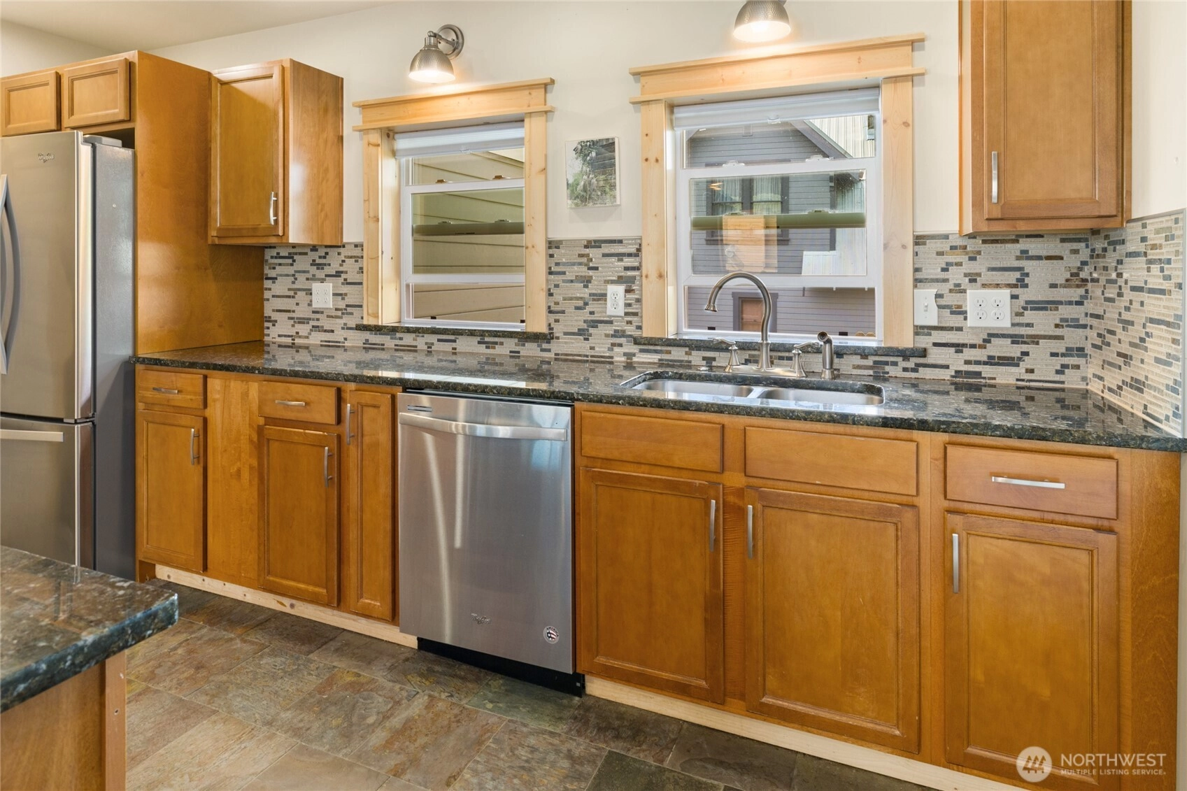 Welcome to this inviting 3-bedroom, 1.75-bath home offering a perfect blend of comfort and modern updates. The open concept living and dining area flows into a stylish kitchen with granite counters and stainless-steel appliances. A spacious utility/mud room provides ample storage, while radiant floor heating and a dual-head mini-split heat pump ensure year-round comfort. French doors open to a large fully fenced yard featuring a spacious deck and immaculate lawn with in-ground sprinklers, plus a garden area with raised beds ideal for outdoor living. A detached two-car garage with alley access needs work but adds convenience. In close proximity to historic downtown Roslyn and Teanaway Community Forest Trailhead.