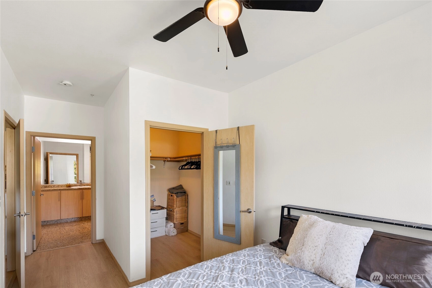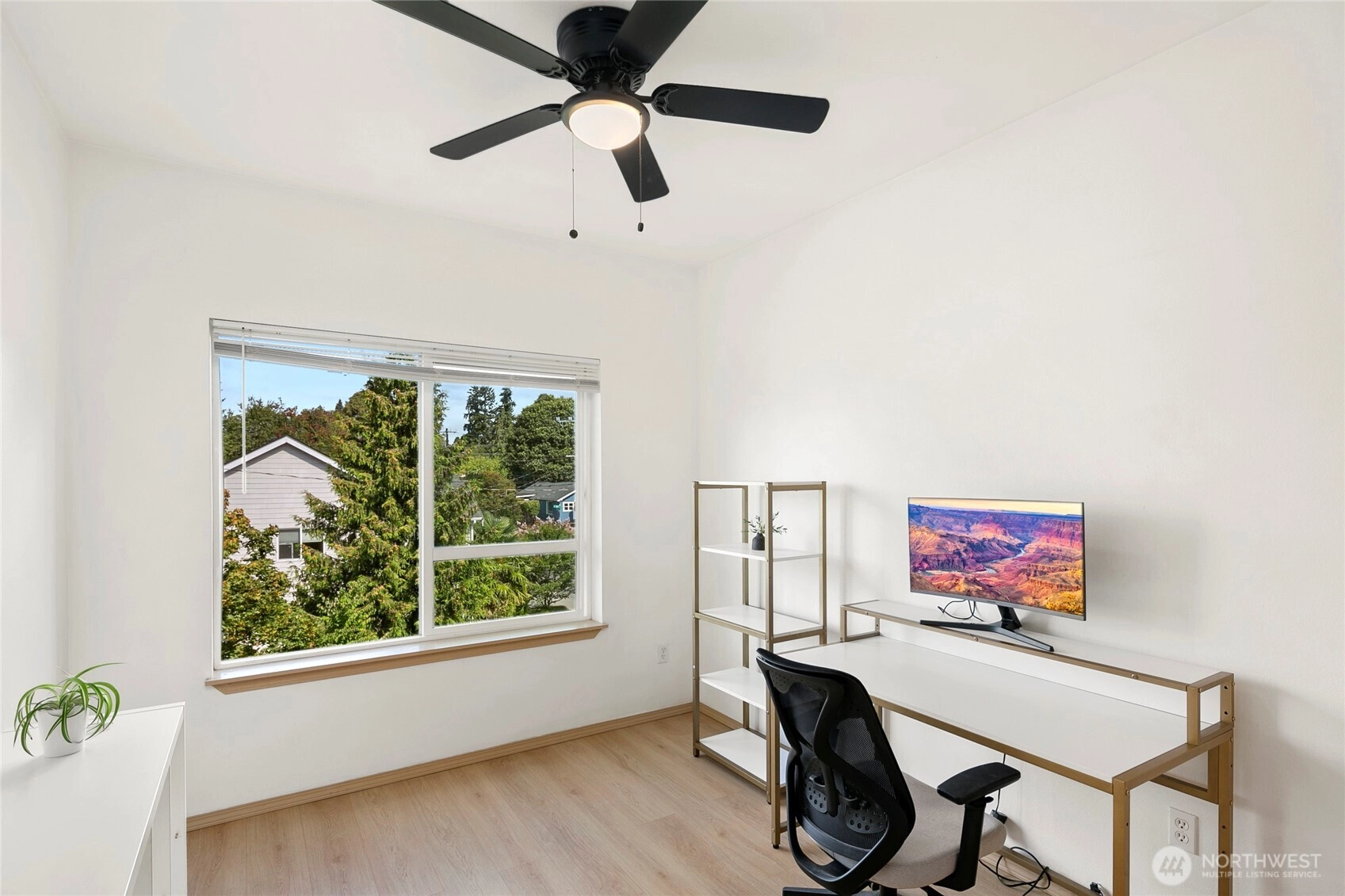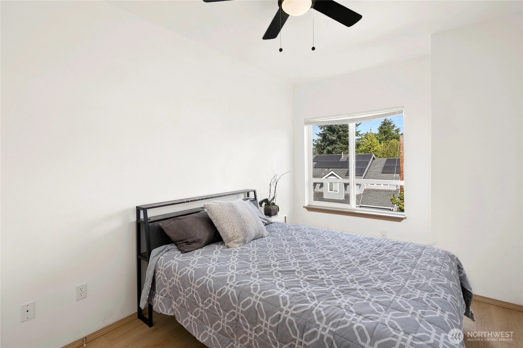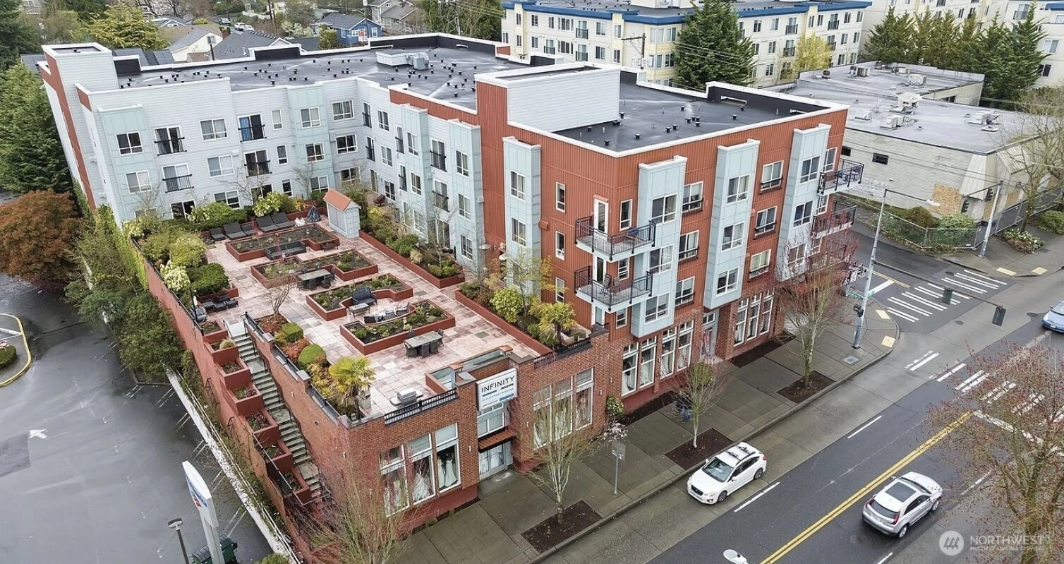 Welcome to this beautifully updated 2-bed, 2-bath top-floor & pet friendly condo in the heart of Greenwood! Step inside to 9-foot ceiling height, abundant natural light, and a serene and tranquil setting that feels like home the moment you arrive. Brand-new bedroom floorings, fresh ceiling fans, and new GE appliances elevate the modern, move-in ready design. The spacious primary suite offers a generous walk-in closet and private en-suite bath, while the second bedroom and full bath provide the perfect setup for guests or office. Don't miss the community patio (hidden gem), and 24hr fitness room! Tucked into a prime vibrant location, just blocks from Green Lake, Phinney Ridge, coffee shops, restaurants, and transit.