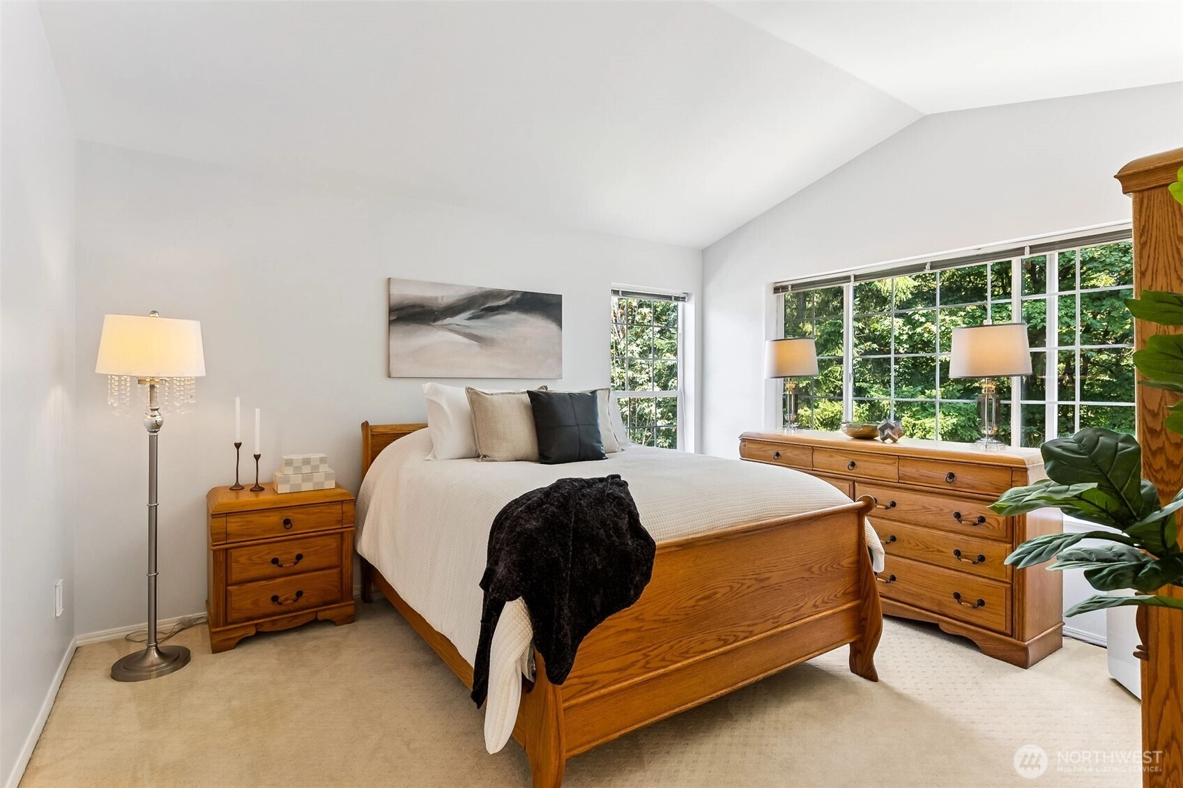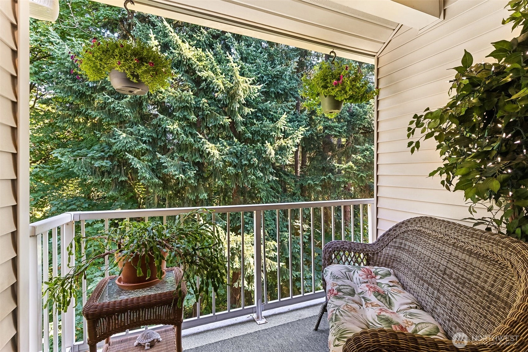 Tucked inside the gated community of Regency Ridge, this turnkey end-unit townhome offers comfort and privacy. The light-filled living room with vaulted ceilings and a cozy gas fireplace creates a welcoming space, while the open concept spacious kitchen features crisp white cabinets, granite counters and stainless steel appliances. Step outside to enjoy peaceful mornings on the covered deck with greenbelt and garden views, or unwind in the landscaped “secret garden” with sitting area and sylvan views. The upper level features a spacious primary suite, a second bedroom, and a full bath. A rare 2nd deeded covered garage, community clubhouse, and secure entry complete this well-maintained, quiet retreat close to shopping, dining, and freeways.