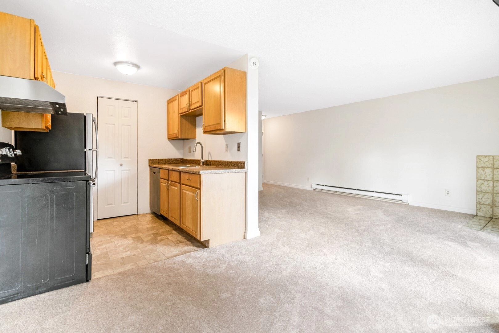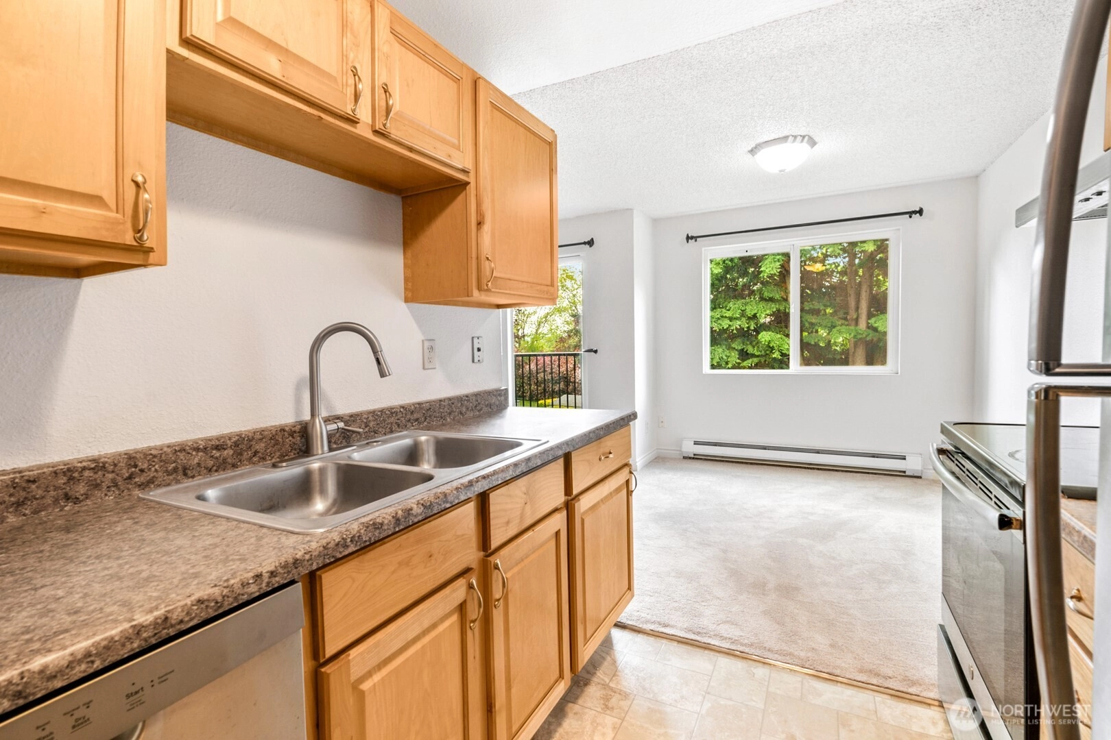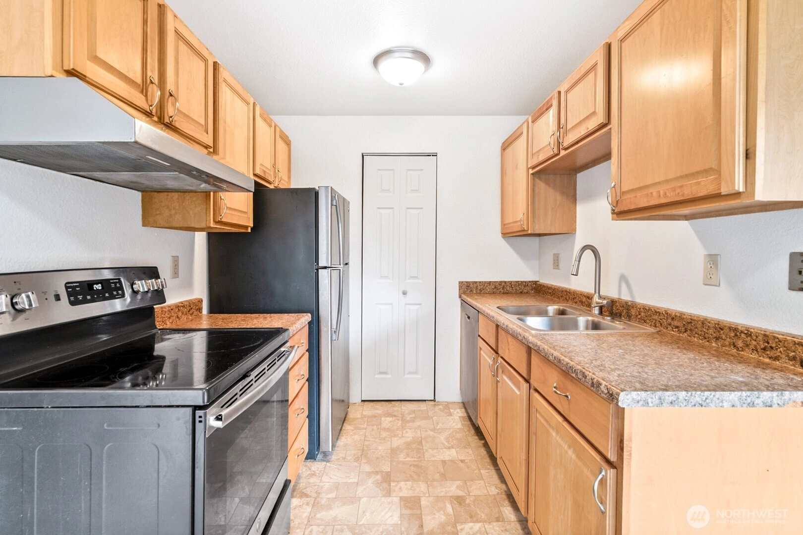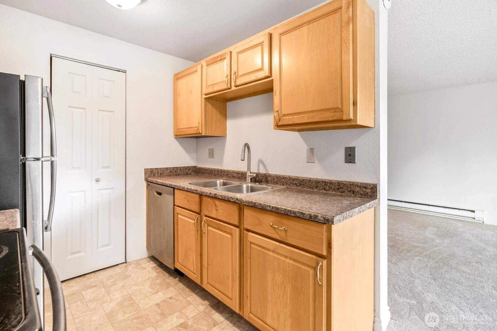 Don't miss this affordable gem of a condo in great area with recent updates! 2 bed 1.5 bath, enjoy brand new floors throughout, fresh paint, new washer and dryer. Super close commute to downtown Seattle, convenient access to Southcenter shopping district, Foster Golf Club, I-5, I-405, and Sea-Tac airport. Well managed HOA. No special assessment. 2 pets allowed. Includes one private parking spot - spot 77.