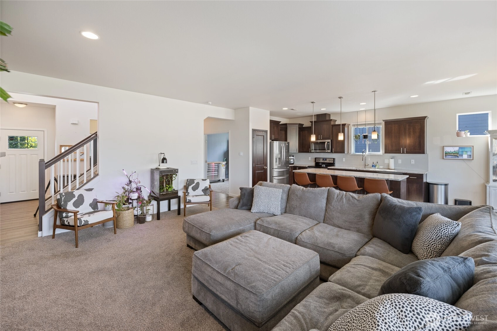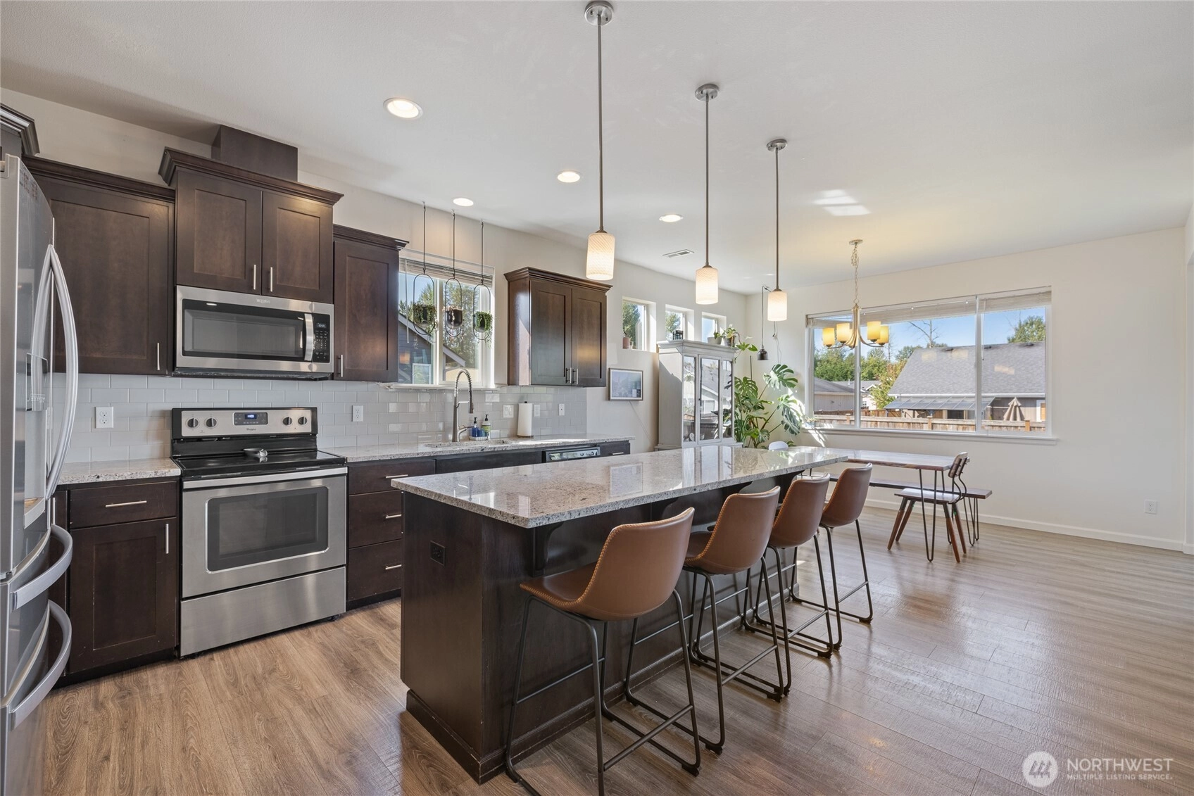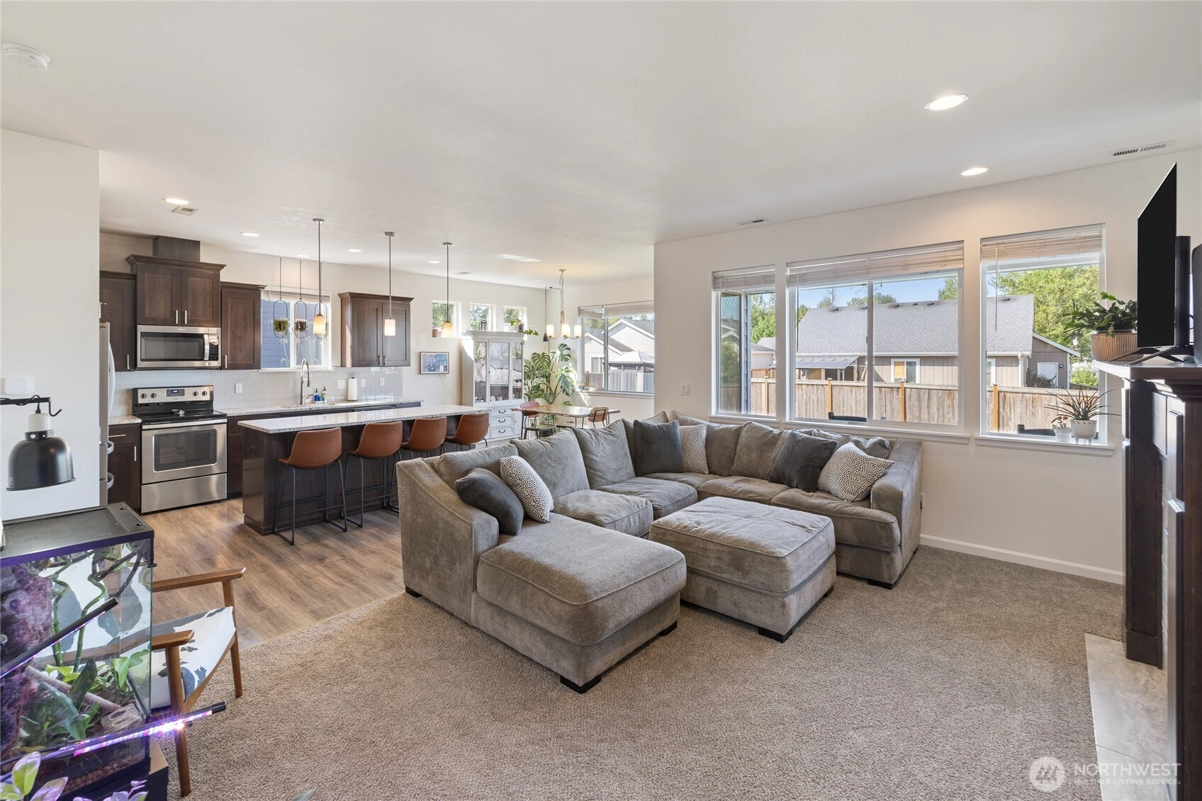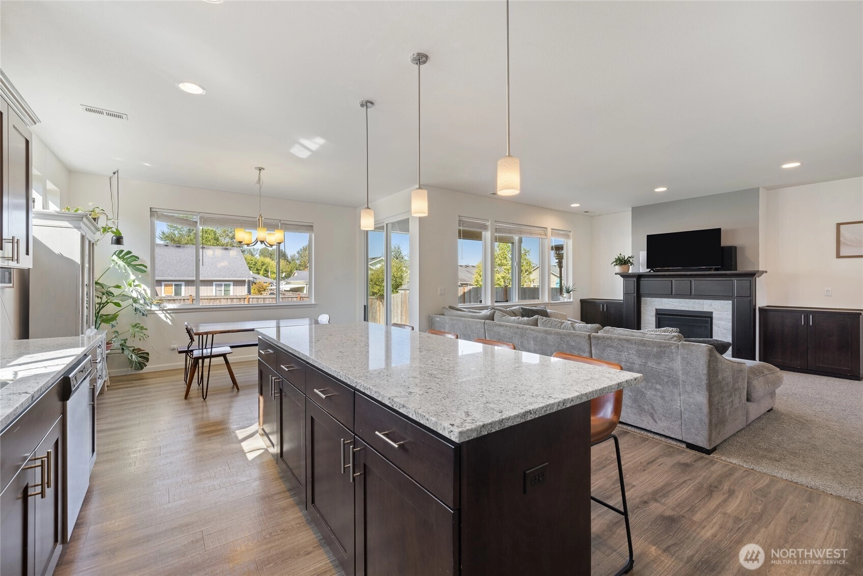 Welcome to The Meadows in Orting! This 2018 4 bed/2.5 bath home features vaulted & 9-ft ceilings, a spacious great room w/gas fireplace, and a main floor den/office. The kitchen shines with granite counters, large island & stainless appliances. Upstairs offers a bonus/rec room, luxurious 5-piece primary bath, and walk-in closet. Extras include a 3-car garage, tankless water heater, A/C, generator hookup & ample parking. Fully fenced yard with patio is perfect for entertaining! Minutes to grocery stores, parks, trails,& HWY 162. This home checks all the boxes including a view of Mt. Rainier.
