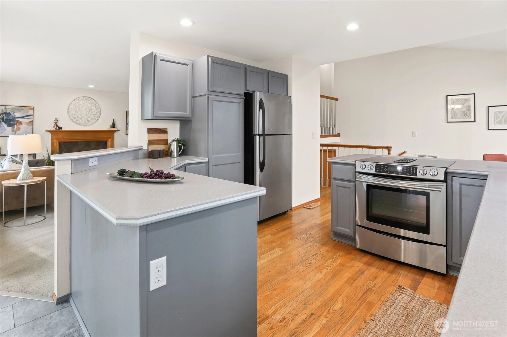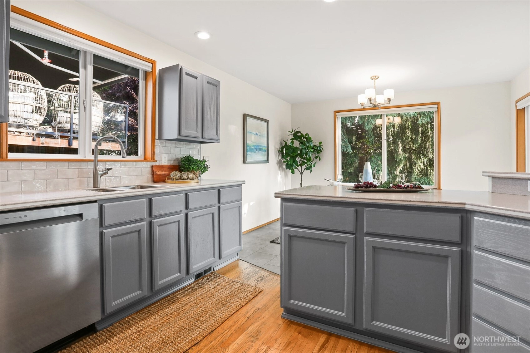 Don't miss this fabulous contemporary home located just above popular Lincoln Park! Well maintained with new siding, fresh exterior paint and modern front porch. Circular floor plan on main level features spacious living room with gas fireplace and South facing windows for plenty of natural light. Bright kitchen with breakfast bar opens out to dining room and deck, perfect for Summer BBQ's. Upper level has a primary suite with 3/4 bth and two more bedrooms and full bth. Daylight lower level has a great recreation room with high ceilings, new carpet, paint and direct access to private patio and yard. 4th bd and bth is perfect for guest suite! Big two car garage. Quiet dead end street. Awesome neighborhood! Stroll to Park and much more!