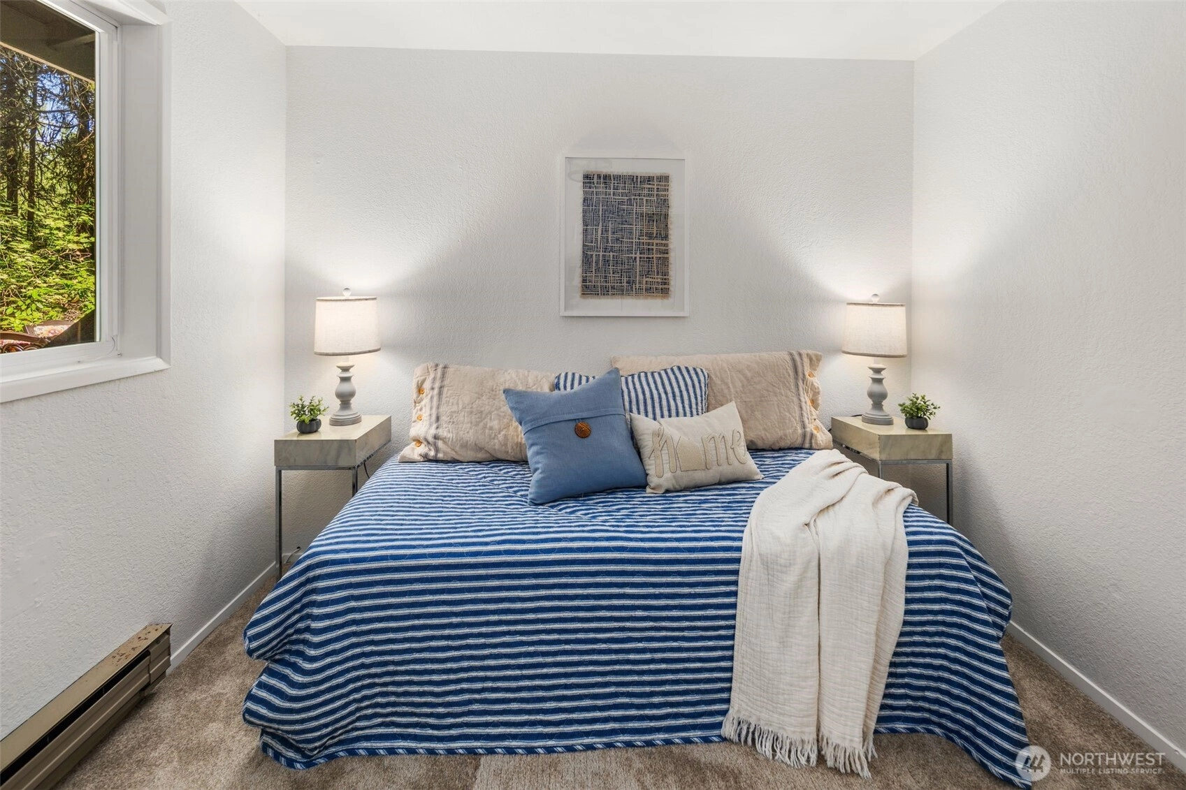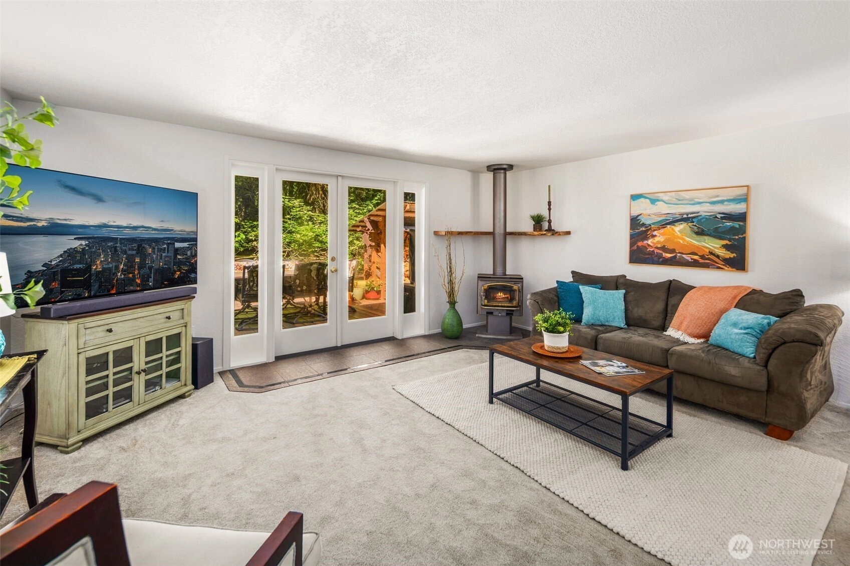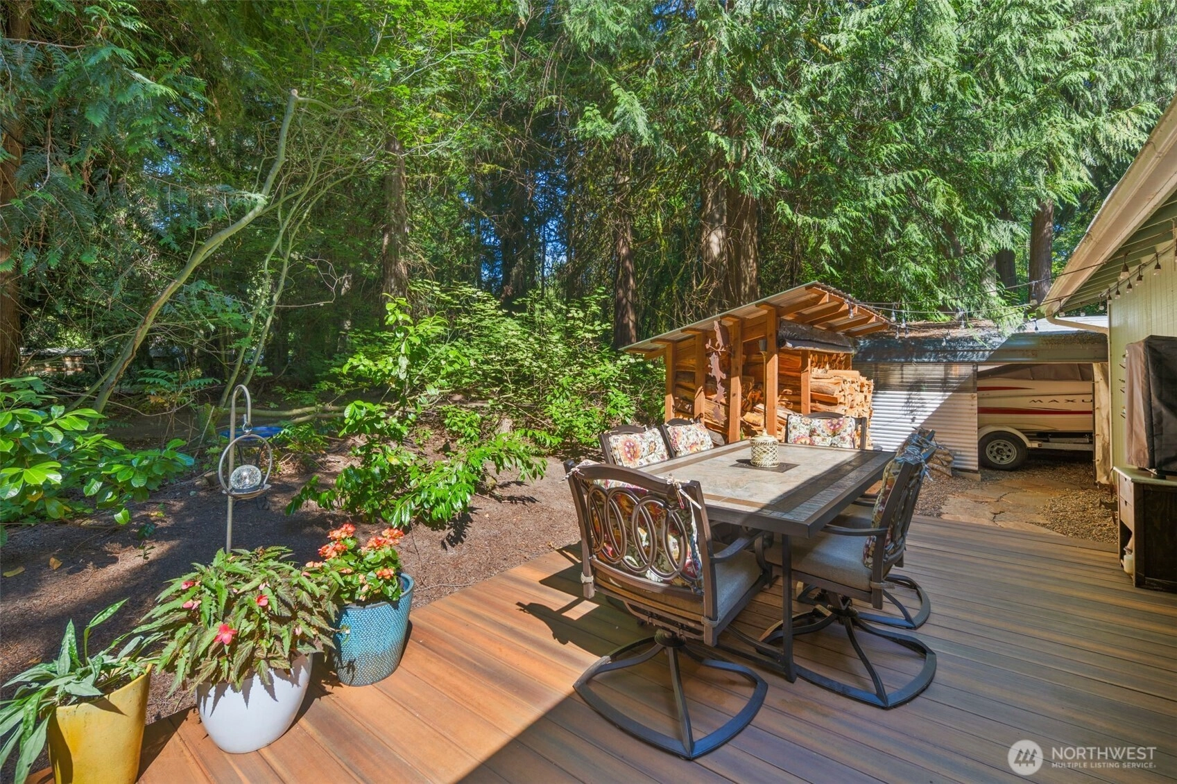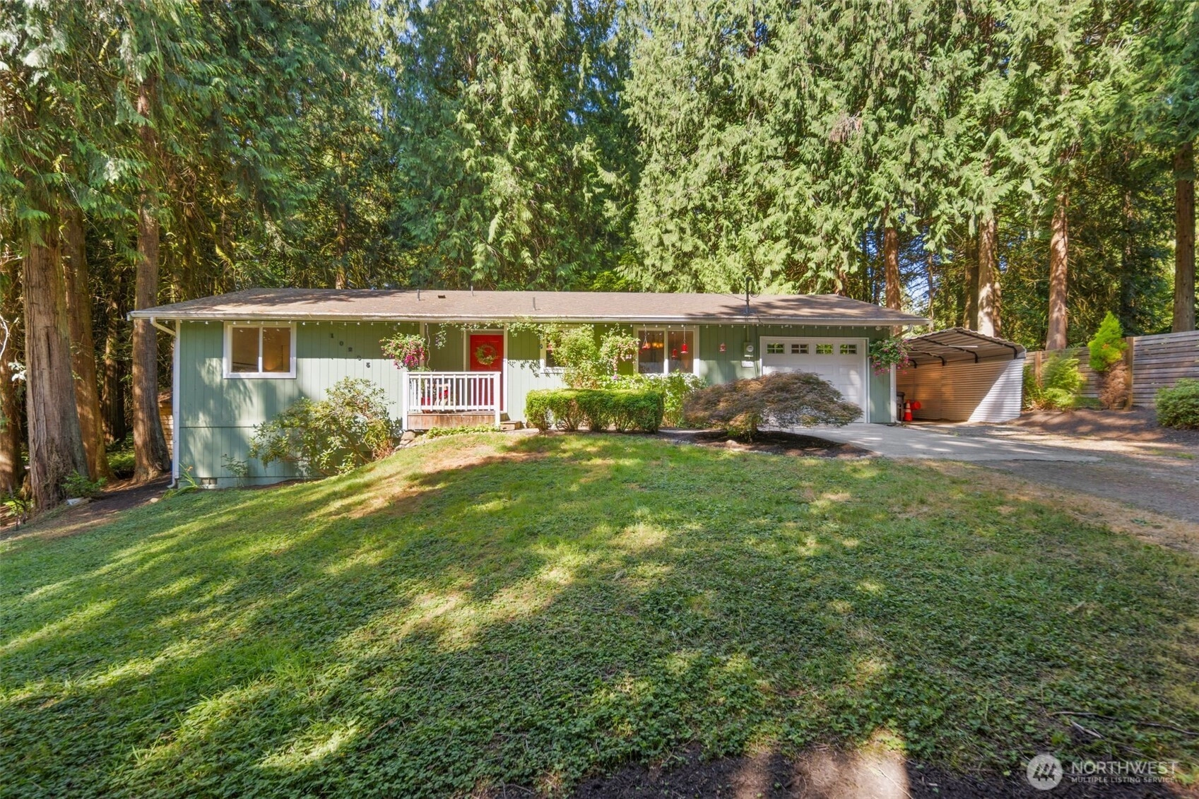Cozy move-in ready Lake Marcel Rambler! 1,100 SF, 3 bedroom, 1.5 bath home situated on a quiet street, only blocks to the main Lake Marcel community private beach/park. Updated kitchen with quartz countertop, lots of storage, and large eating area with built-in. New paint throughout! Living room with wood stove and great access to the expansive deck, perfect for entertaining. Large level lot nestled in surrounding trees for a great sense of privacy and nature. Spacious garage, RV parking, and walk-in crawlspace for extra storage. Only 10 minutes to Carnation or Duvall for shopping, restaurants, trails, parks, and more. You will love this lake community lifestyle!