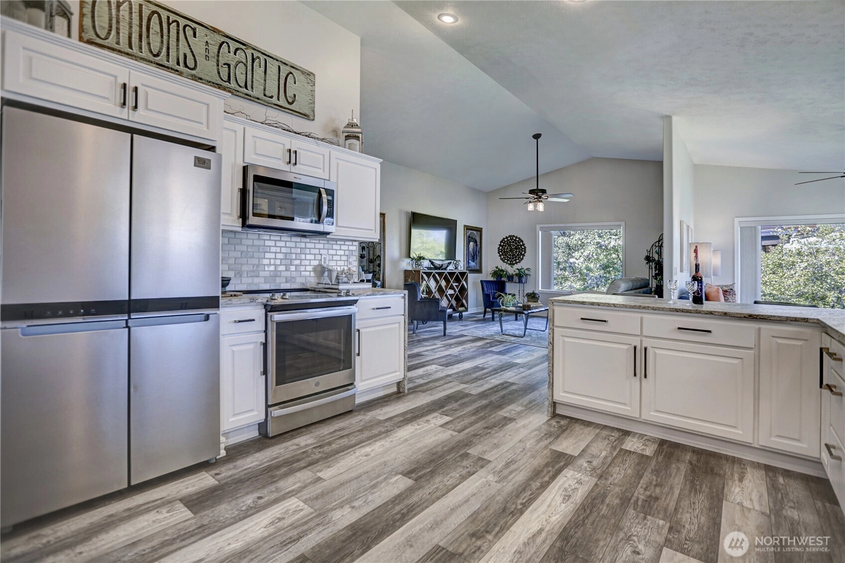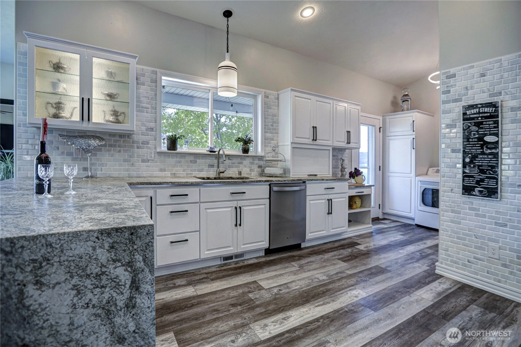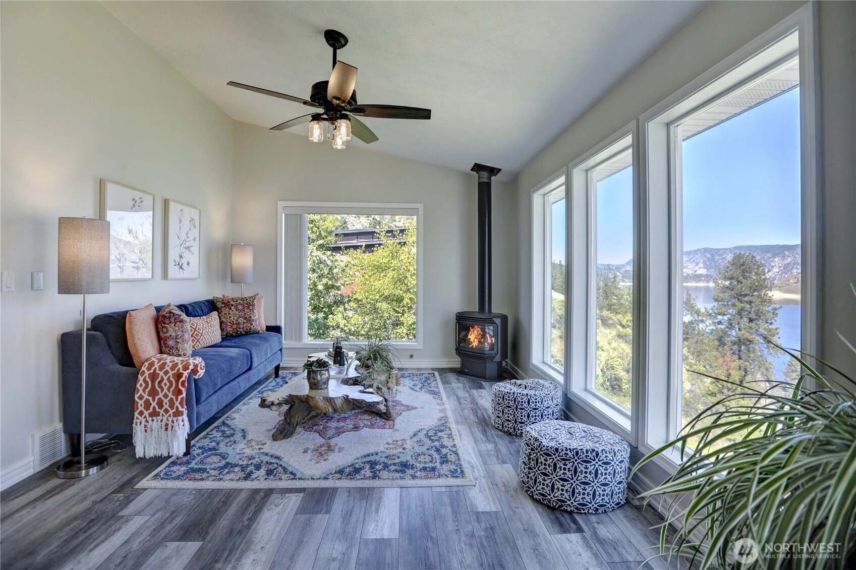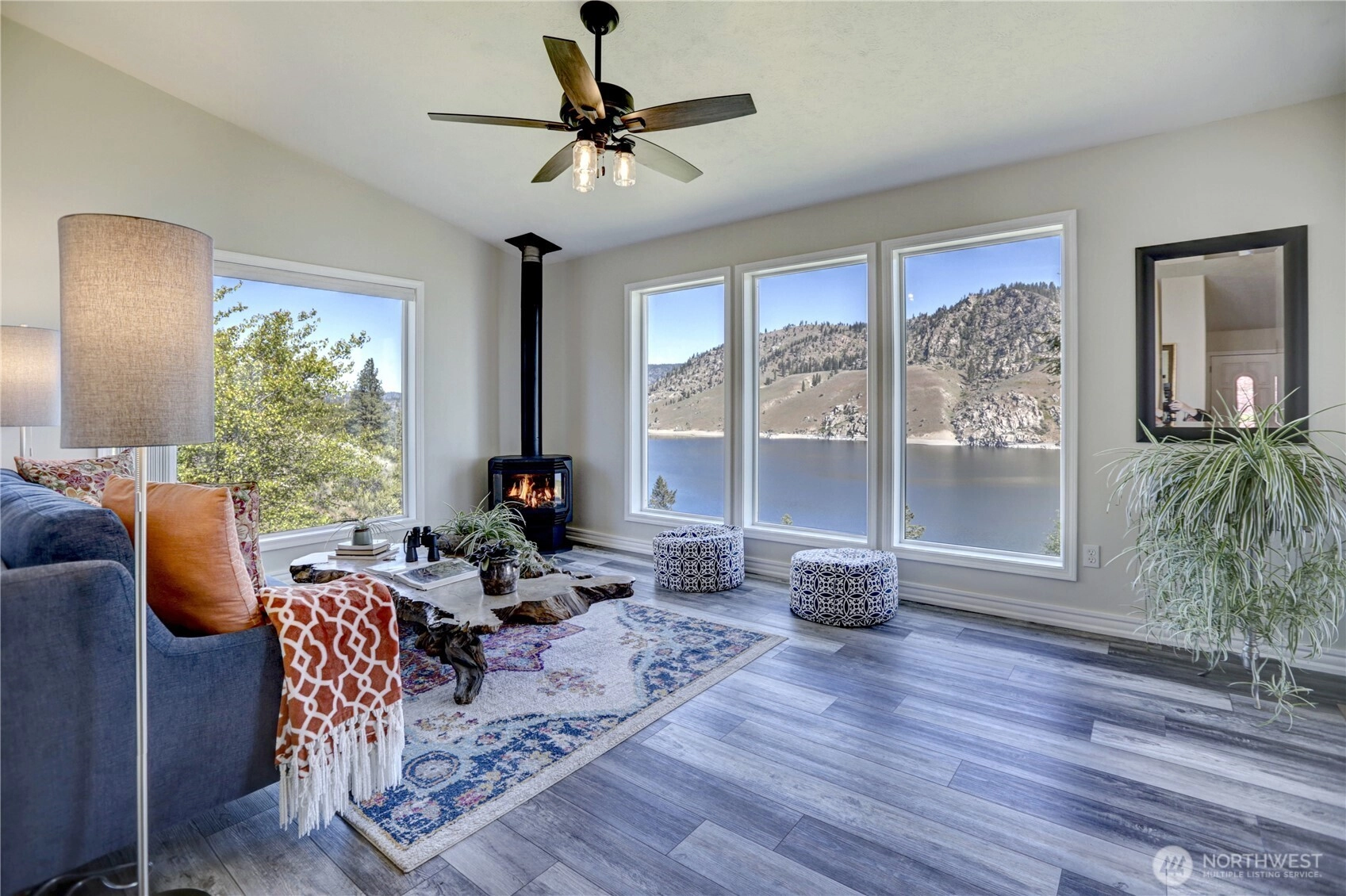 Waterfront living - your dream home on Lake Roosevelt! This well-maintained 4-bed, 2 bath home offers stunning lake views and year round comfort. Enjoy a flowing layout, designer paint, LVP flooring and a stylish kitchen with leathered granite waterfall counters. Relax by the propane stove and watch eagles soar. The primary suite features lake views, a walk in closet and spa bath with soaking tub, shower and double sinks. Main floor laundry adds ease. The finished walkout basement is great for entertaining, offers plenty of room for guests and even has secret room! Outside: fenced yard, RV parking w/water and 30 AMP, 4-car garage w/12 ft doors, 2.5 car detached shop and treed dog run. Includes 2025 water heater, water softener, WA.