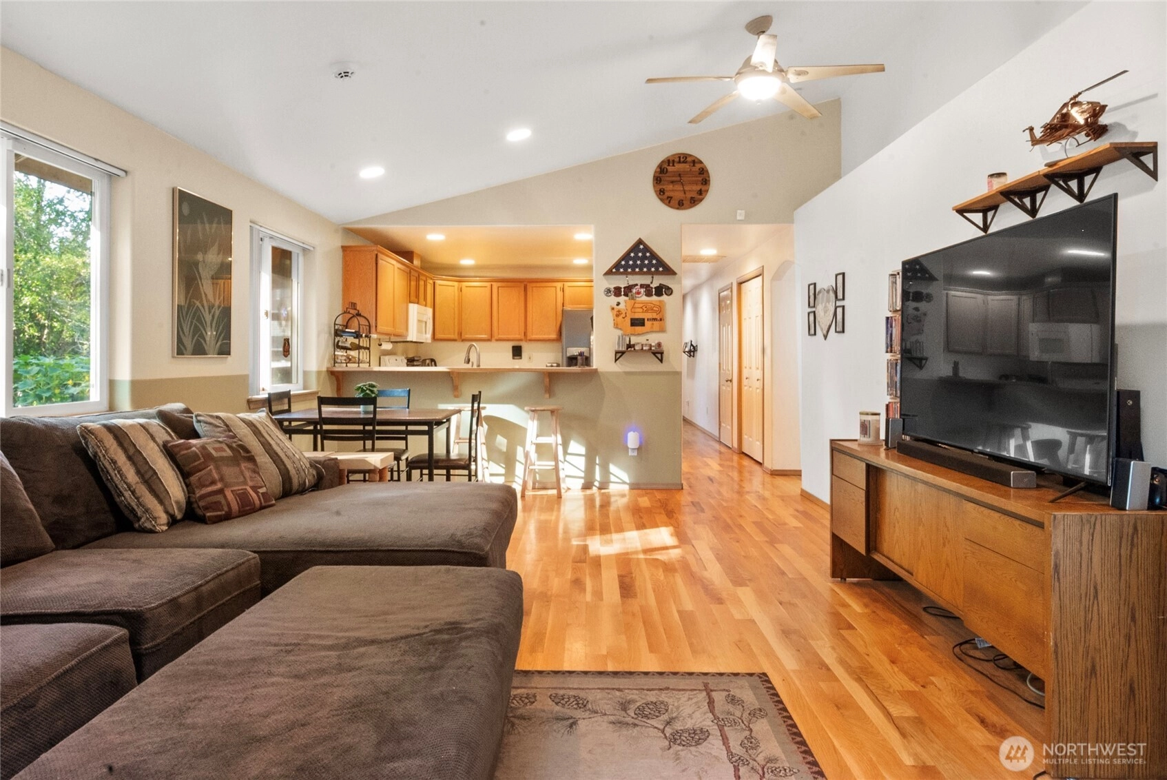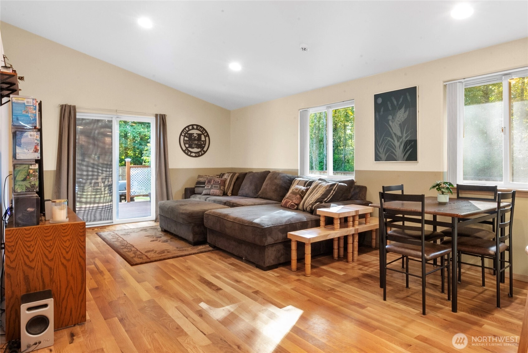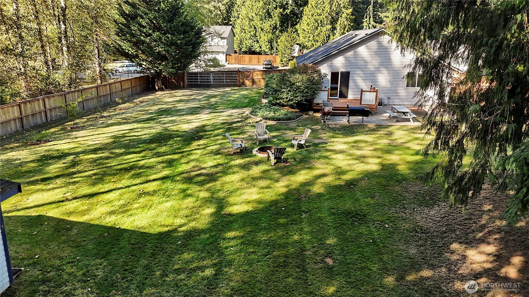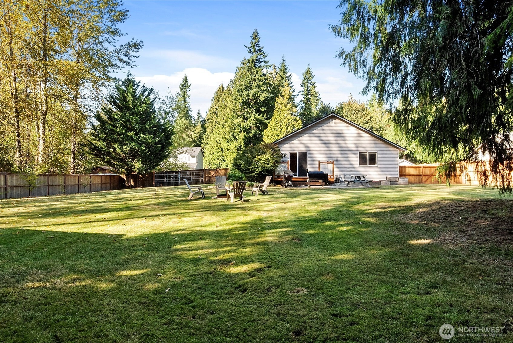 This well-maintained rambler in the sought-after Kackman Creek neighborhood is situated on a nearly half-acre lot backing to private greenspace. Enjoy a south-facing, level, and fully fenced backyard with an outdoor wood-fired sauna, RV/boat pad, dog run, and a 12x12 shed. Inside, you're greeted by beautiful white oak floors and plenty of natural light throughout. The spacious living room features vaulted ceilings, and the kitchen is perfect for everyday living. Primary suite with an attached bath and walk-in closet. With a newer roof (2023), a 2-car garage, 50 acres of walking trails, and easy access to Hwy 9 & I-5, this home offers the perfect balance of quiet living and convenience.