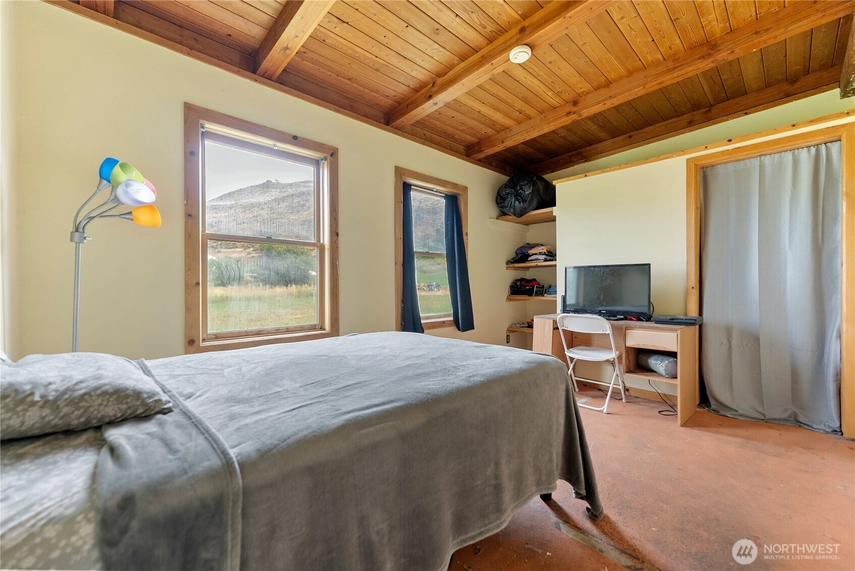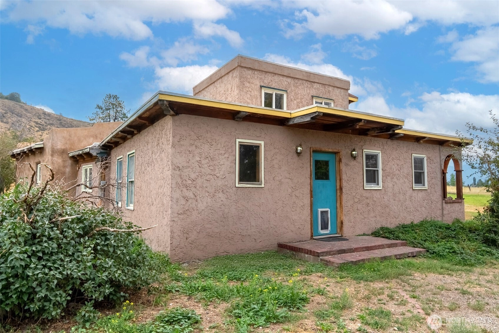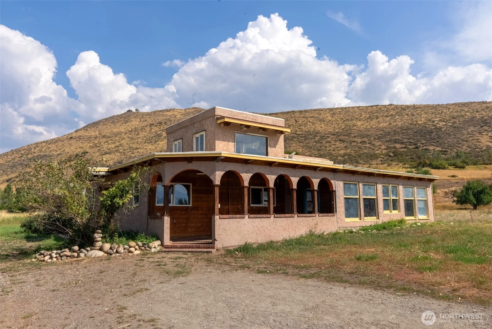 Bring your vision and build equity! This distinctive 1989 Winthrop home, crafted by local builder Doug Potter, showcases lasting quality with open beam ceilings, thick stucco walls, and artistic stacked log accents. Offering 3 bedrooms, 2 baths, a spacious laundry room, partial basement, and a light-filled second-floor study overlooking pastoral views, the home provides ample space for full-time living. This 3.7-acre flat parcel, irrigated by the Chewuch Canal, has the potential to become entirely green and could easily support a hobby farm or garden. A 875 sq ft outbuilding with power is ready to transform into an office, studio, or gym. Thoughtful improvements here will reward you well in this beloved corner of the Methow Valley.