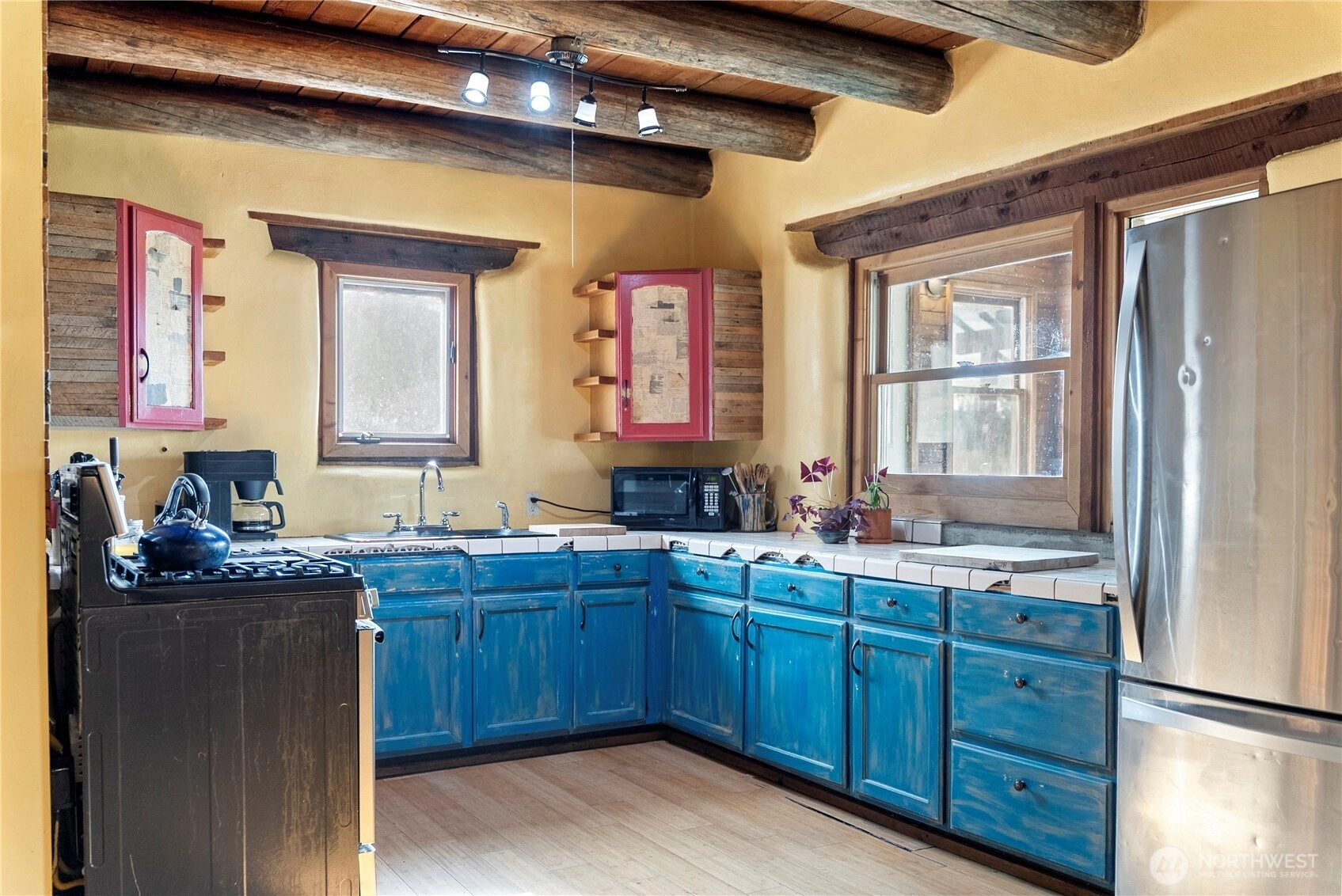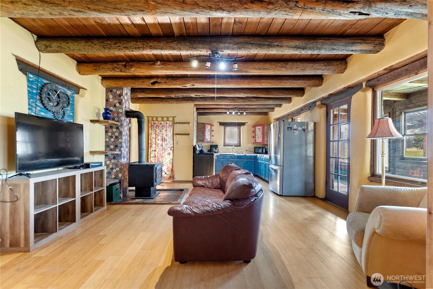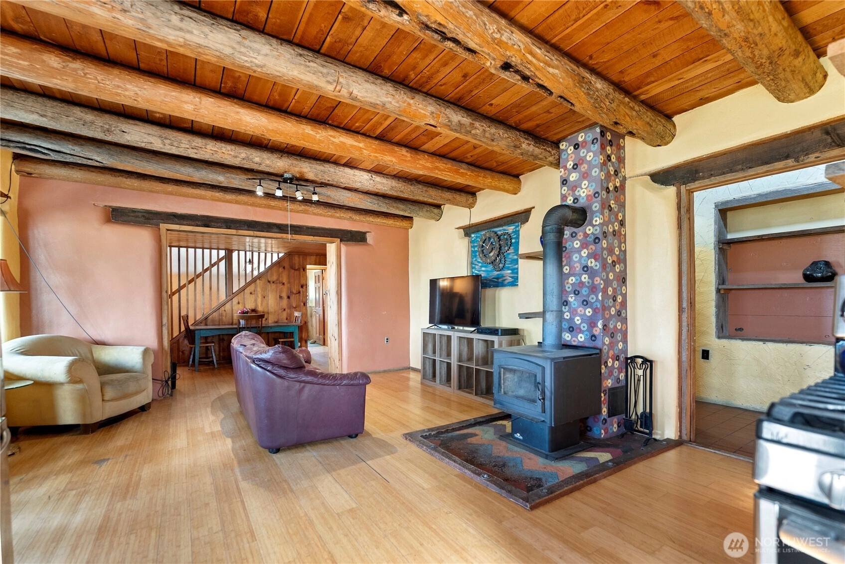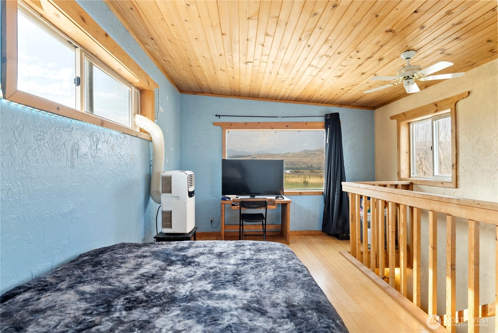 Bring your vision and build equity! This distinctive 1989 Winthrop home, crafted by local builder Doug Potter, showcases lasting quality with open beam ceilings, thick stucco walls, and artistic stacked log accents. Offering 3 bedrooms, 2 baths, a spacious laundry room, partial basement, and a light-filled second-floor study overlooking pastoral views, the home provides ample space for full-time living. This 3.7-acre flat parcel, irrigated by the Chewuch Canal, has the potential to become entirely green and could easily support a hobby farm or garden. A 875 sq ft outbuilding with power is ready to transform into an office, studio, or gym. Thoughtful improvements here will reward you well in this beloved corner of the Methow Valley.