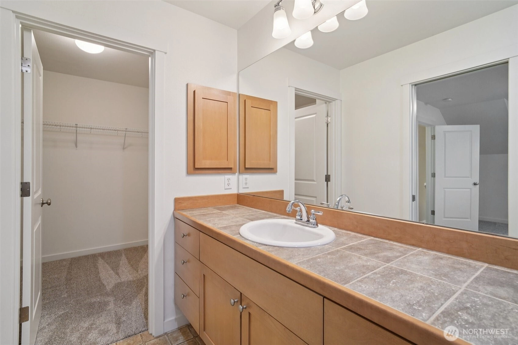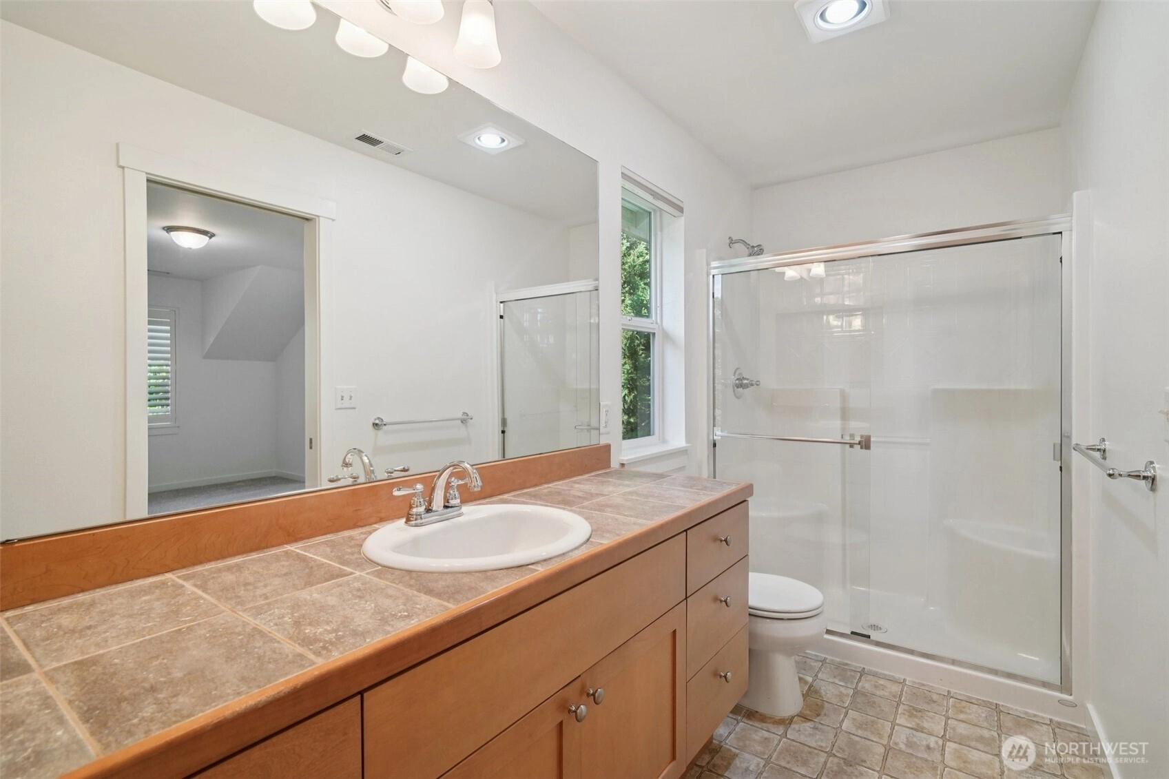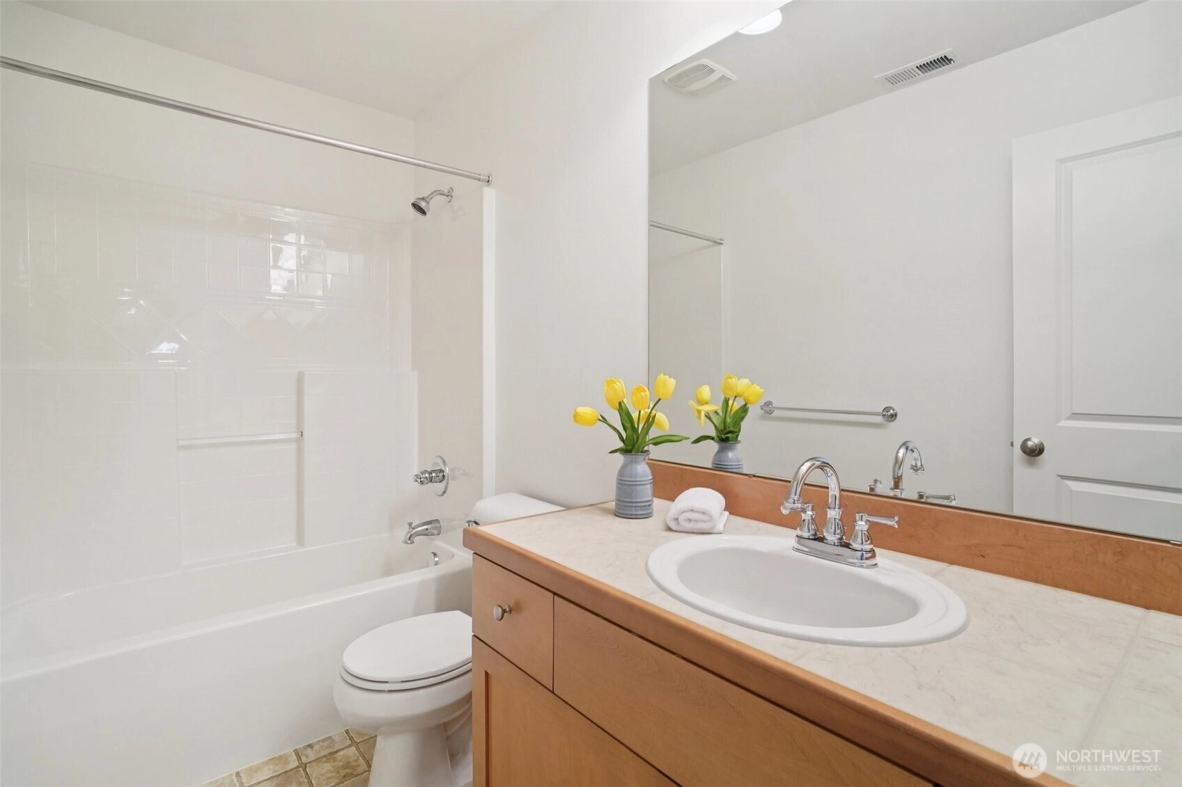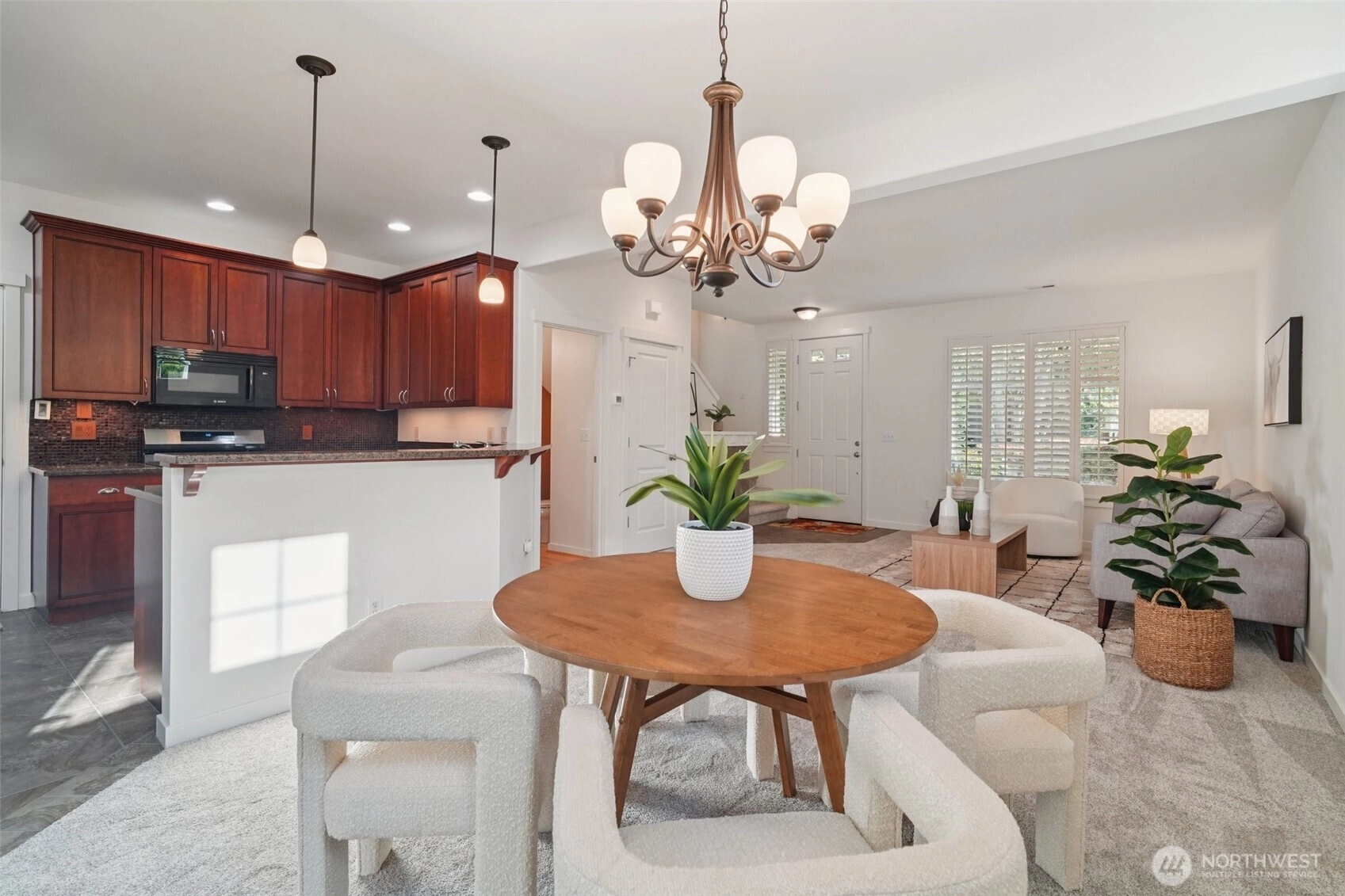 Mill Creek living, only steps away from Town Center with all the amenities. Large corner lot with fenced backyard for all your outdoor entertaining. Great floor plan with 2 Bedrooms, 2.5 Baths, and oversized loft for Den/Hobbies, etc. On main level, custom upgraded kitchen with granite slab counters, heated tile floors and under cabinet lighting. Community features include parks and playground plus across the street, access to walking trails. Fresh interior painting and new flooring thru out.