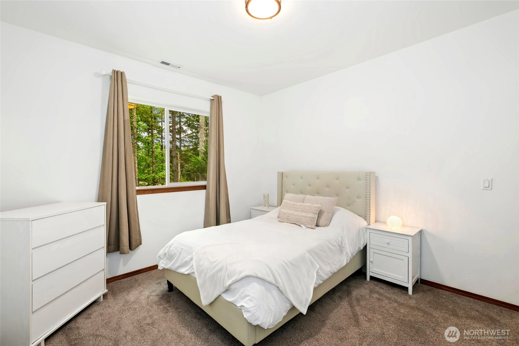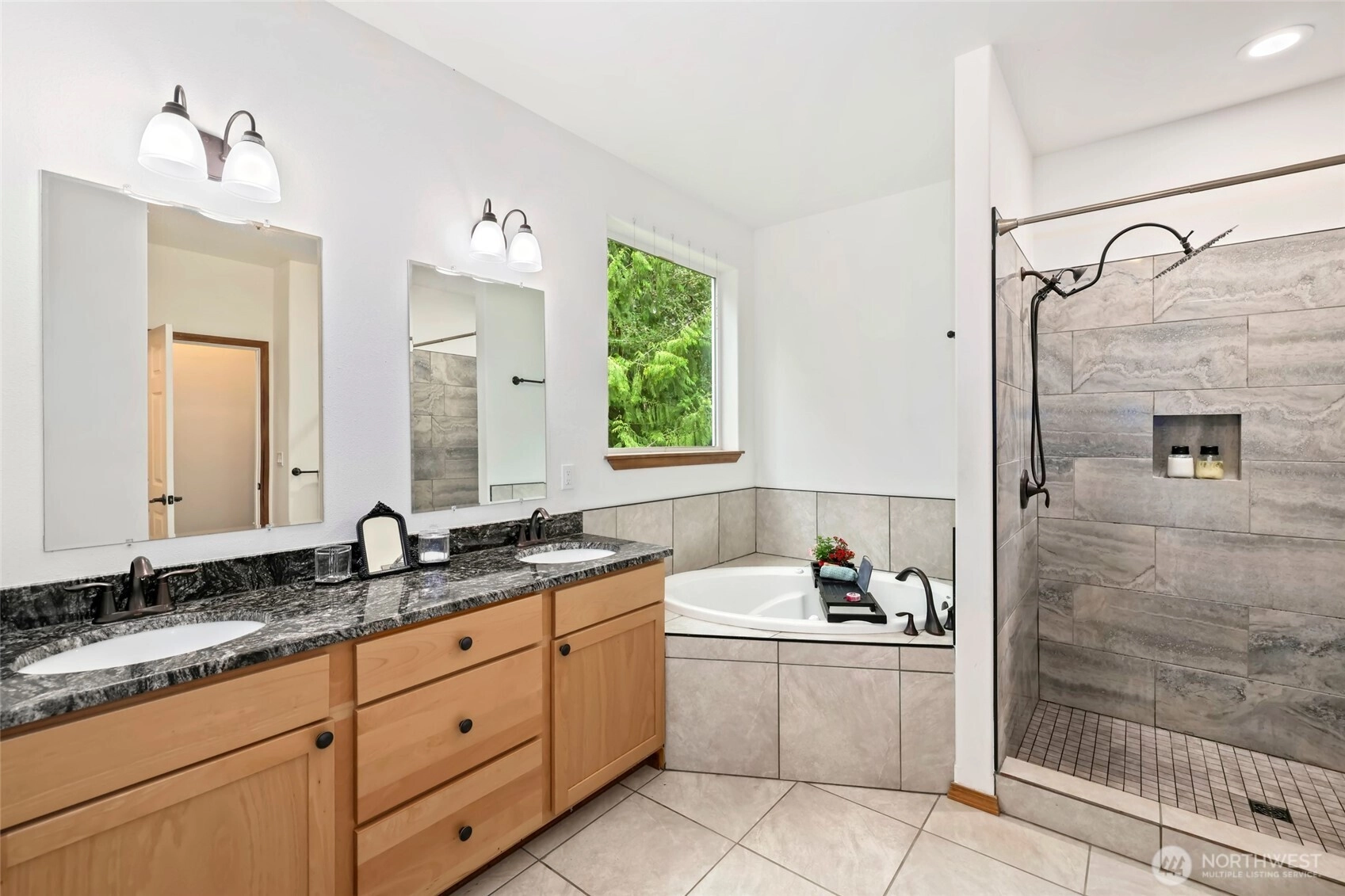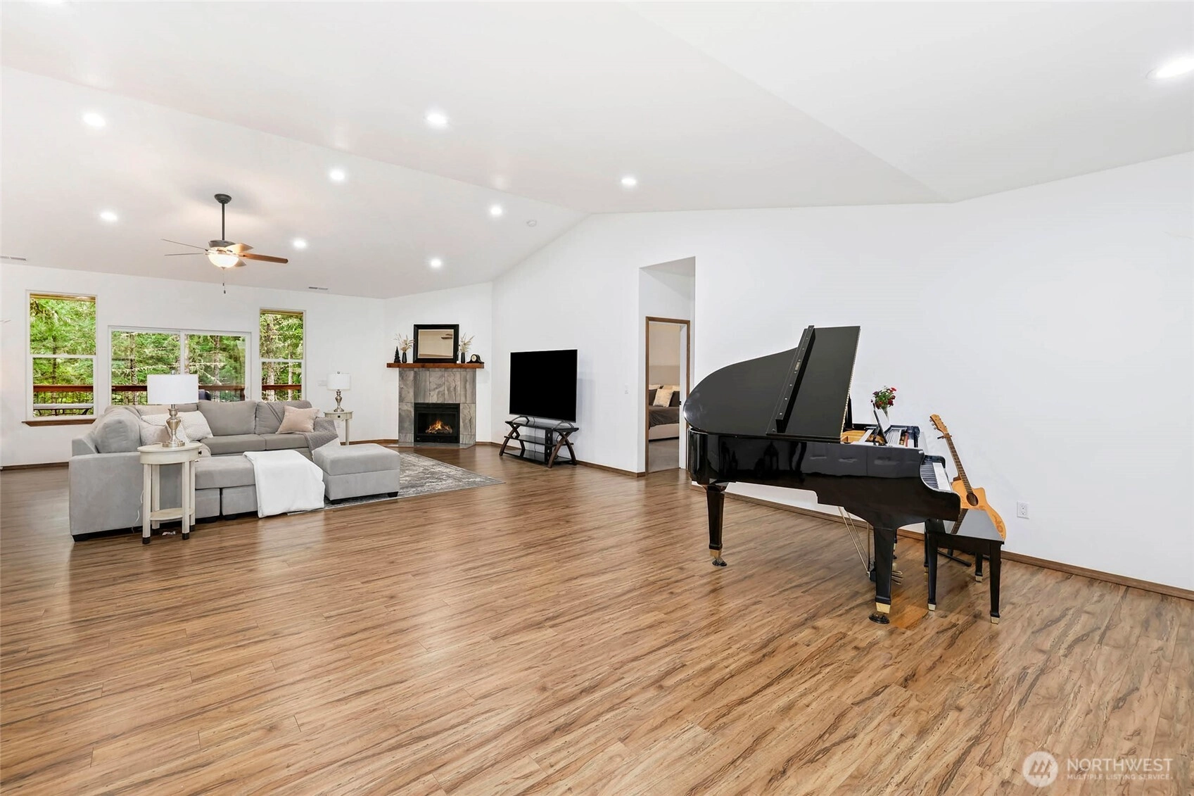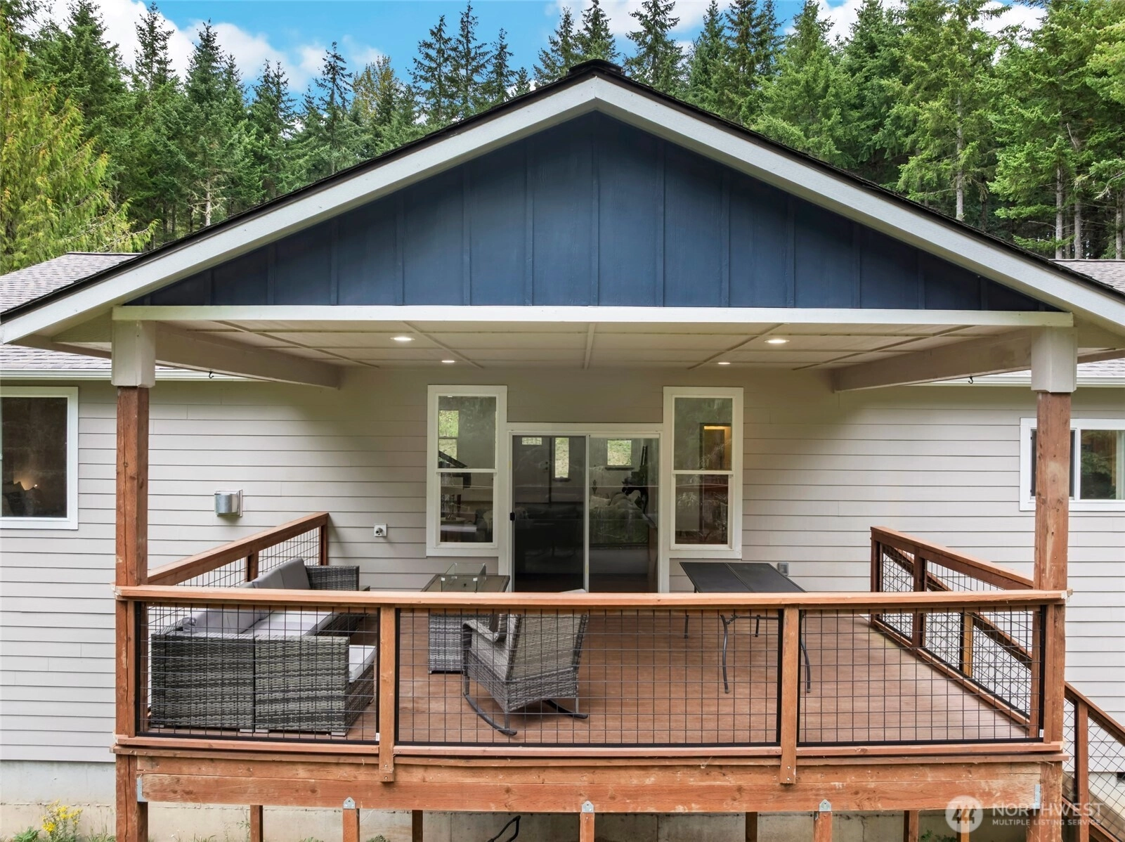 Welcome to your ultimate forest sanctuary on 6.7 acres of PNW splendor, surrounded by towering trees in a gated community with privacy, security, and scenic walking trails. A covered porch opens to a grand entry with soaring ceilings & a wall of windows framing serene forest views. The open-concept living room, dining area, & chef’s kitchen are ideal for entertaining, while a fireplace and covered deck extend living year-round. The private primary suite offers a soaking tub, luxe shower, dual vanities, & walk-in closet. A light-filled office with forest views, plus two guest suites on the opposite side of the house, each with their own bath, provide perfect multi-generational living. A spacious laundry & half bath complete this refined plan