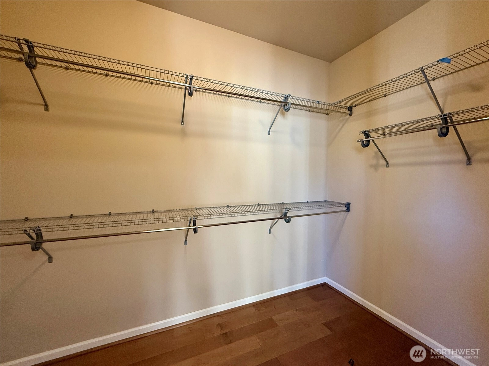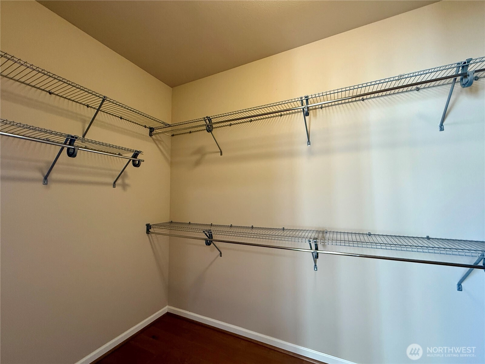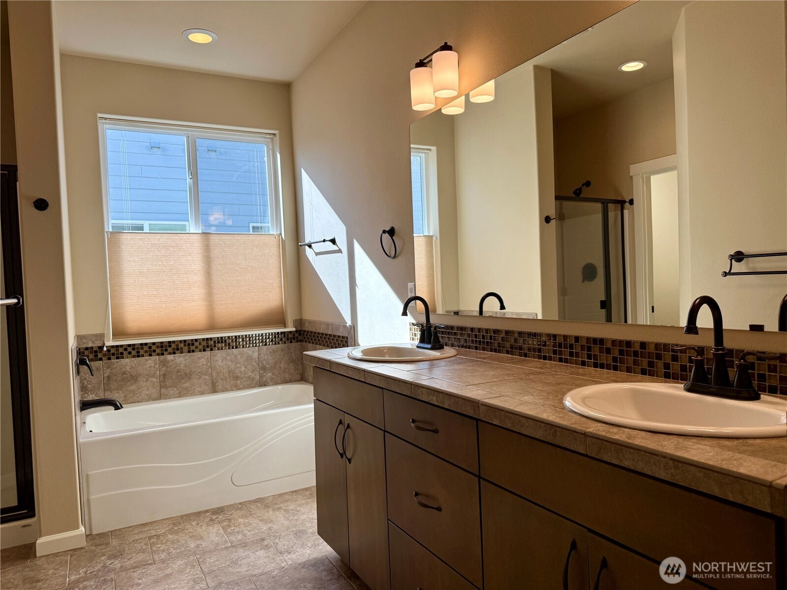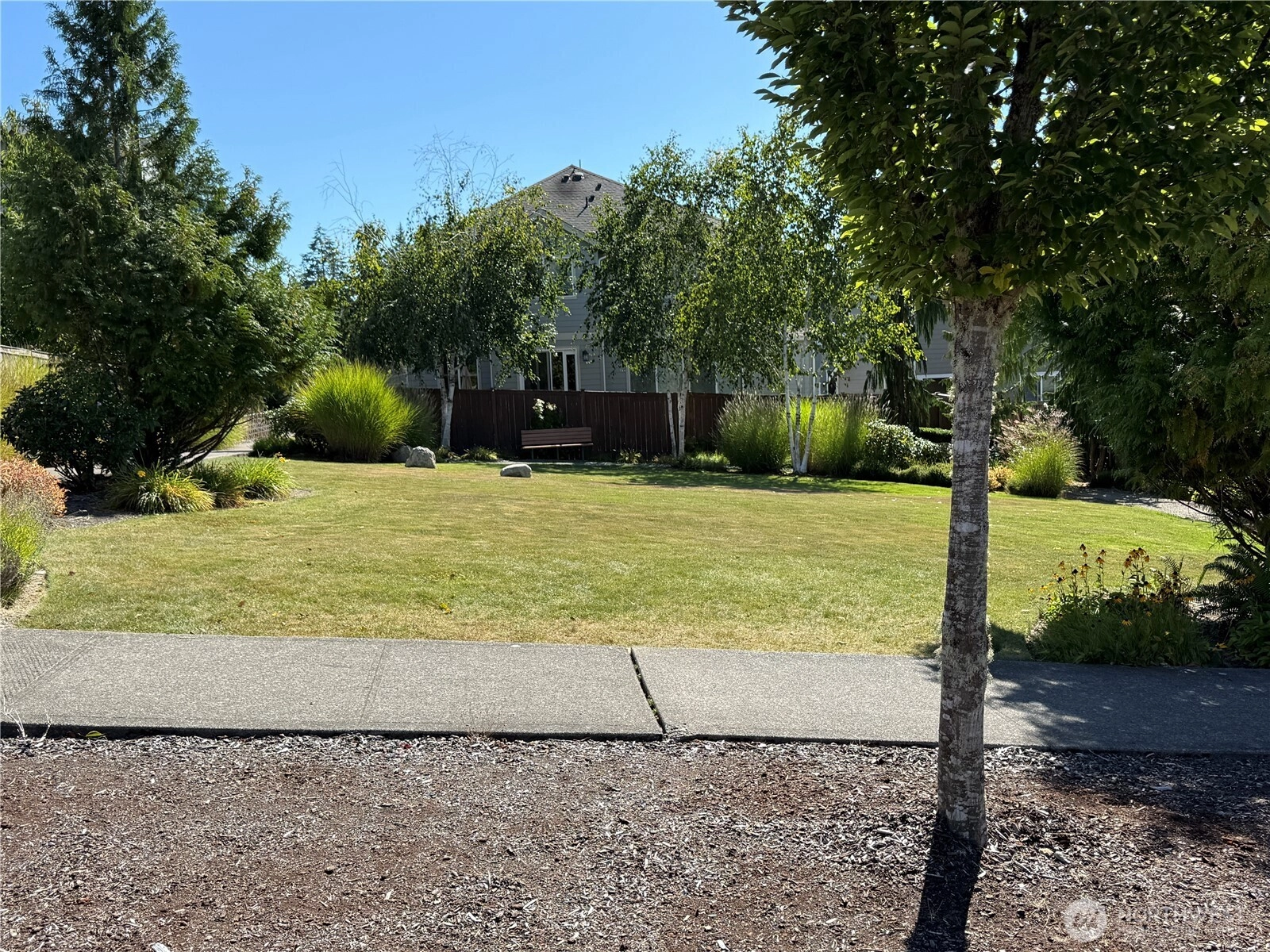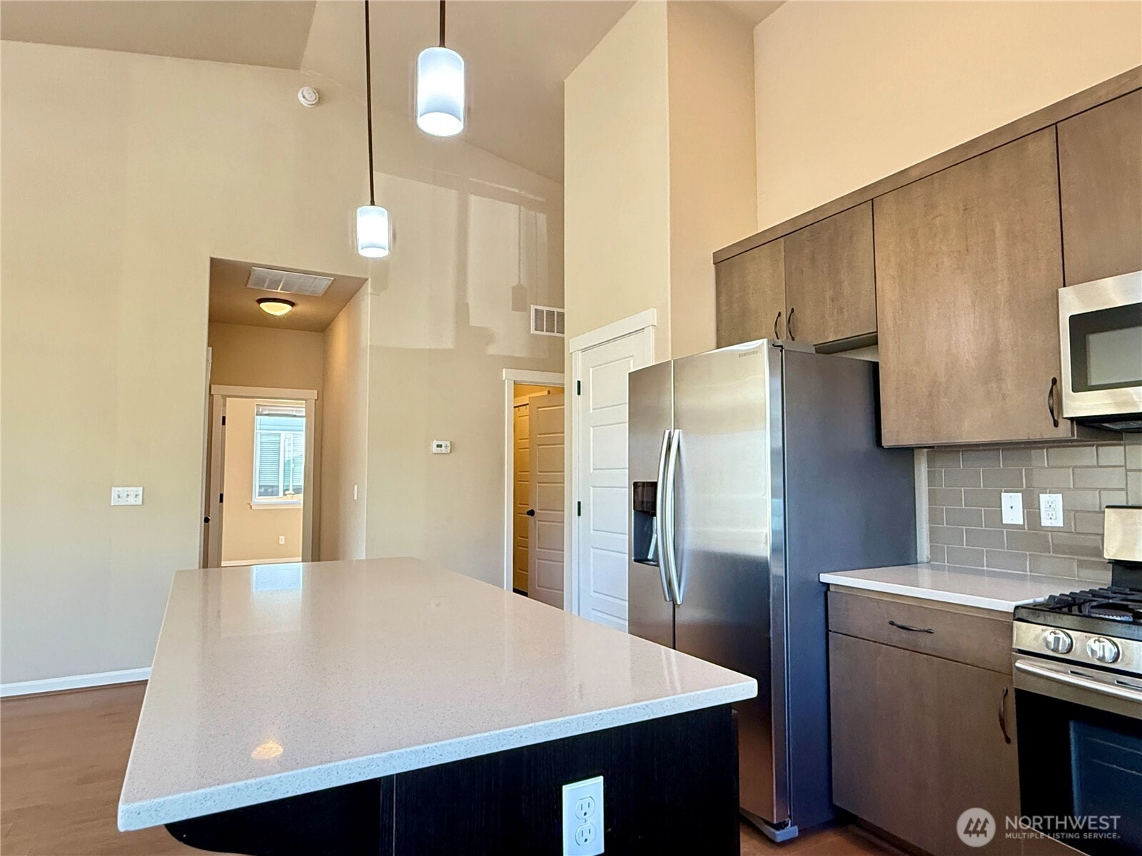 Extremely well maintained home in Evergreen Pointe with hardwood floors, quartz counters & stainless appliances. Sunny windows all around & natural gas fireplace in this energy efficient home. Cabinets with soft close doors & drawers. Gorgeous paver driveway leading to top of the line matching translucent garage and front doors. Enter through the glass/screen security door & take in the soaring ceilings throughout. Warm and inviting floors and cabinets with coordinating quartz counters. Primary bedroom has a large walk-in closet and 5 piece bathroom suite with extra deep soaking tub, shower & separate water closet. 6 ft cedar fence with gates, storage shed, aggregate patio & raised beds. Quaint community park and Hansen elementary nearby.