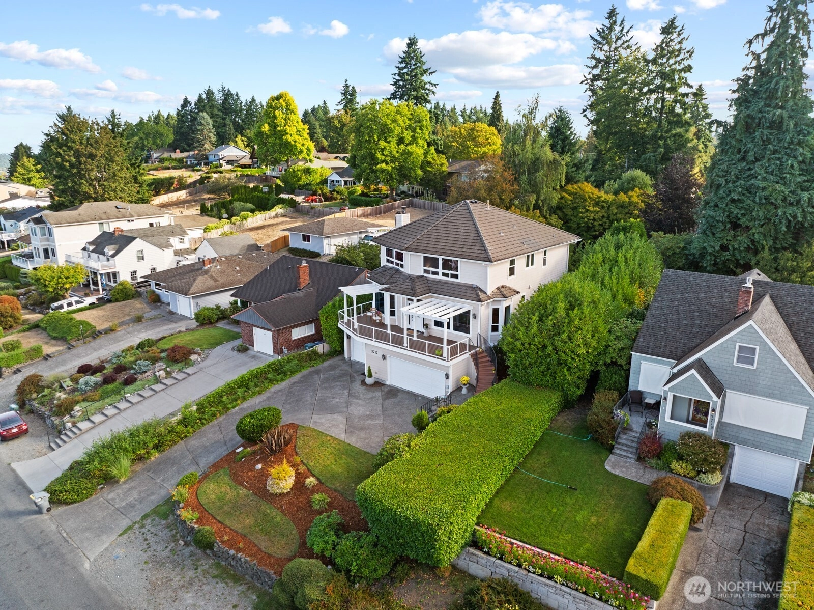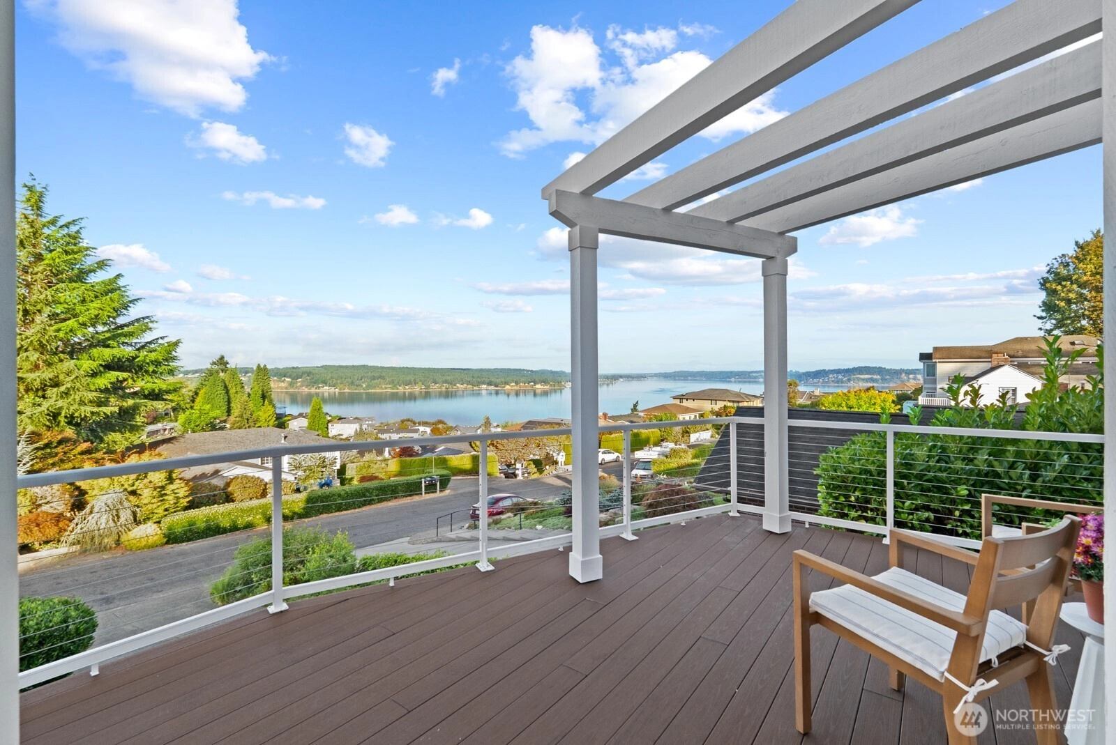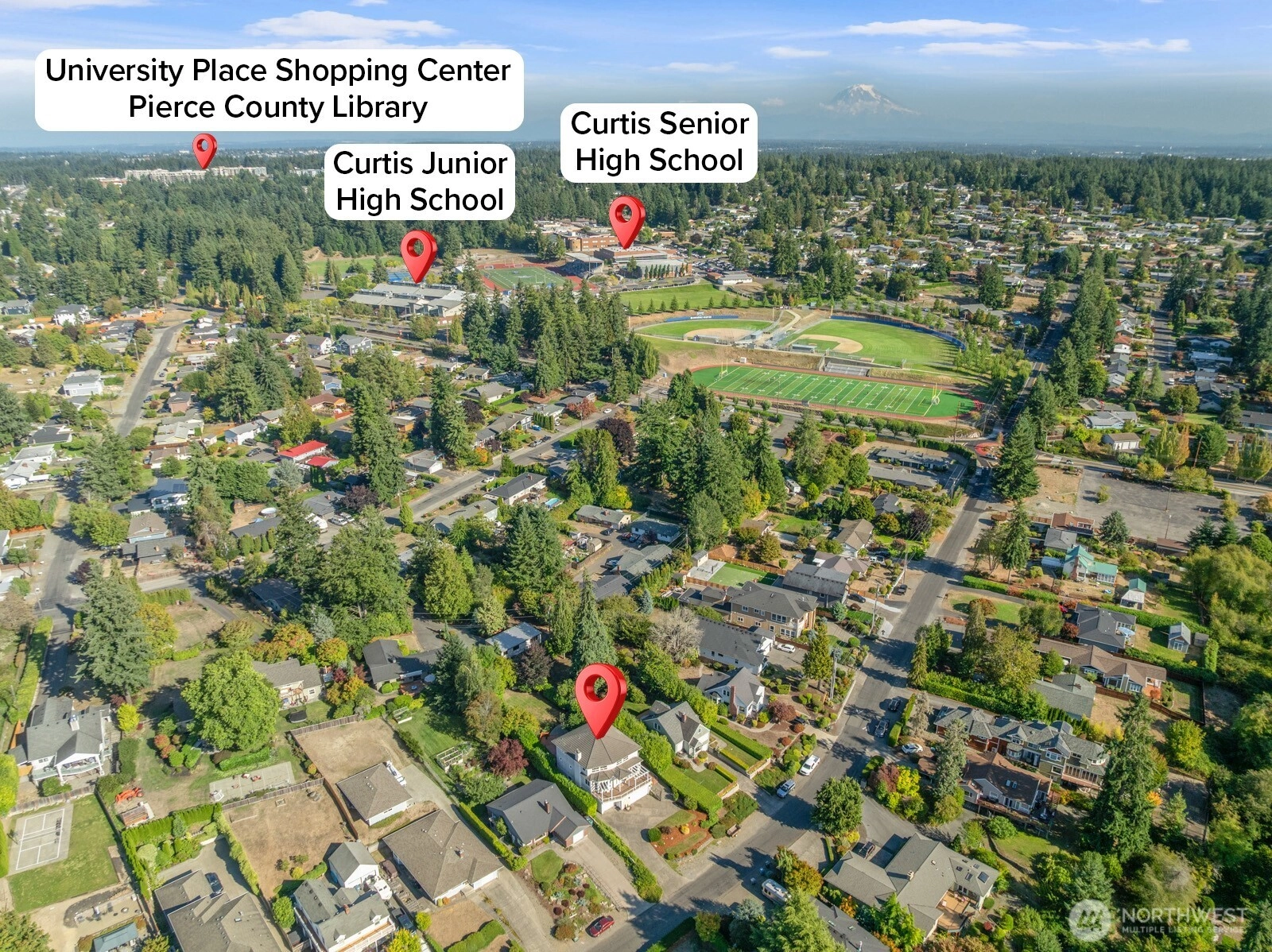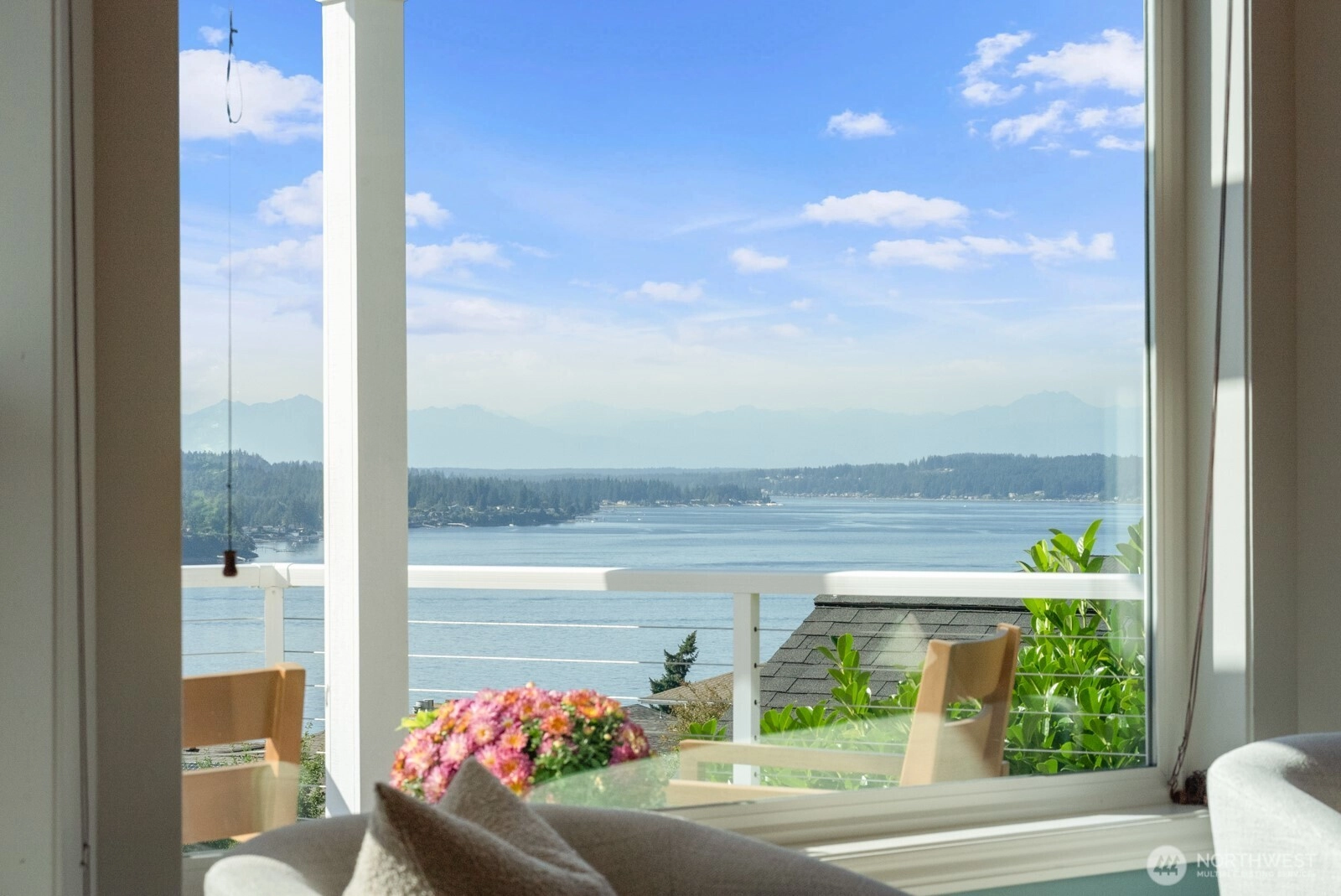 Unobstructed, sweeping views of the Olympic Mountains & Puget Sound—stretching from Fox Island, Hale Passage & Pt. Fosdick, down to the Narrows—right from your living room. Residence sits on a large 11,000 sf lot offering both privacy & space to enjoy the outdoors. Fully fenced yard with generous deck & fruit trees. Enormous kitchen, big windows, perfect for entertaining. Wide-open floor plan with tall ceilings & big windows, enhanced by hardwood floors, hand-carved archway & cozy gas fireplaces. Features a lower level bonus room with additional dwelling potential or studio. A/C & elegant updates throughout. Located in UP School district. Just a short jaunt to Chambers Bay Golf Course, along with great coffee shops, grocery & dining.