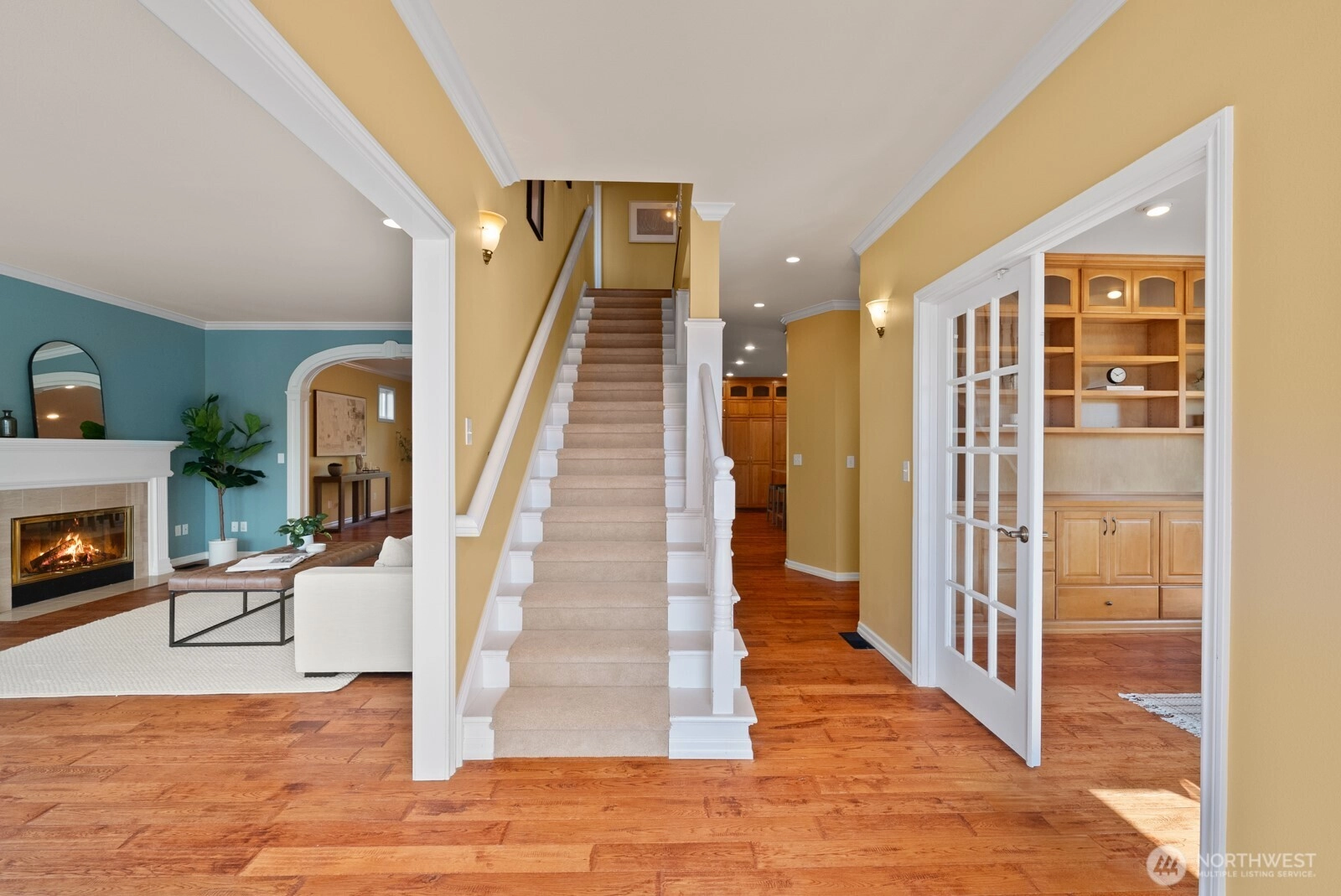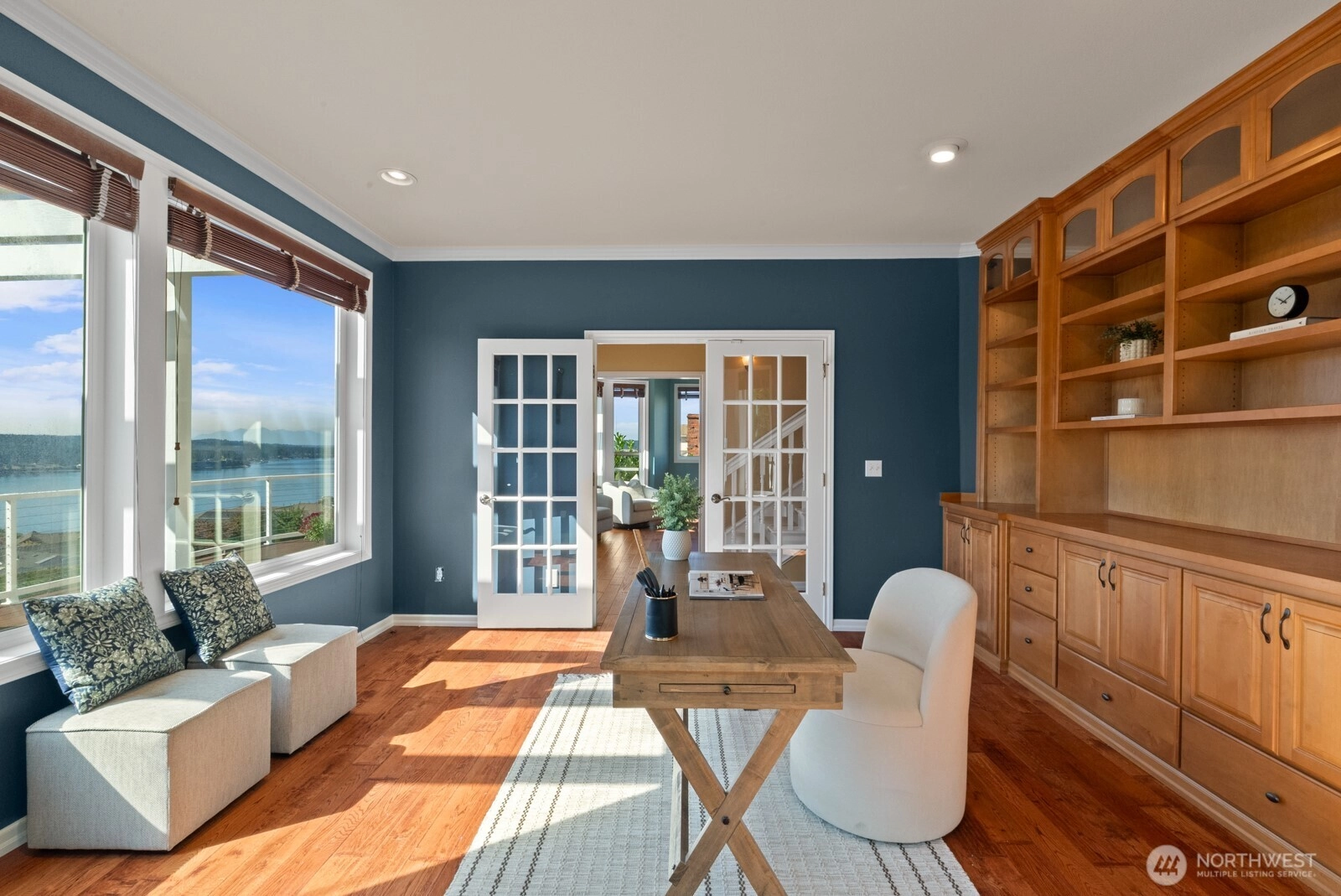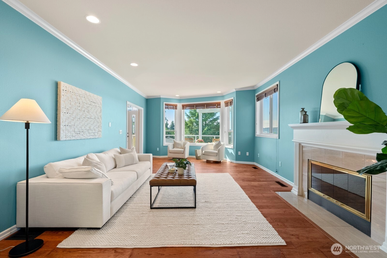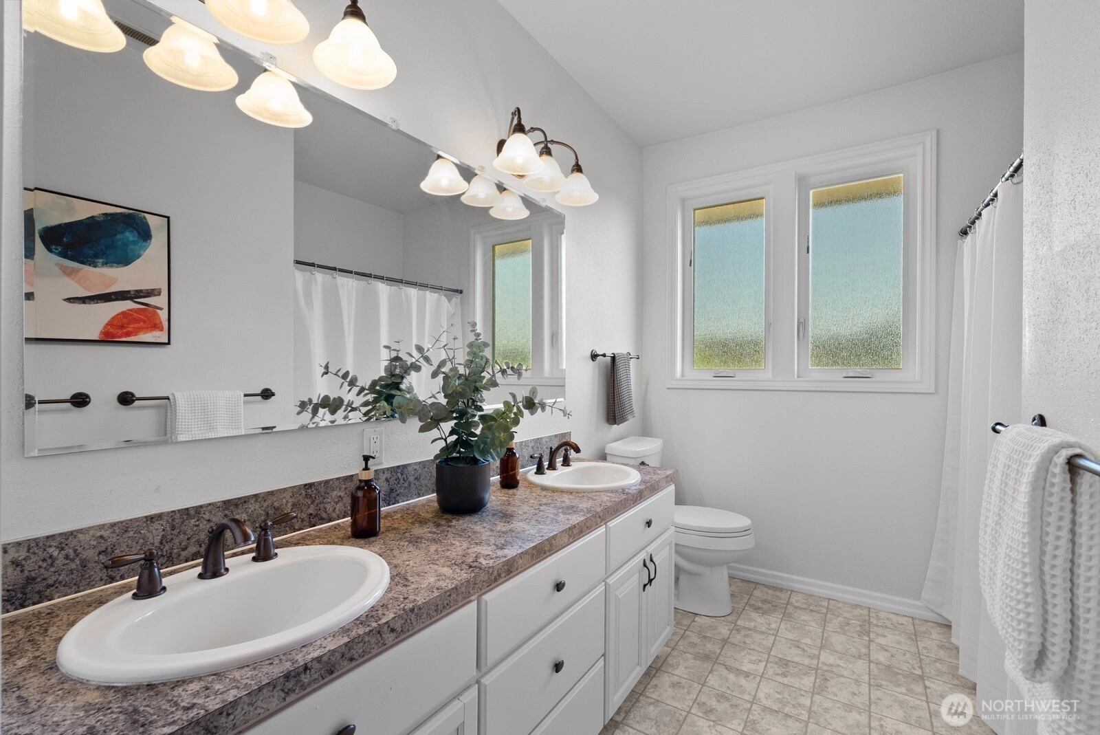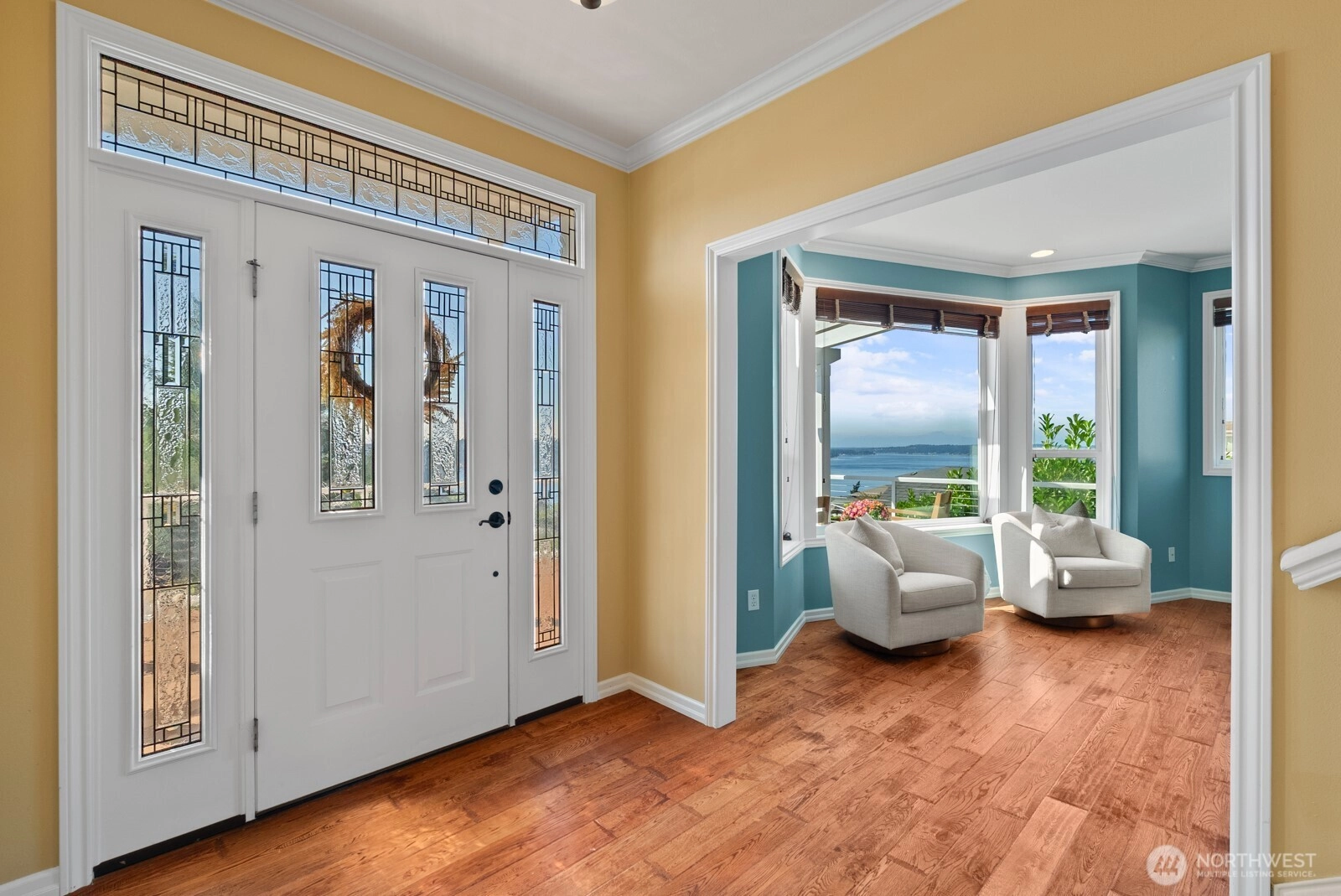 Unobstructed, sweeping views of the Olympic Mountains & Puget Sound—stretching from Fox Island, Hale Passage & Pt. Fosdick, down to the Narrows—right from your living room. Residence sits on a large 11,000 sf lot offering both privacy & space to enjoy the outdoors. Fully fenced yard with generous deck & fruit trees. Enormous kitchen, big windows, perfect for entertaining. Wide-open floor plan with tall ceilings & big windows, enhanced by hardwood floors, hand-carved archway & cozy gas fireplaces. Features a lower level bonus room with additional dwelling potential or studio. A/C & elegant updates throughout. Located in UP School district. Just a short jaunt to Chambers Bay Golf Course, along with great coffee shops, grocery & dining.