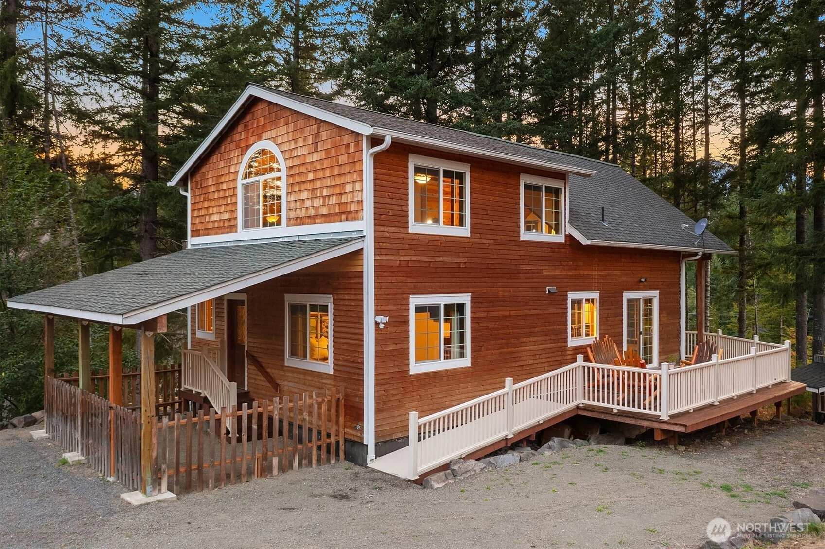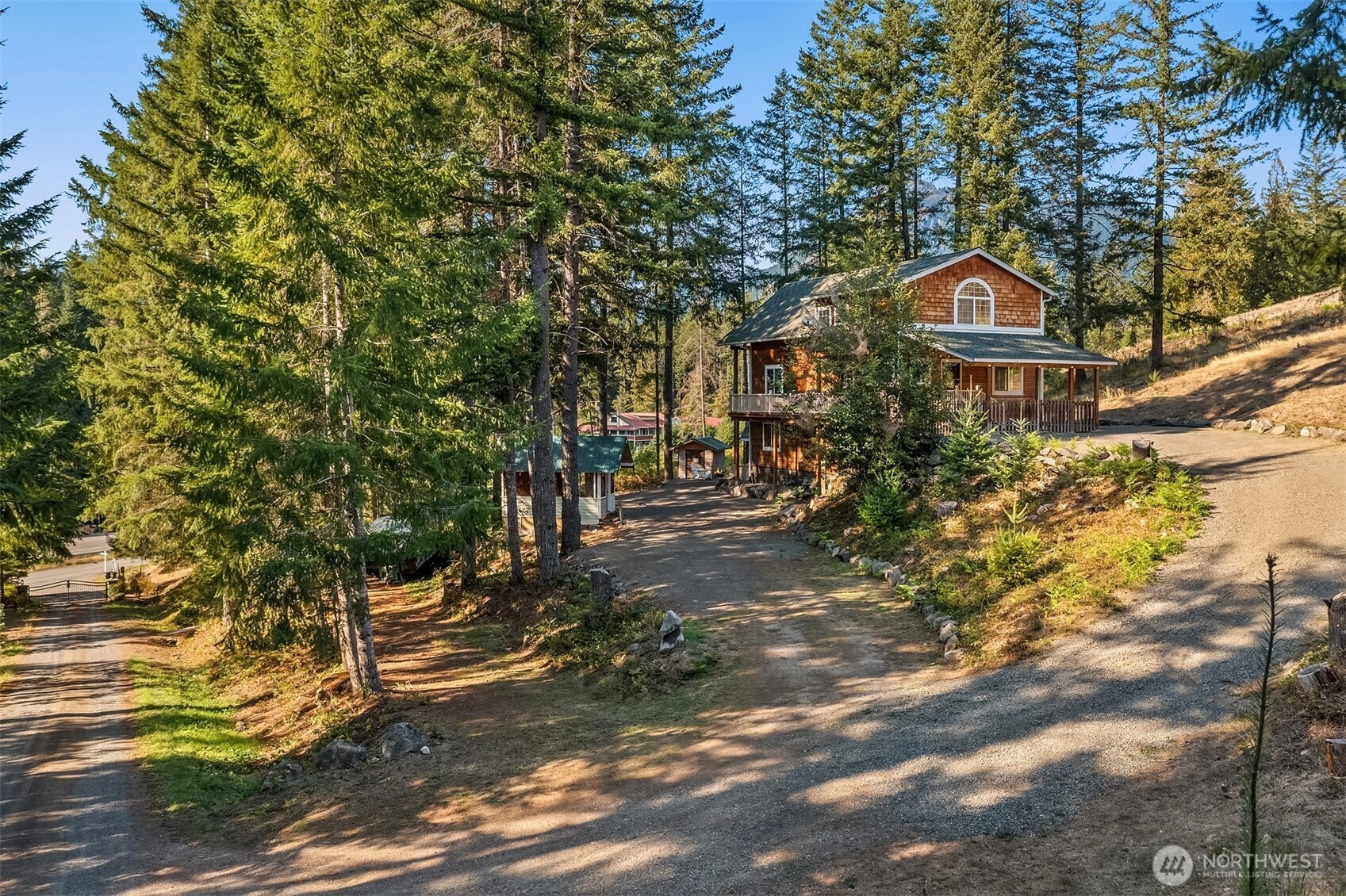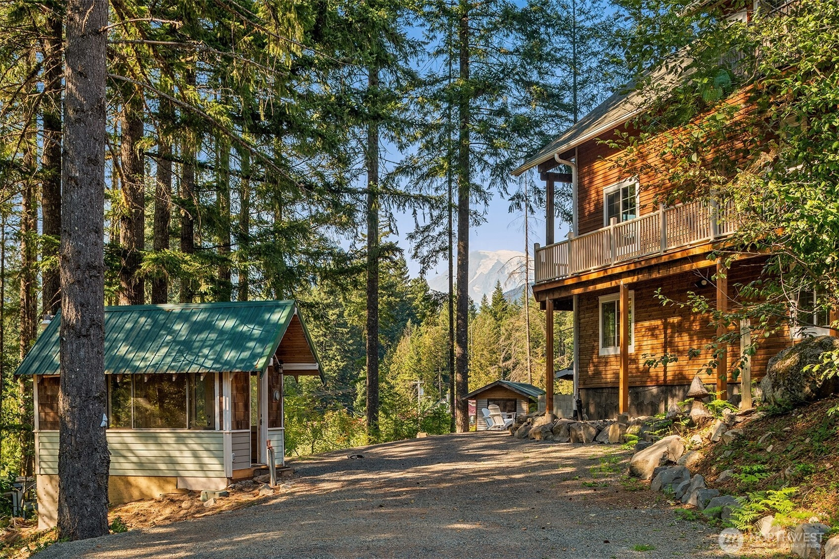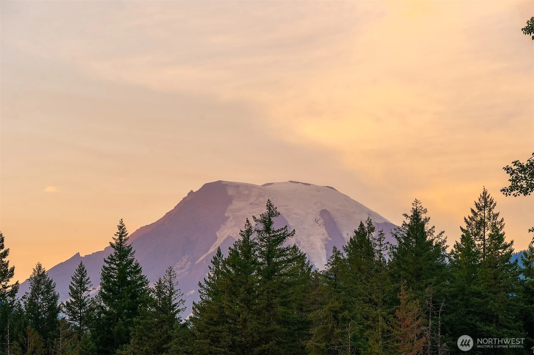 This spacious Packwood retreat has it all – including a massive Mt. Rainier view! Sited on an acre within the gated Hellem Dr, this 3-bed, 3-bath home is conveniently located under a mile from Packwood town center. You’ll love the home’s mountain vibe with abundant real wood throughout, durable LVP flooring, updated kitchen, updated baths – one on each floor – and the towering, vaulted chalet windows in the main living room. The lower level is the perfect flex space for a game room and ski tuning shop. The acre features 2 RV power hookups plus 1 full RV hookup, a detached bunk room, storage shed, and a detached bath house with extra laundry hookups. Don’t miss the opportunity to own one of Packwood’s coolest and most well-appointed chalets!
