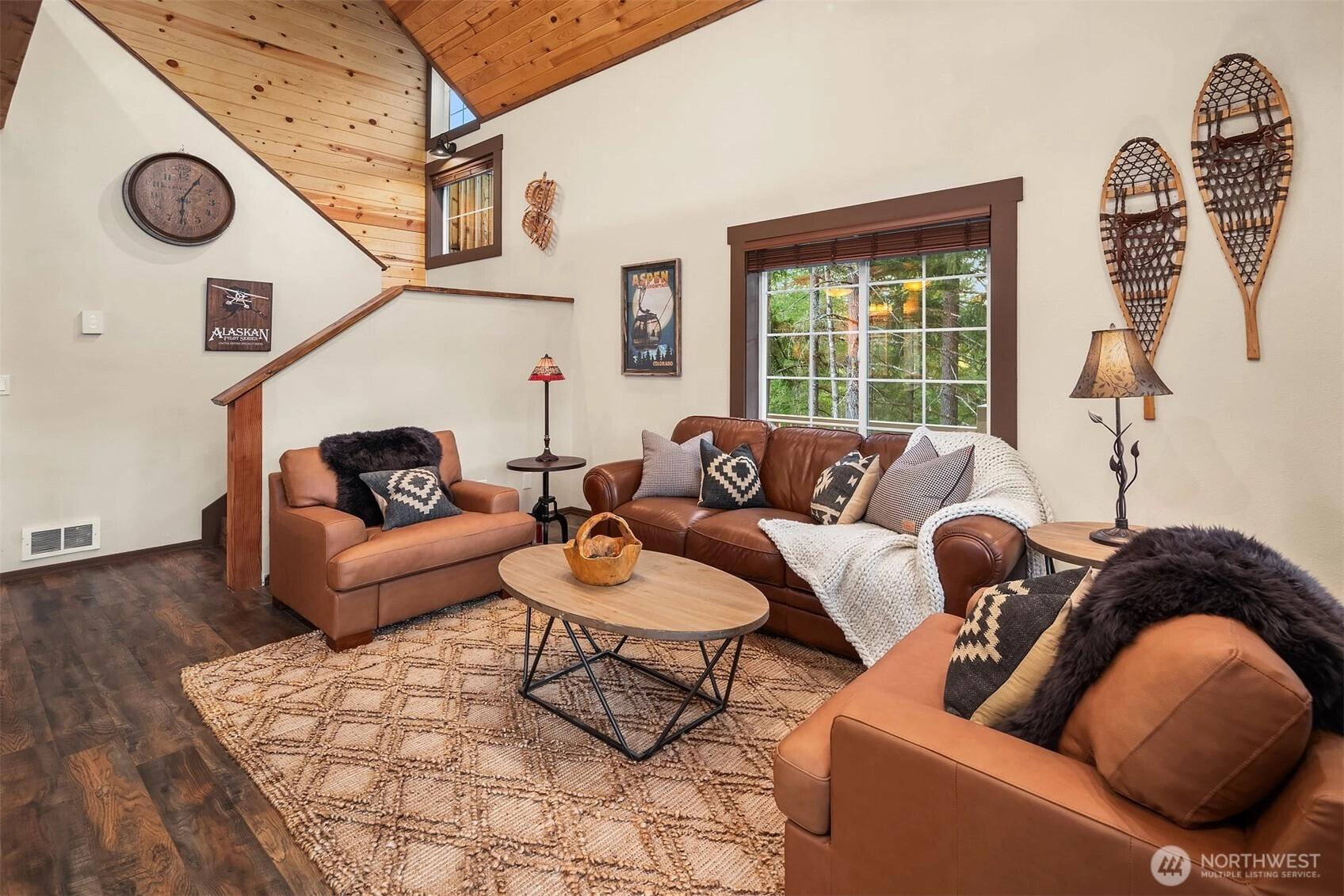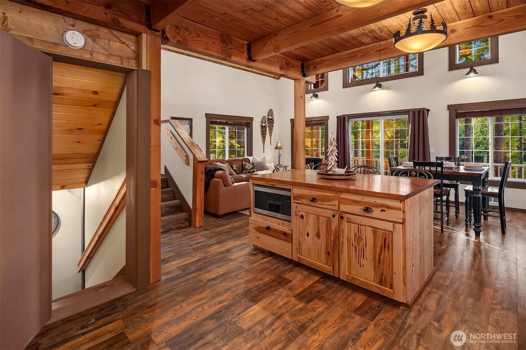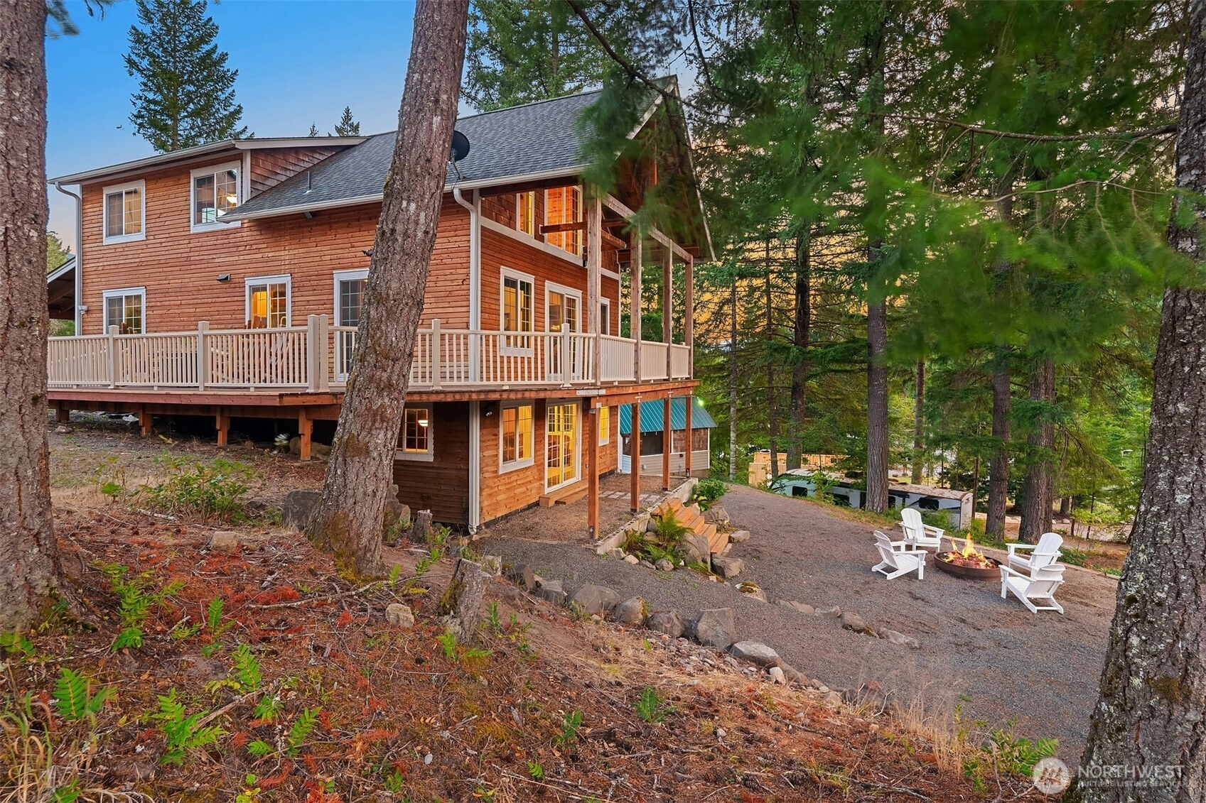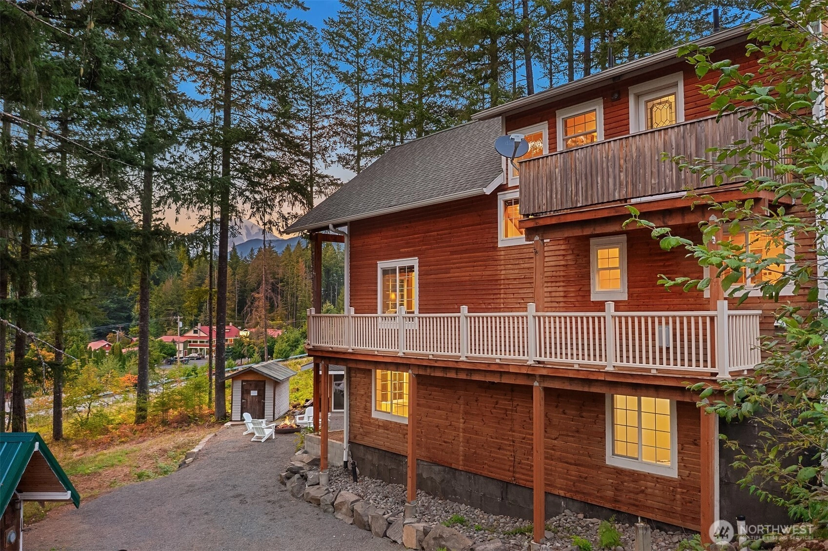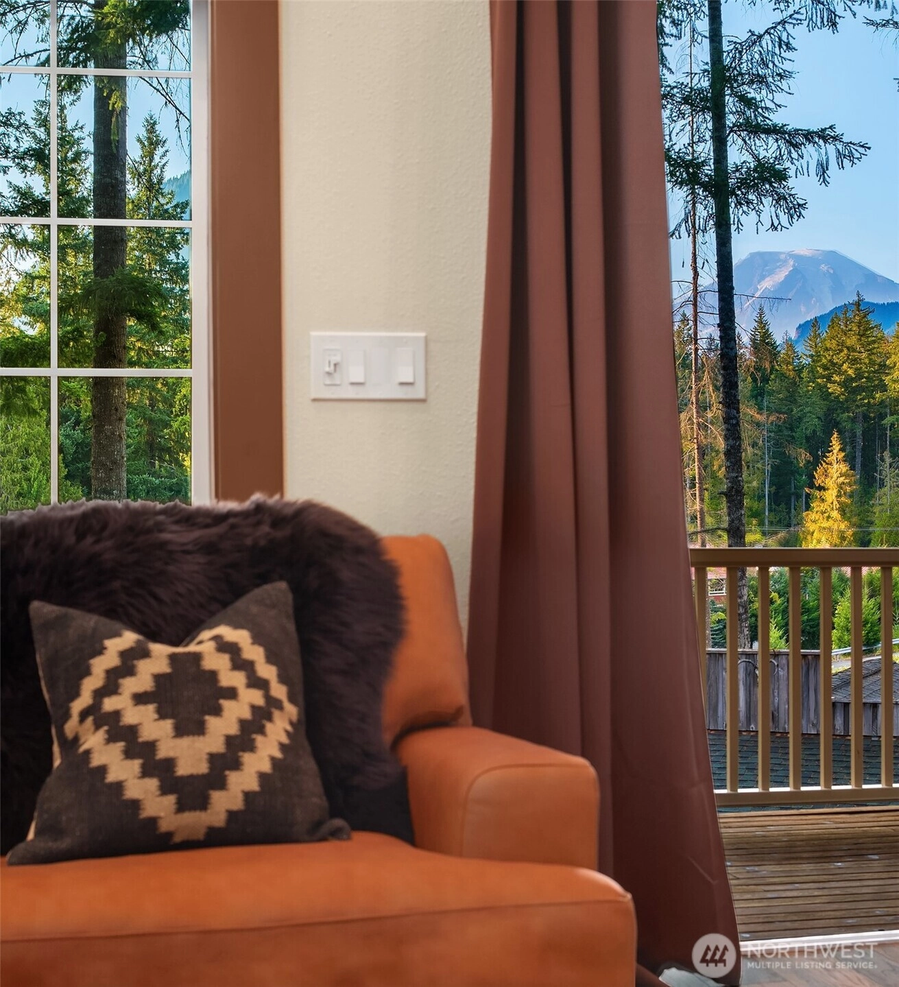 This spacious Packwood retreat has it all – including a massive Mt. Rainier view! Sited on an acre within the gated Hellem Dr, this 3-bed, 3-bath home is conveniently located under a mile from Packwood town center. You’ll love the home’s mountain vibe with abundant real wood throughout, durable LVP flooring, updated kitchen, updated baths – one on each floor – and the towering, vaulted chalet windows in the main living room. The lower level is the perfect flex space for a game room and ski tuning shop. The acre features 2 RV power hookups plus 1 full RV hookup, a detached bunk room, storage shed, and a detached bath house with extra laundry hookups. Don’t miss the opportunity to own one of Packwood’s coolest and most well-appointed chalets!