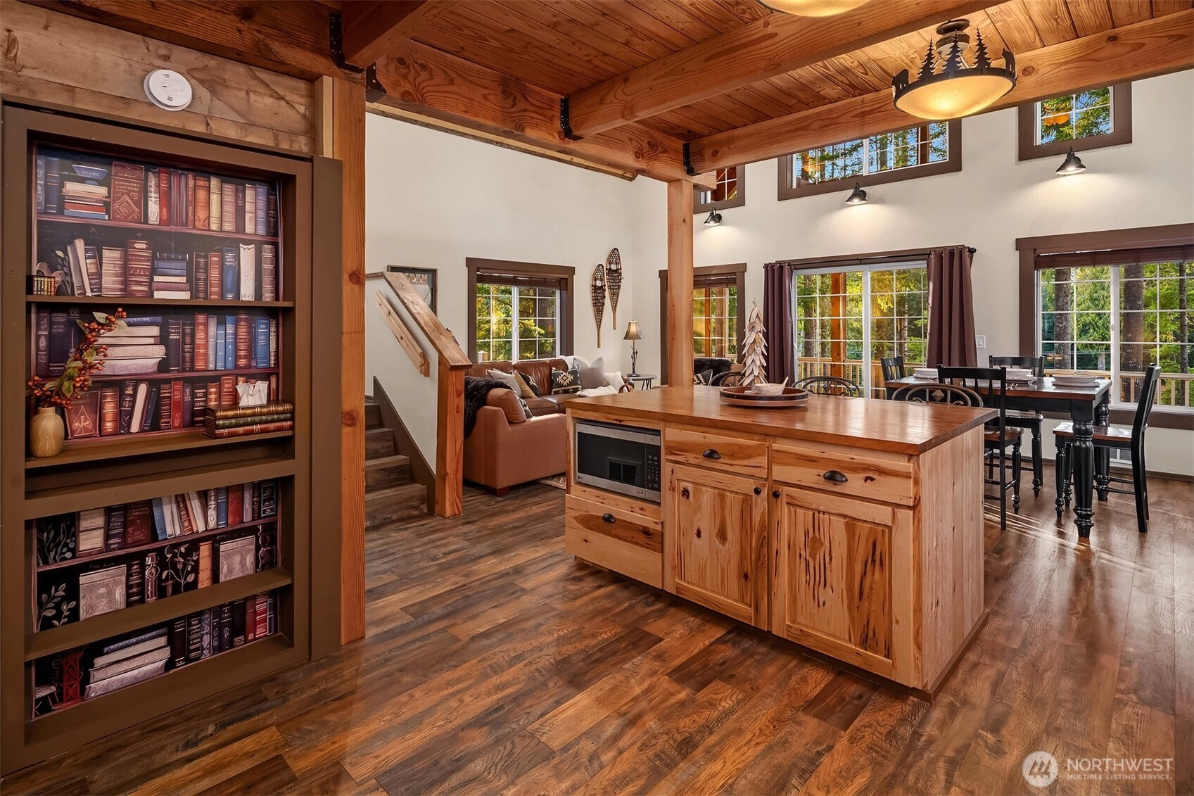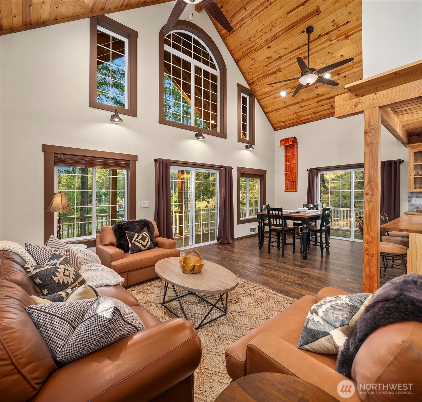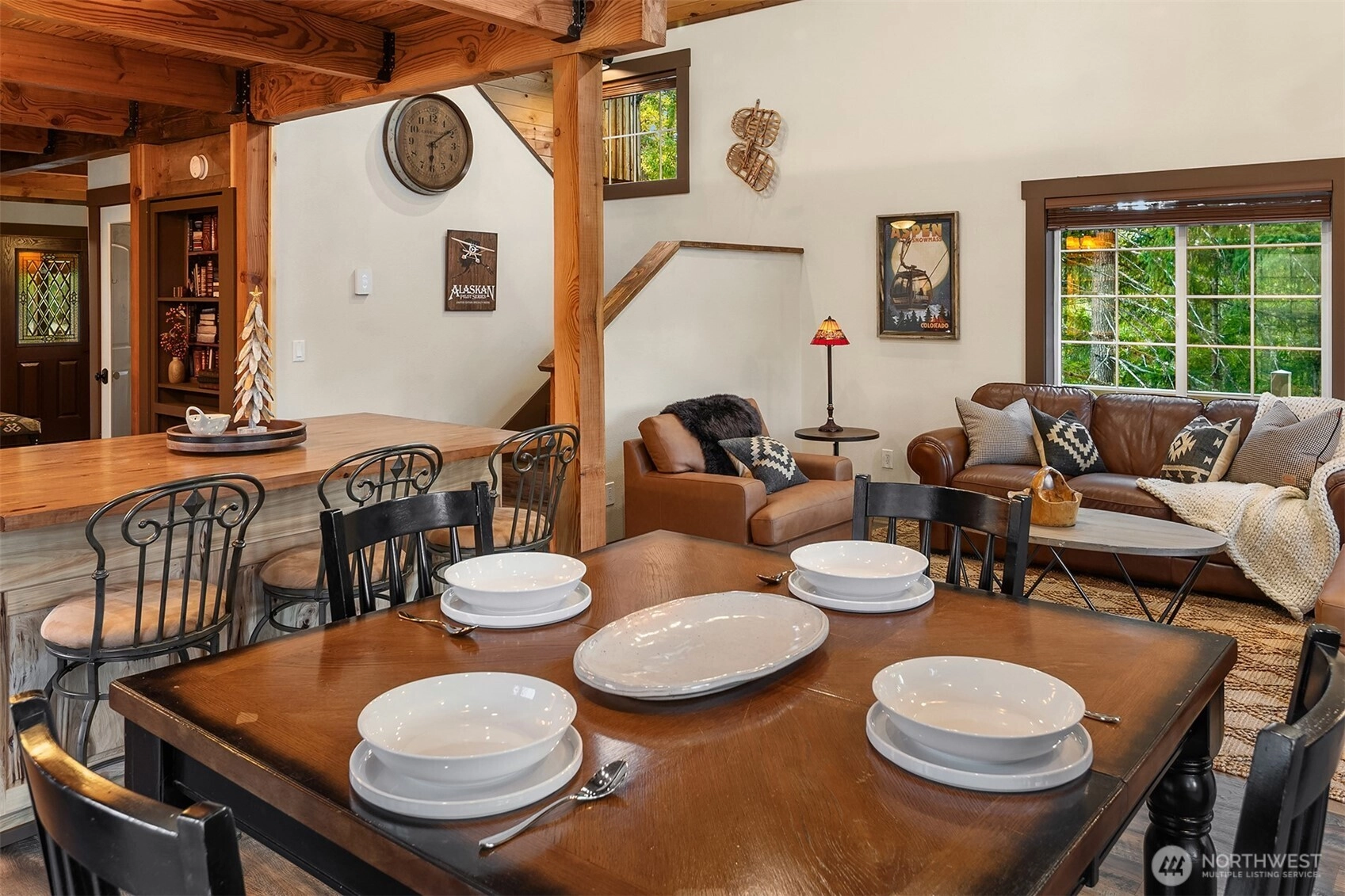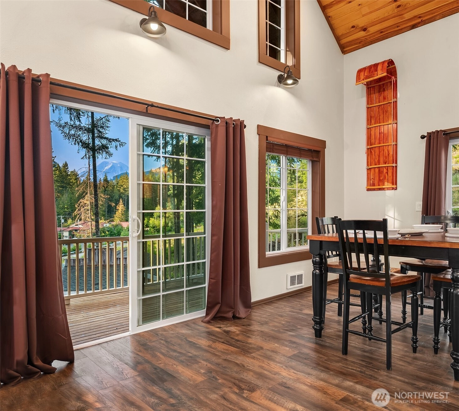 This spacious Packwood retreat has it all – including a massive Mt. Rainier view! Sited on an acre within the gated Hellem Dr, this 3-bed, 3-bath home is conveniently located under a mile from Packwood town center. You’ll love the home’s mountain vibe with abundant real wood throughout, durable LVP flooring, updated kitchen, updated baths – one on each floor – and the towering, vaulted chalet windows in the main living room. The lower level is the perfect flex space for a game room and ski tuning shop. The acre features 2 RV power hookups plus 1 full RV hookup, a detached bunk room, storage shed, and a detached bath house with extra laundry hookups. Don’t miss the opportunity to own one of Packwood’s coolest and most well-appointed chalets!