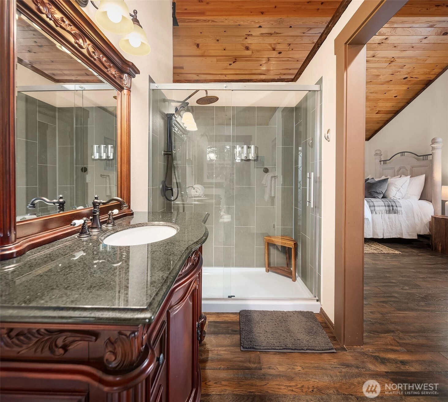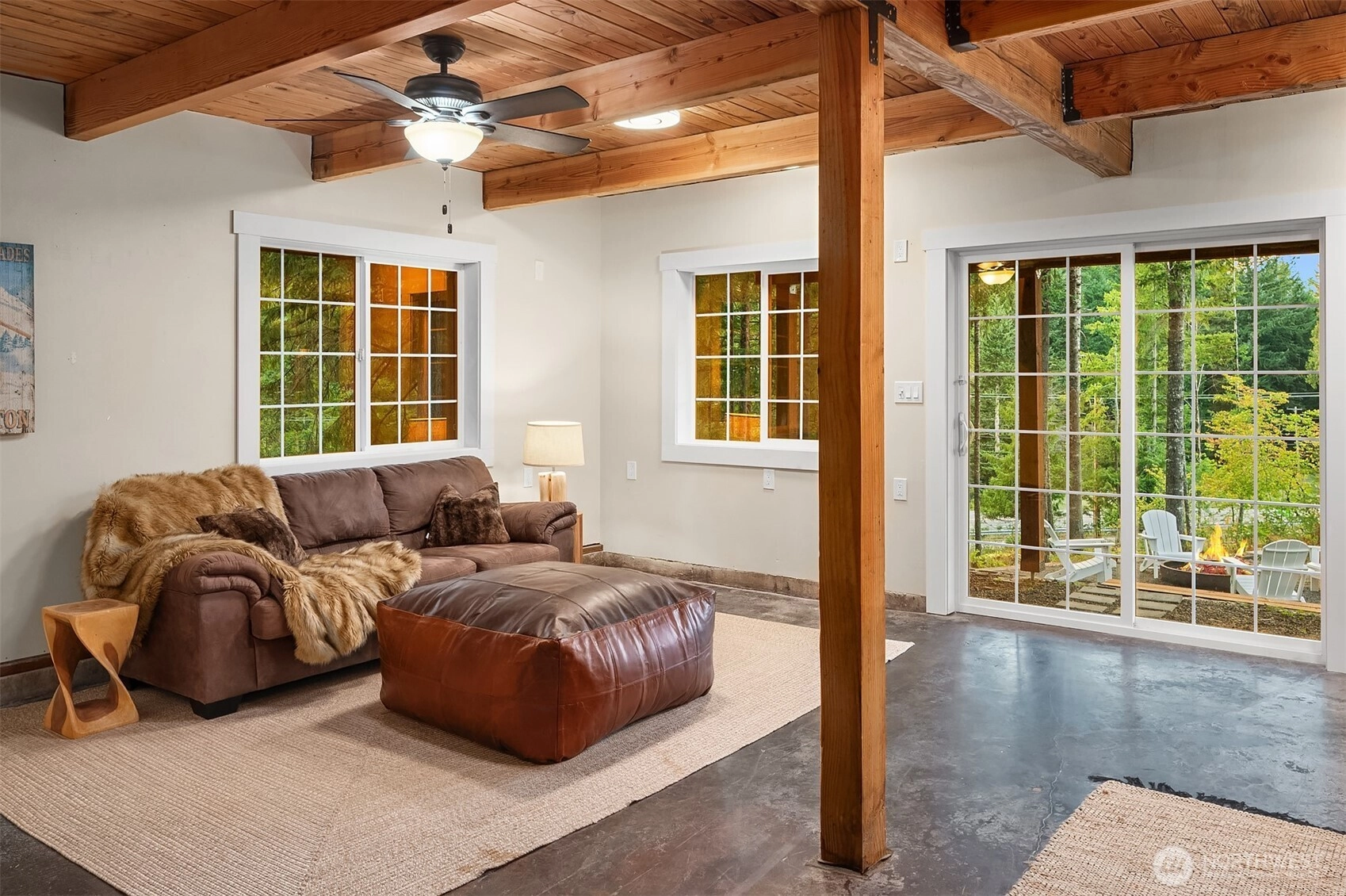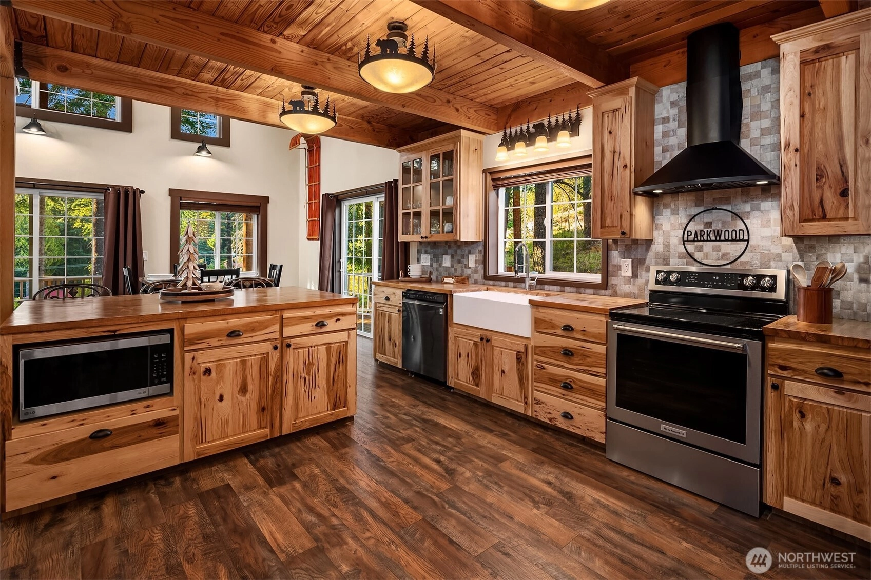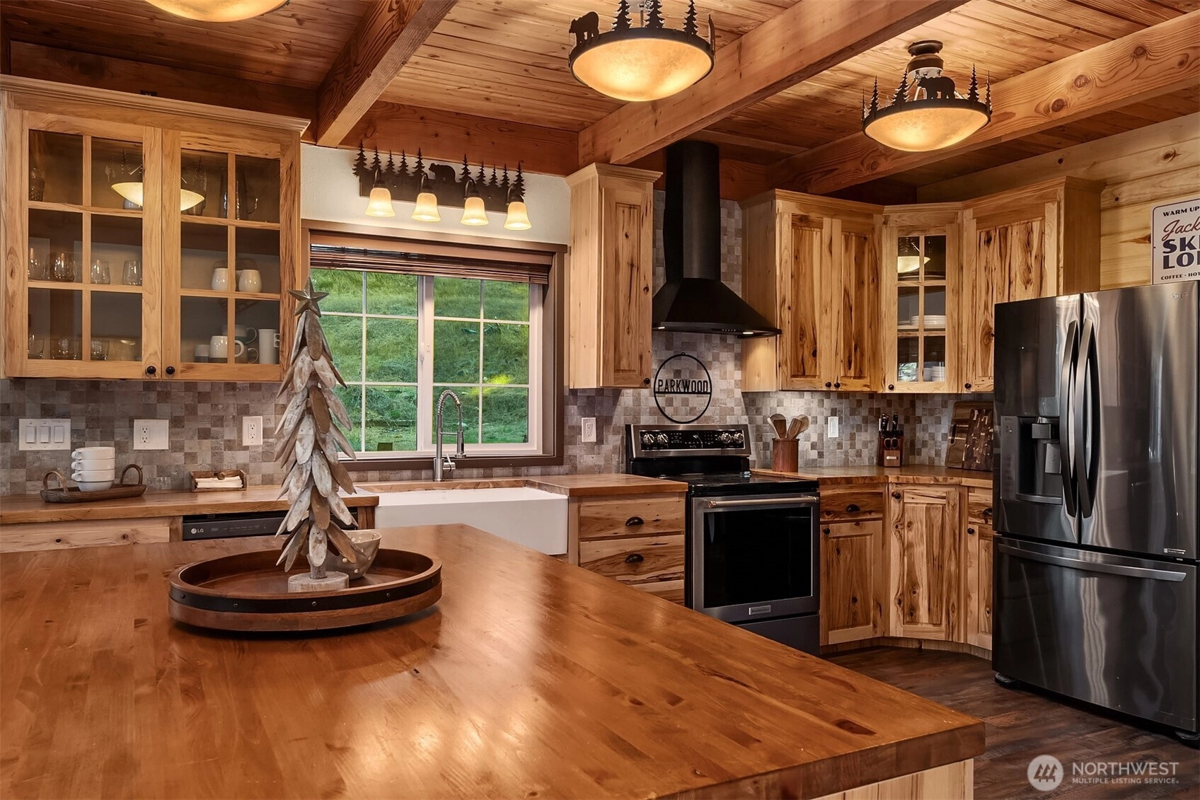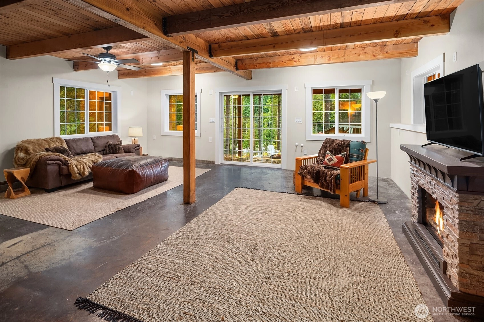 This spacious Packwood retreat has it all – including a massive Mt. Rainier view! Sited on an acre within the gated Hellem Dr, this 3-bed, 3-bath home is conveniently located under a mile from Packwood town center. You’ll love the home’s mountain vibe with abundant real wood throughout, durable LVP flooring, updated kitchen, updated baths – one on each floor – and the towering, vaulted chalet windows in the main living room. The lower level is the perfect flex space for a game room and ski tuning shop. The acre features 2 RV power hookups plus 1 full RV hookup, a detached bunk room, storage shed, and a detached bath house with extra laundry hookups. Don’t miss the opportunity to own one of Packwood’s coolest and most well-appointed chalets!