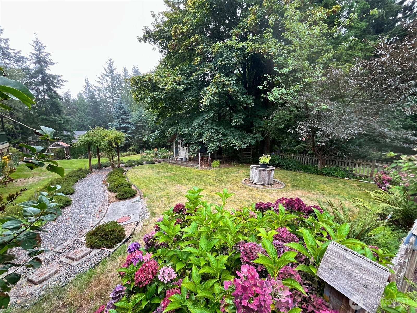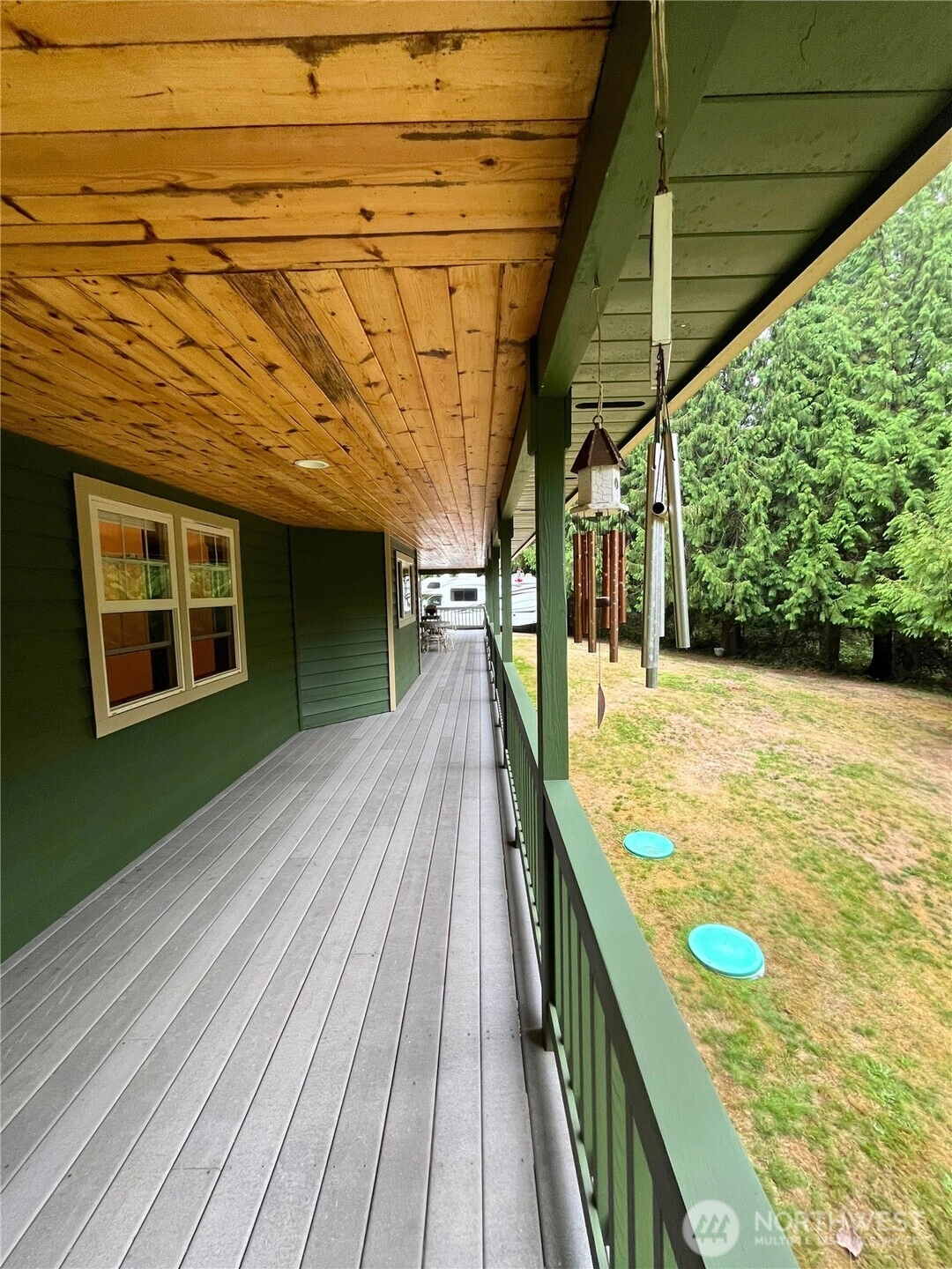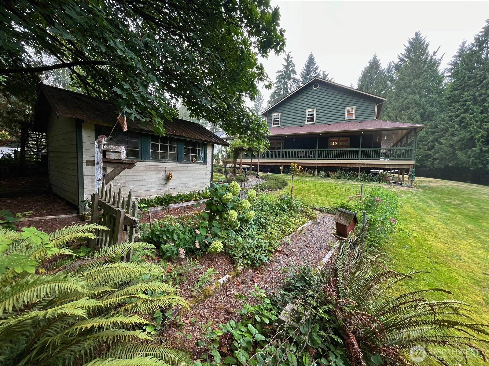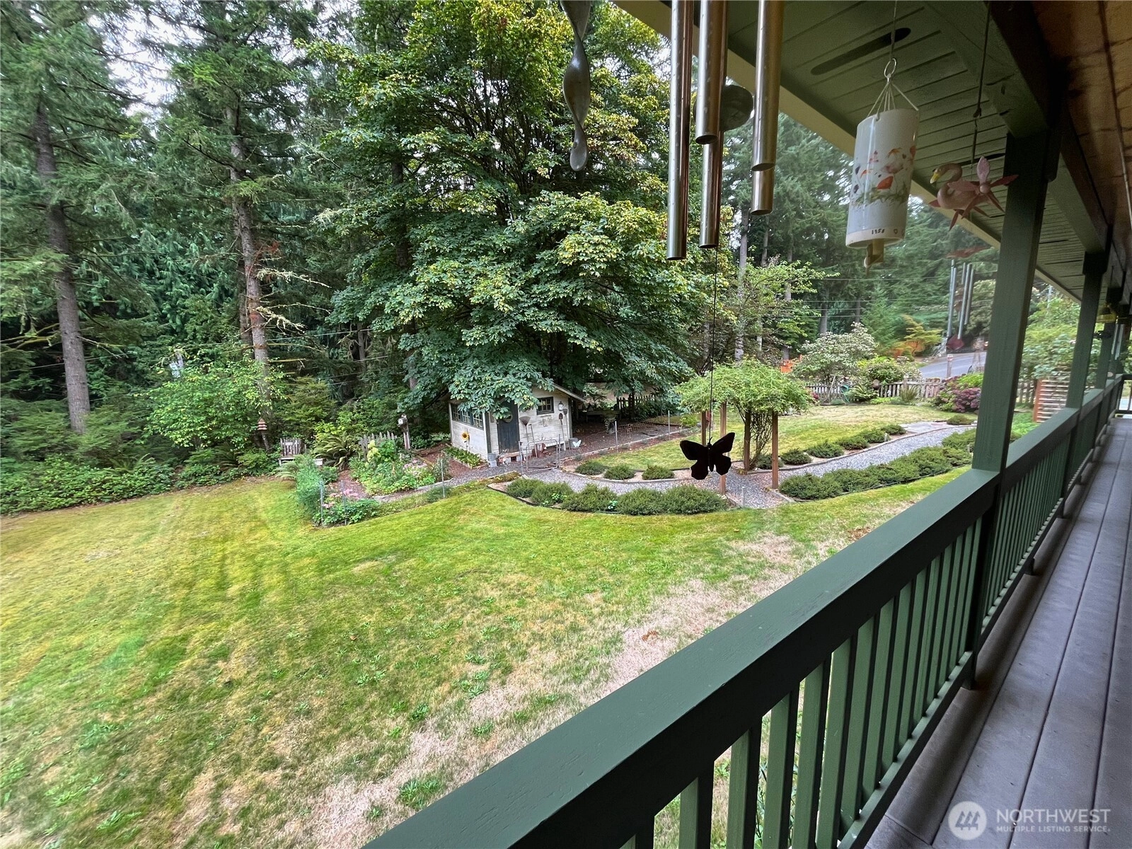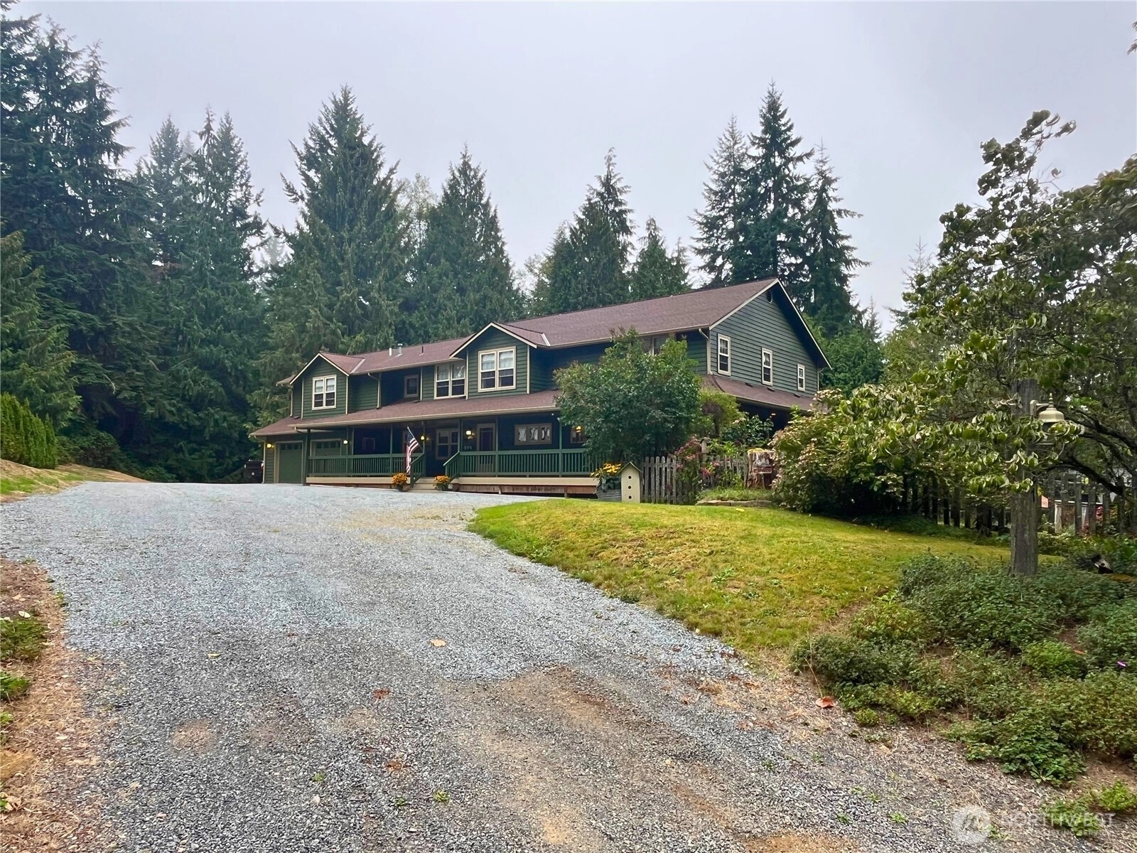 Nestled on 2.27 acres of towering evergreens, this 4,354 sq ft custom home blends rustic charm with modern updates. Pine plank floors and soaring pine ceilings frame 4 oversized bedrooms, 2.5 baths, a den, and a spacious bonus/game room. The entertainer’s kitchen offers newer appliances and double ovens. A one-of-a-kind 1,267 sq ft wrap-around deck invites unforgettable gatherings and quiet mornings alike. Six covered parking spaces include an 864 sq ft detached shop. Ideal for hobbies, projects or RV storage. New roof, tankless water system, well pump, and exterior paint (2021) ensure lasting peace of mind. Best of the Pacific Northwest privacy, natural beauty, and room to breathe all wrapped up in a home designed to bring people together.