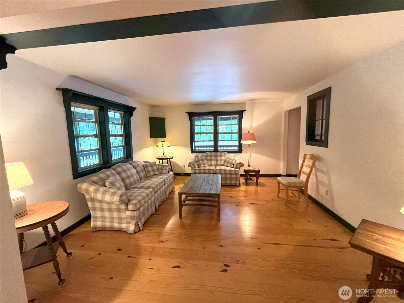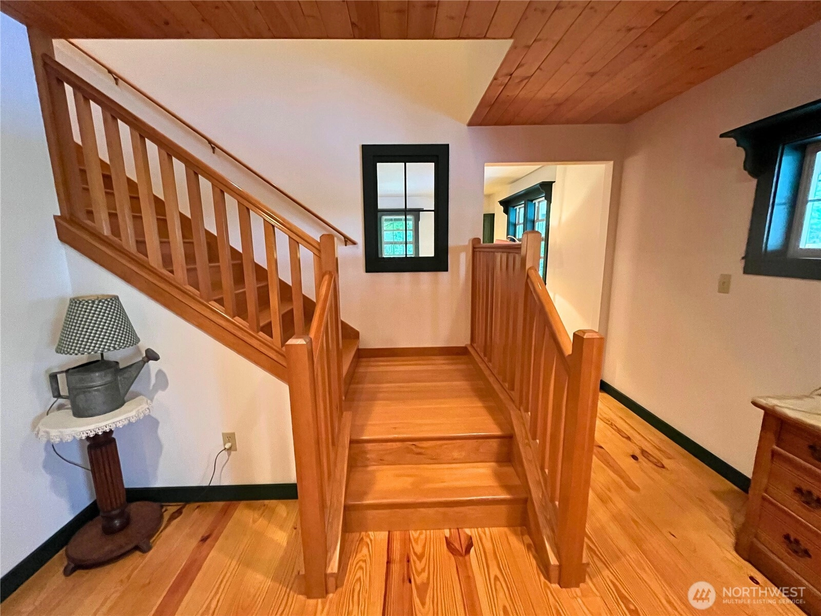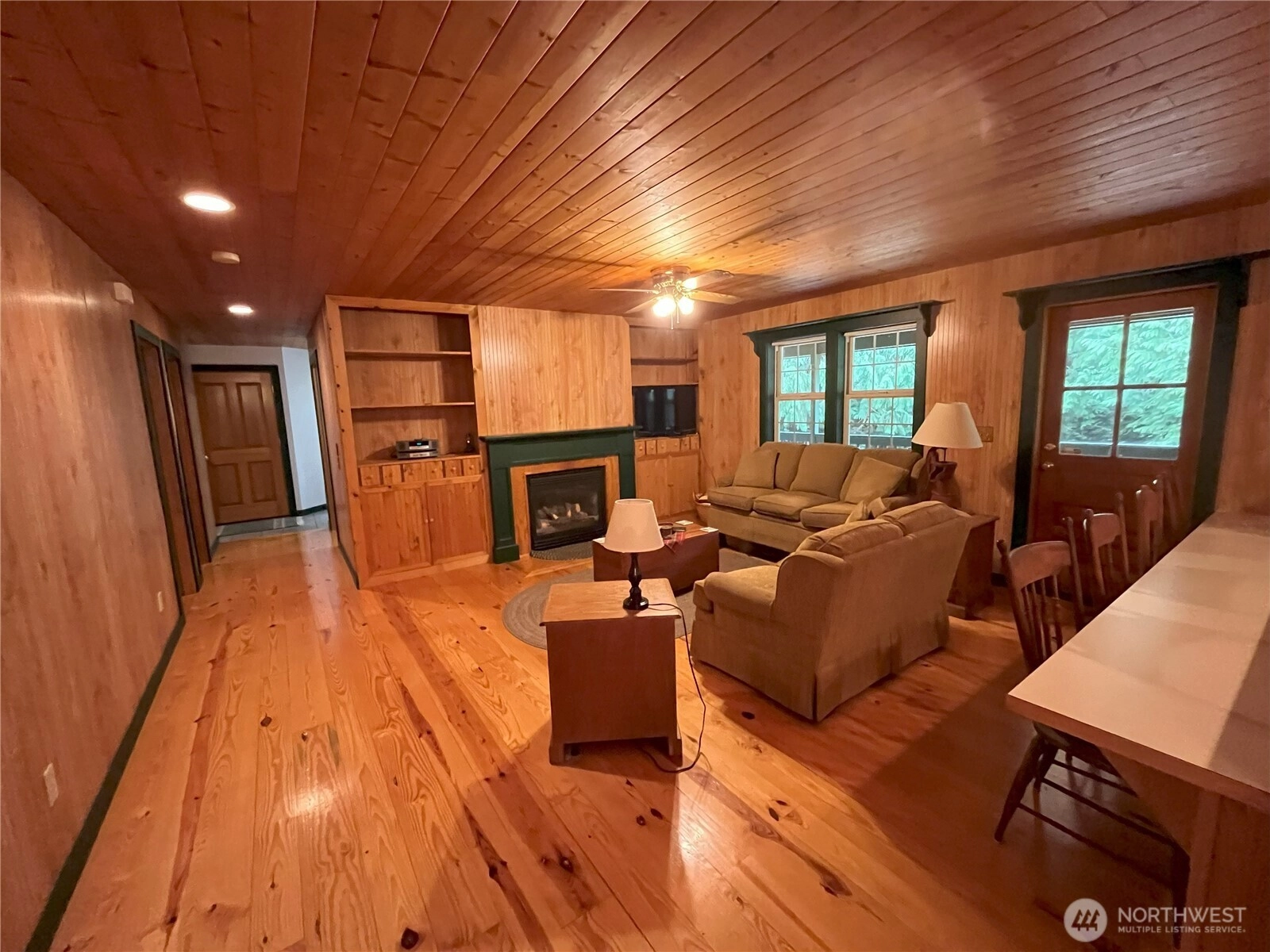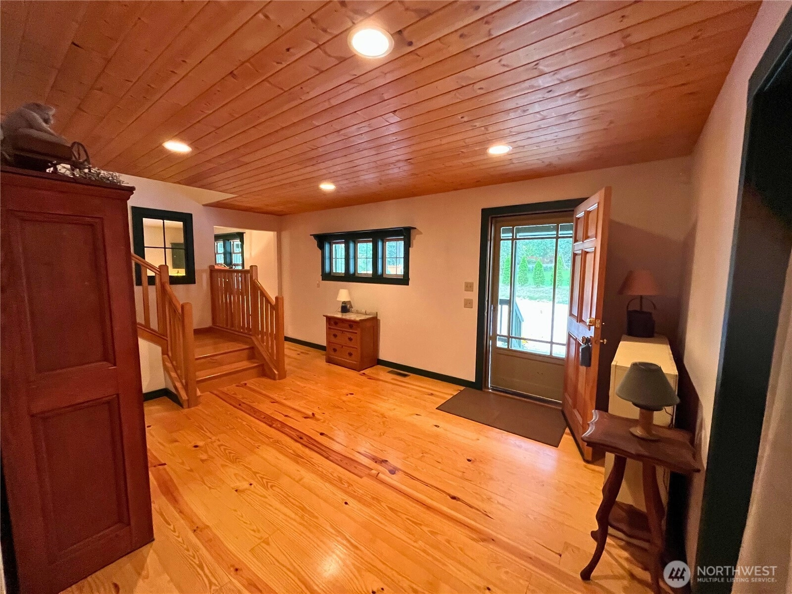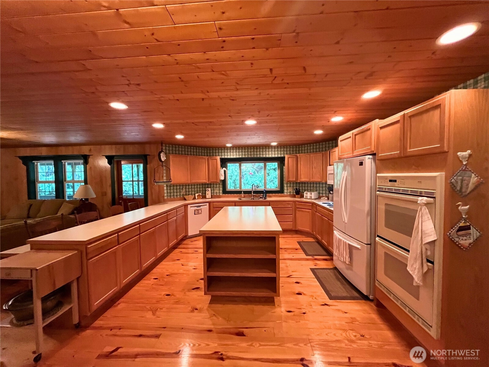 Nestled on 2.27 acres of towering evergreens, this 4,354 sq ft custom home blends rustic charm with modern updates. Pine plank floors and soaring pine ceilings frame 4 oversized bedrooms, 2.5 baths, a den, and a spacious bonus/game room. The entertainer’s kitchen offers newer appliances and double ovens. A one-of-a-kind 1,267 sq ft wrap-around deck invites unforgettable gatherings and quiet mornings alike. Six covered parking spaces include an 864 sq ft detached shop. Ideal for hobbies, projects or RV storage. New roof, tankless water system, well pump, and exterior paint (2021) ensure lasting peace of mind. Best of the Pacific Northwest privacy, natural beauty, and room to breathe all wrapped up in a home designed to bring people together.