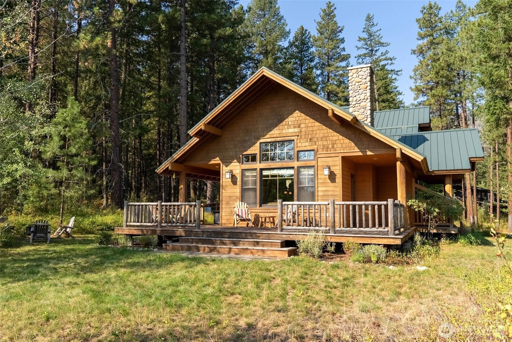 Custom 3BD/2.5 BA home in Mazama’s premier Wilson Ranch, set on 1.09 acres bordering USFS land for privacy and direct trail access. Northwest lodge-style design with vaulted ceilings, warm wood finishes, and abundant windows that frame mountain and forest views. Open living with stone fireplace, spacious kitchen, and seamless indoor-outdoor flow. Primary ensuite upstairs offers private balcony and large bathroom. Community amenities include a 4-acre lake for swimming, fishing, and paddle boarding, plus pool and hot tub. Offered fully furnished, this rare nightly rental–zoned home blends comfort, recreation, and investment potential in the heart of Mazama’s most popular neighborhood.