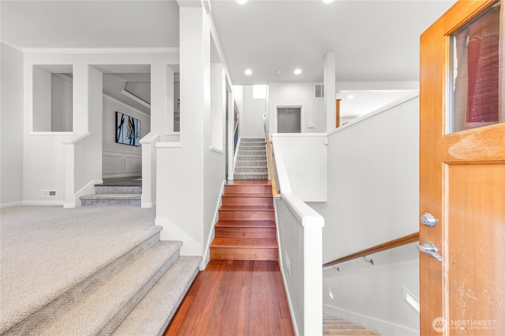 This beautifully updated home offers modern living in a fantastic, convenient neighborhood. The open-concept main floor features hardwood floors, abundant natural light, and a kitchen with granite counters and stainless steel appliances. The upper level includes a master suite with vaulted ceilings and a luxurious 5-piece en-suite. The finished lower level provides a flexible rec room, an additional bedroom, and a full bathroom. The lower level is potential rental income. Enjoy outdoor relaxation on the balcony or in your very private, low-maintenance backyard. Perfectly located near shops, restaurants, parks, and schools.