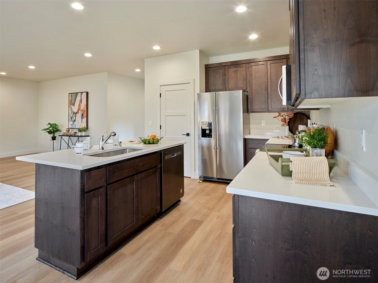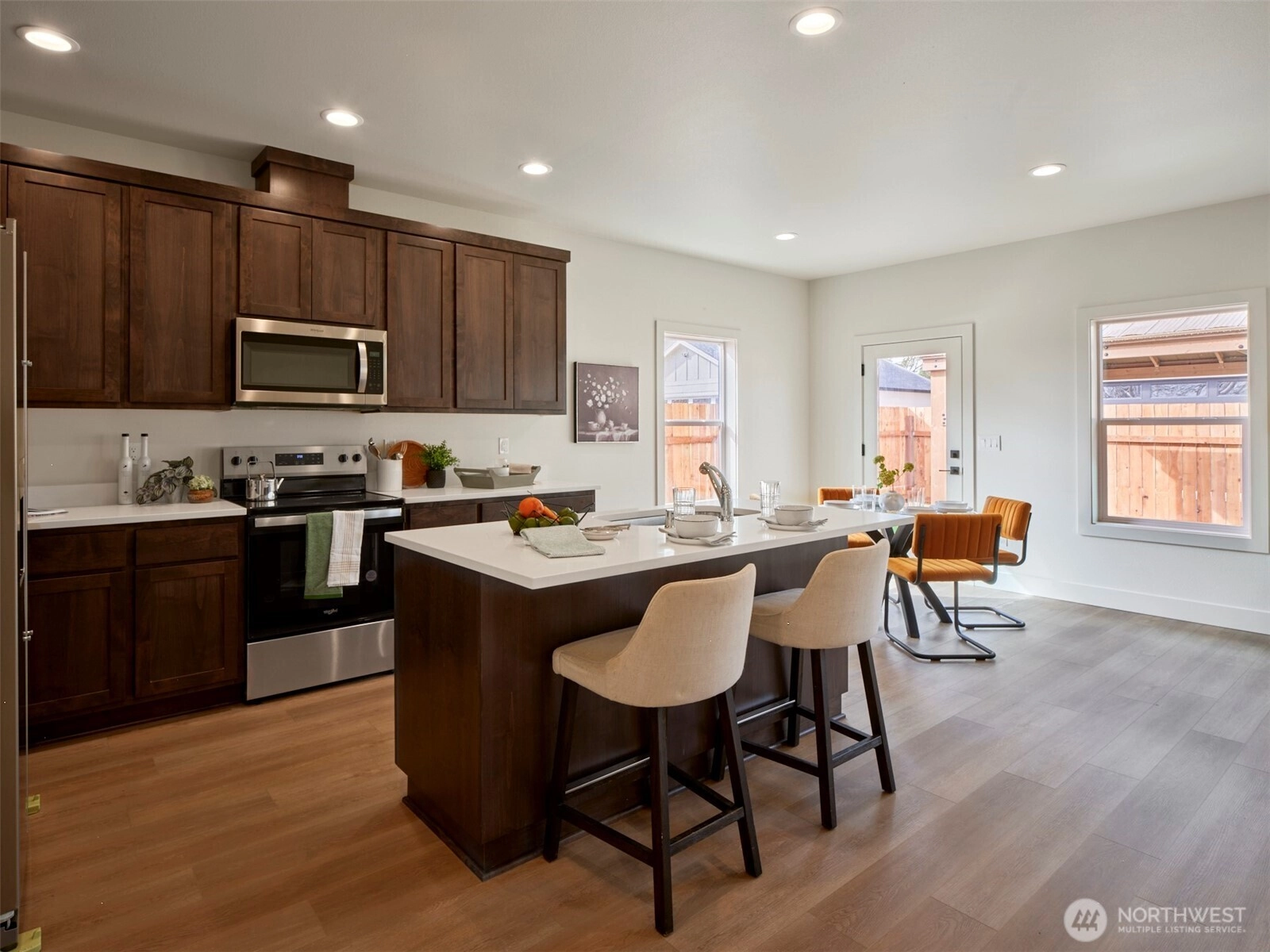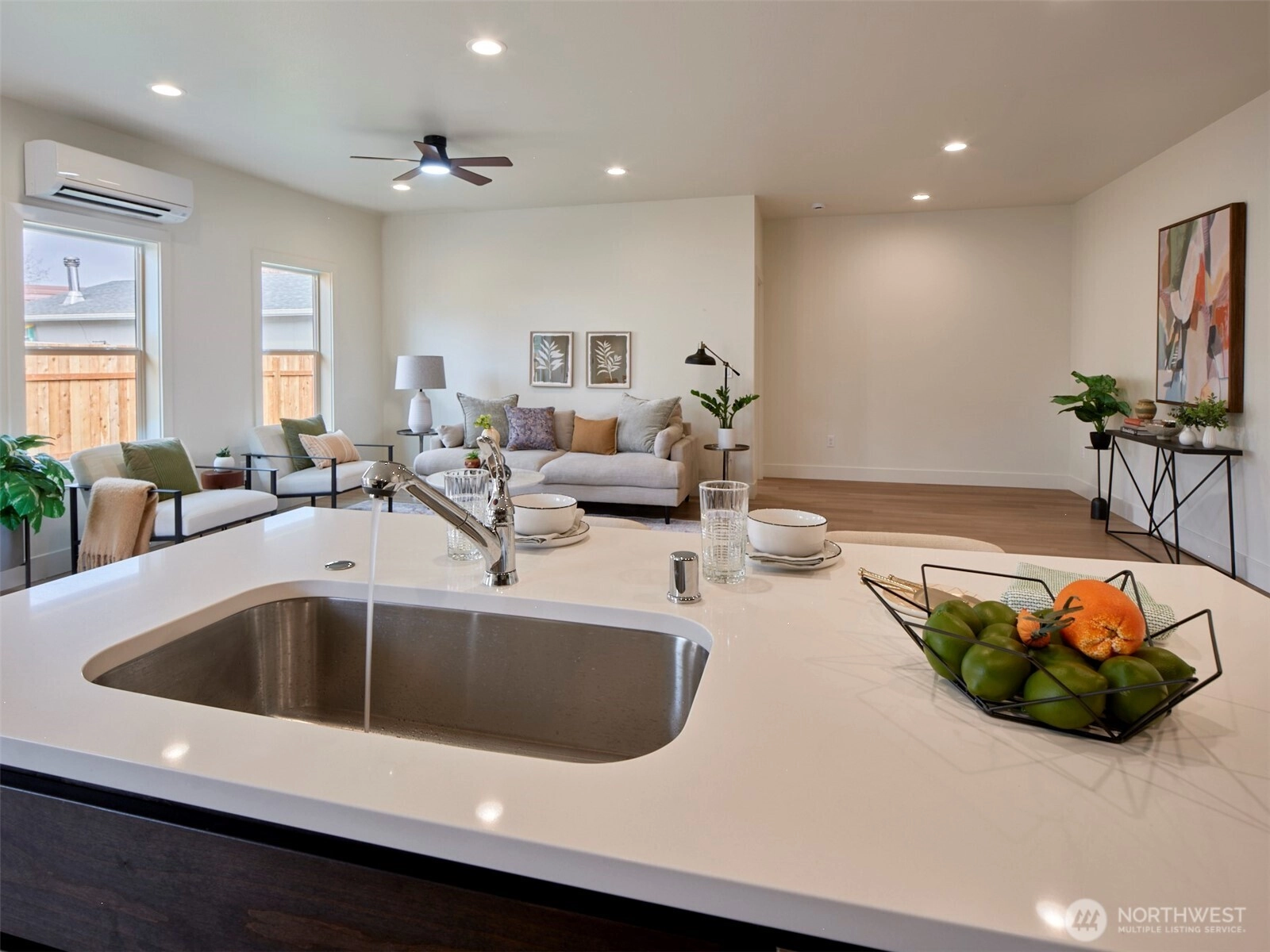 Brand NEW one level home offering a convenient lifestyle and beautiful living! A true must see to appreciate; Beautiful roomy kitchen features a huge quartz island, stylish white cabinets, SS appls, open concept living and dining rms. Fantastic Primary suite and ensuite bath & walk-in closet. Two more bedrooms & full bath secluded on opposite side of home, making for an ideal layout. Large laundry with extra storage plus fully fenced backyard has covered patio for year-round enjoyment! Bike or quick walk to Horseshoe Lake Park, Columbia River, Library, restaurants, shops and EZ access to I-5. Home Warranty included. Be the first to live here, it's a gem!