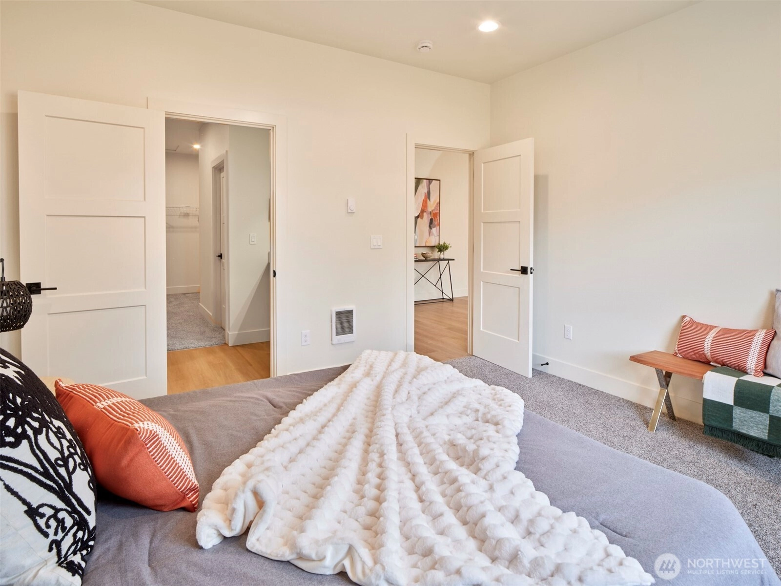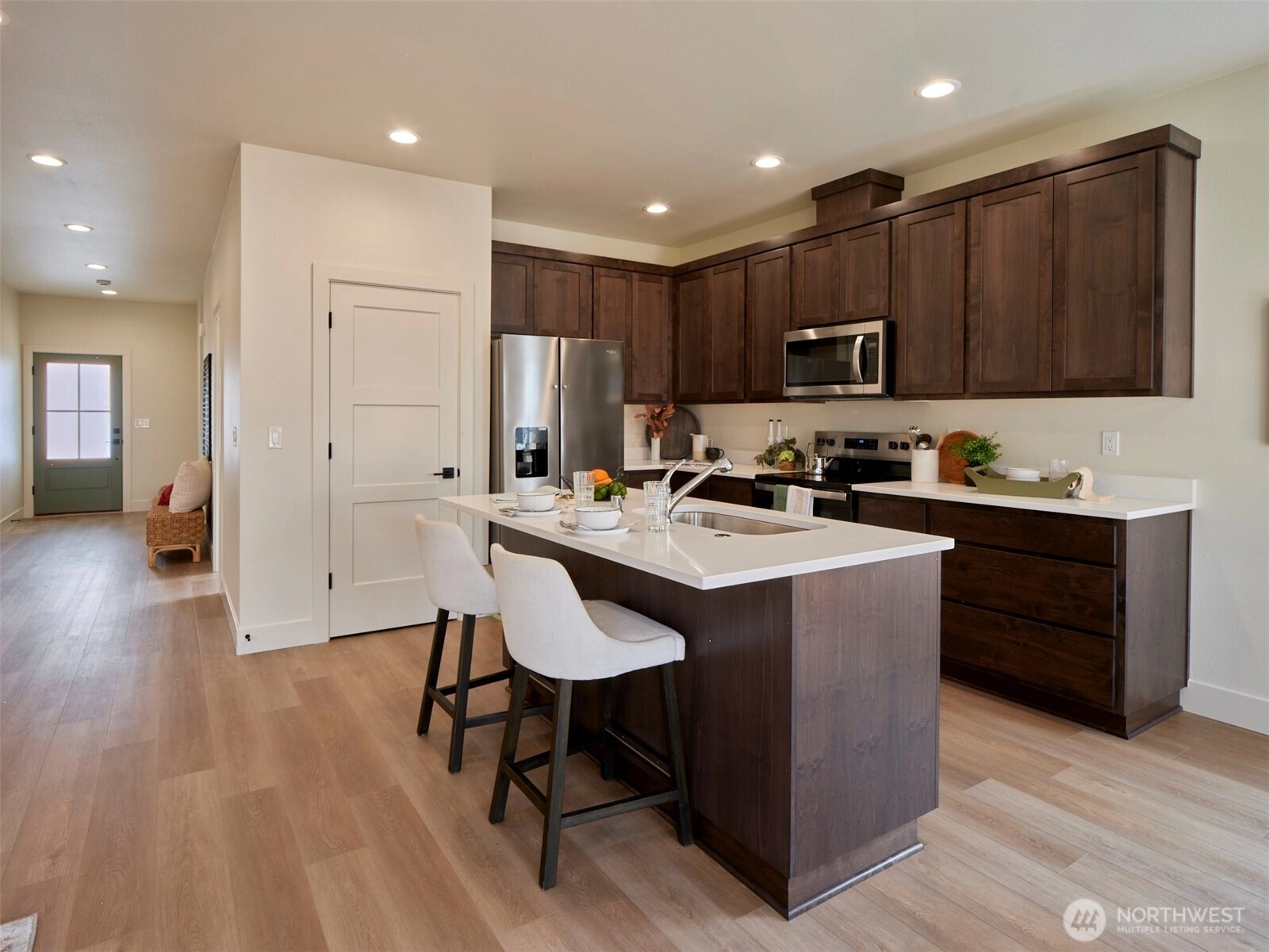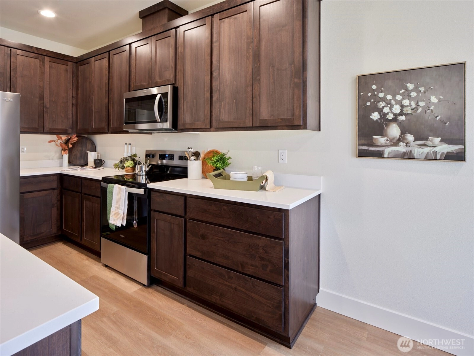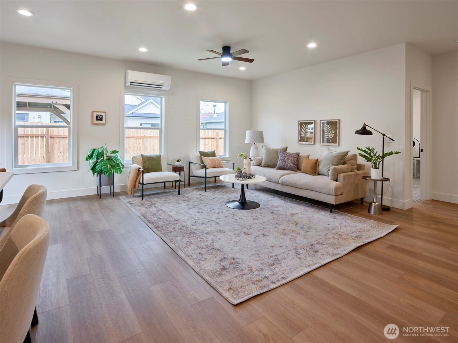 Brand NEW one level home offering a convenient lifestyle and beautiful living! A true must see to appreciate; Beautiful roomy kitchen features a huge quartz island, stylish white cabinets, SS appls, open concept living and dining rms. Fantastic Primary suite and ensuite bath & walk-in closet. Two more bedrooms & full bath secluded on opposite side of home, making for an ideal layout. Large laundry with extra storage plus fully fenced backyard has covered patio for year-round enjoyment! Bike or quick walk to Horseshoe Lake Park, Columbia River, Library, restaurants, shops and EZ access to I-5. Home Warranty included. Be the first to live here, it's a gem!