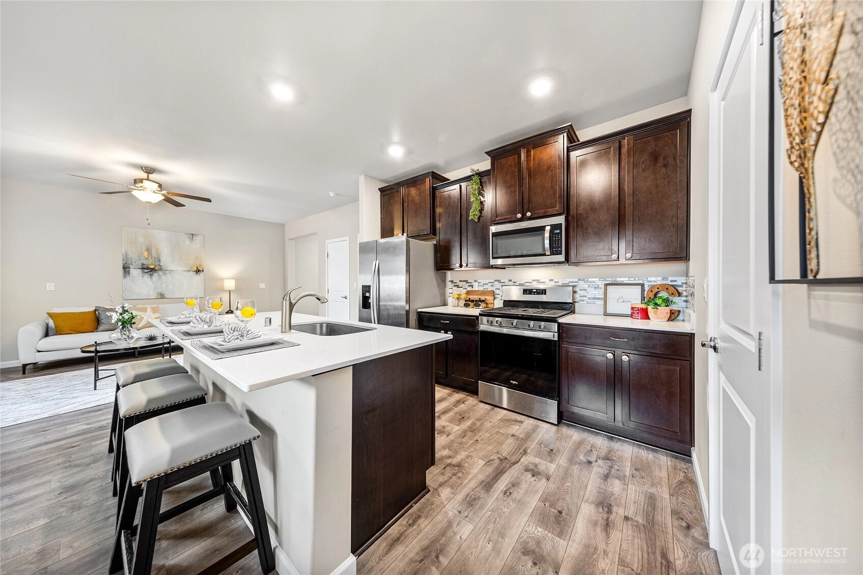 This beautiful house with a solid price is located within the Lake Stevens School District. The Hawthorn plan by LGI Homes is a thoughtfully designed two-story home with 4 bedrooms and 2.5 bathrooms, fully inspected and offering great natural light throughout. The open-concept main floor features a spacious great room, dining area, and modern kitchen with a full suite of Whirlpool appliances, including refrigerator and built-in microwave. Upstairs, the private master retreat boasts a huge walk-in closet. Three additional bedrooms, a second full bath, and a versatile tech loft provide extra space for work or play. Home is still under great condition for peace of mind.
