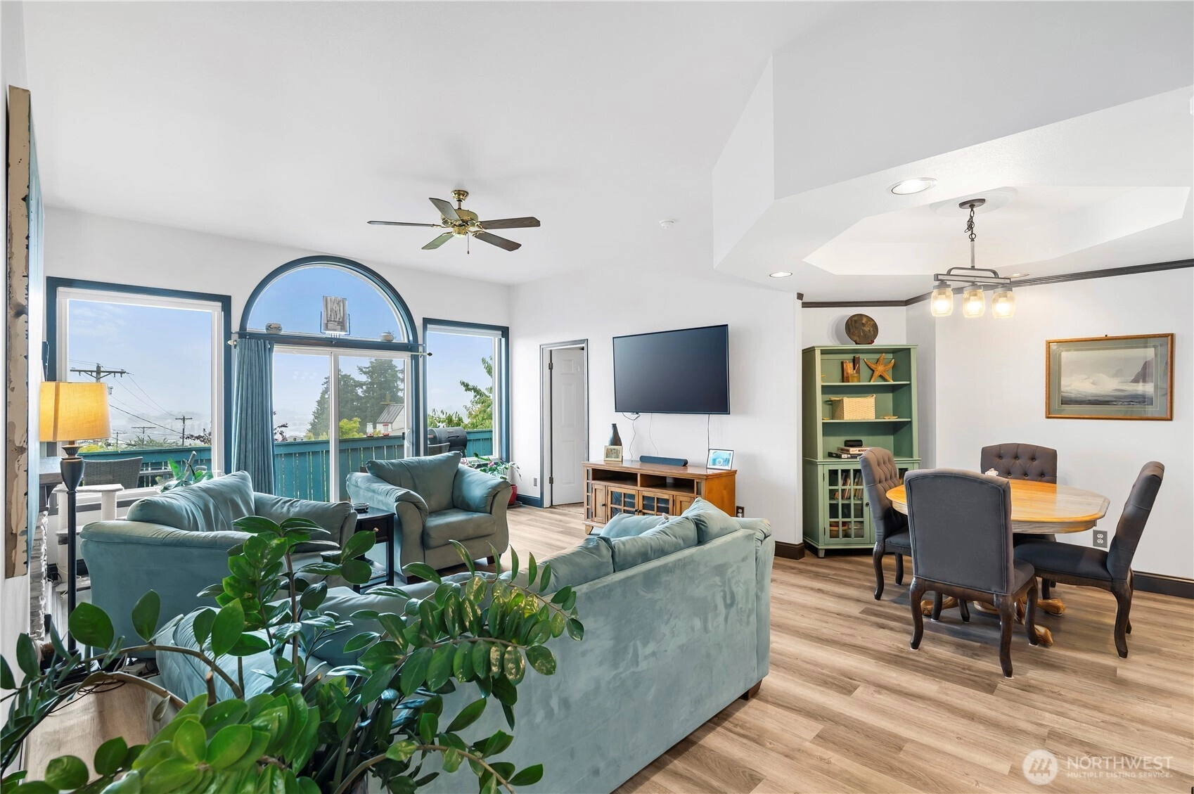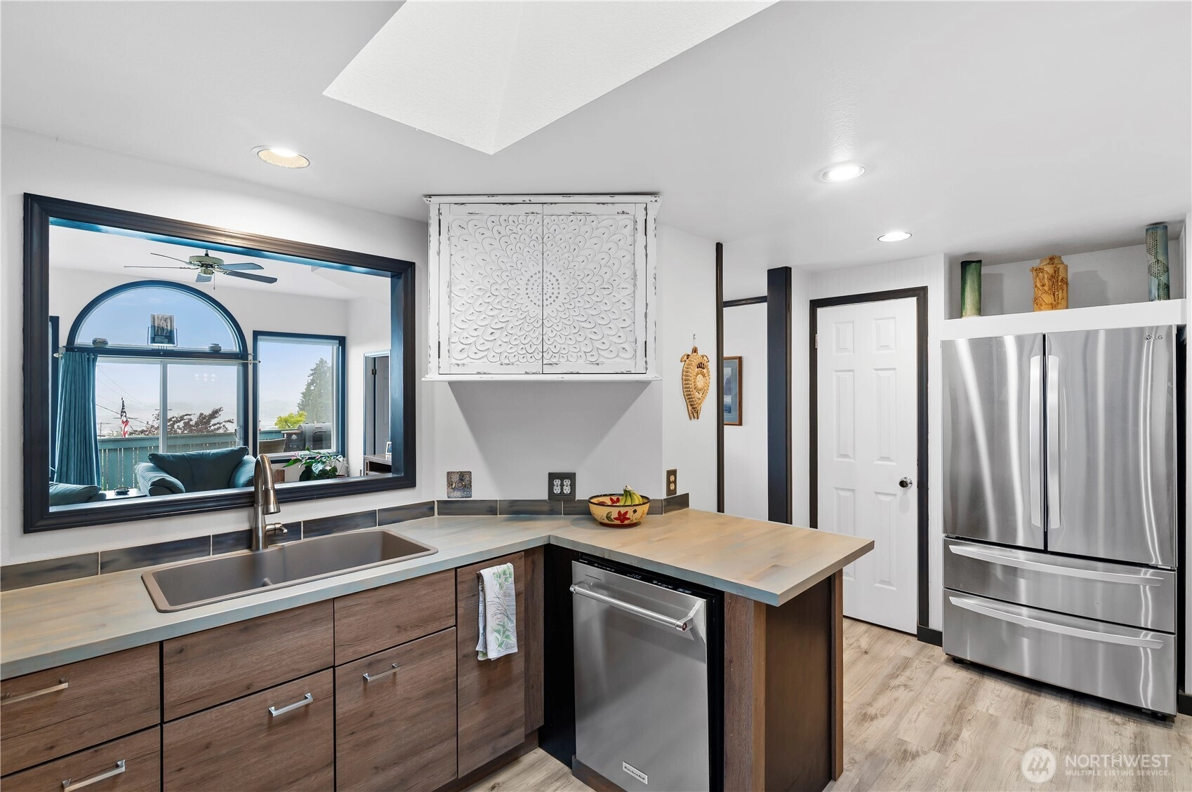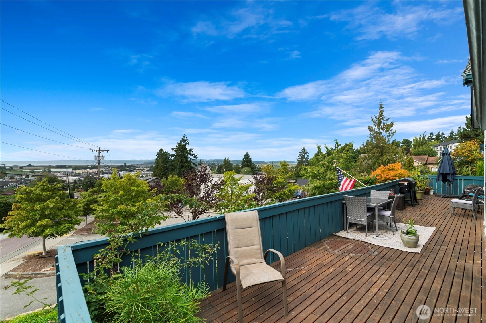 Zero-step entry! Rare find on the hill with Sound and mountain views, this 5-bedroom + office home offers a ton of layout versatility for both renting and full owner occupancy. Main floor: 3 beds incl primary suite, 2 baths, kitchen, dining, living. Extra storage/pantry space in the garage, pull-out cabinet shelving in the kitchen, true sit-in shower in primary bathroom, huge deck spanning the back of the home. The daylight basement has a massive living area with a full kitchen, two bedrooms, an office, bath, generous storage, and its own entrance opening to a fenced yard. It's already set up for separate living but worth looking into ADU permitting! RV/boat parking. Dbl check location (corner of Cedarhome/Henning).