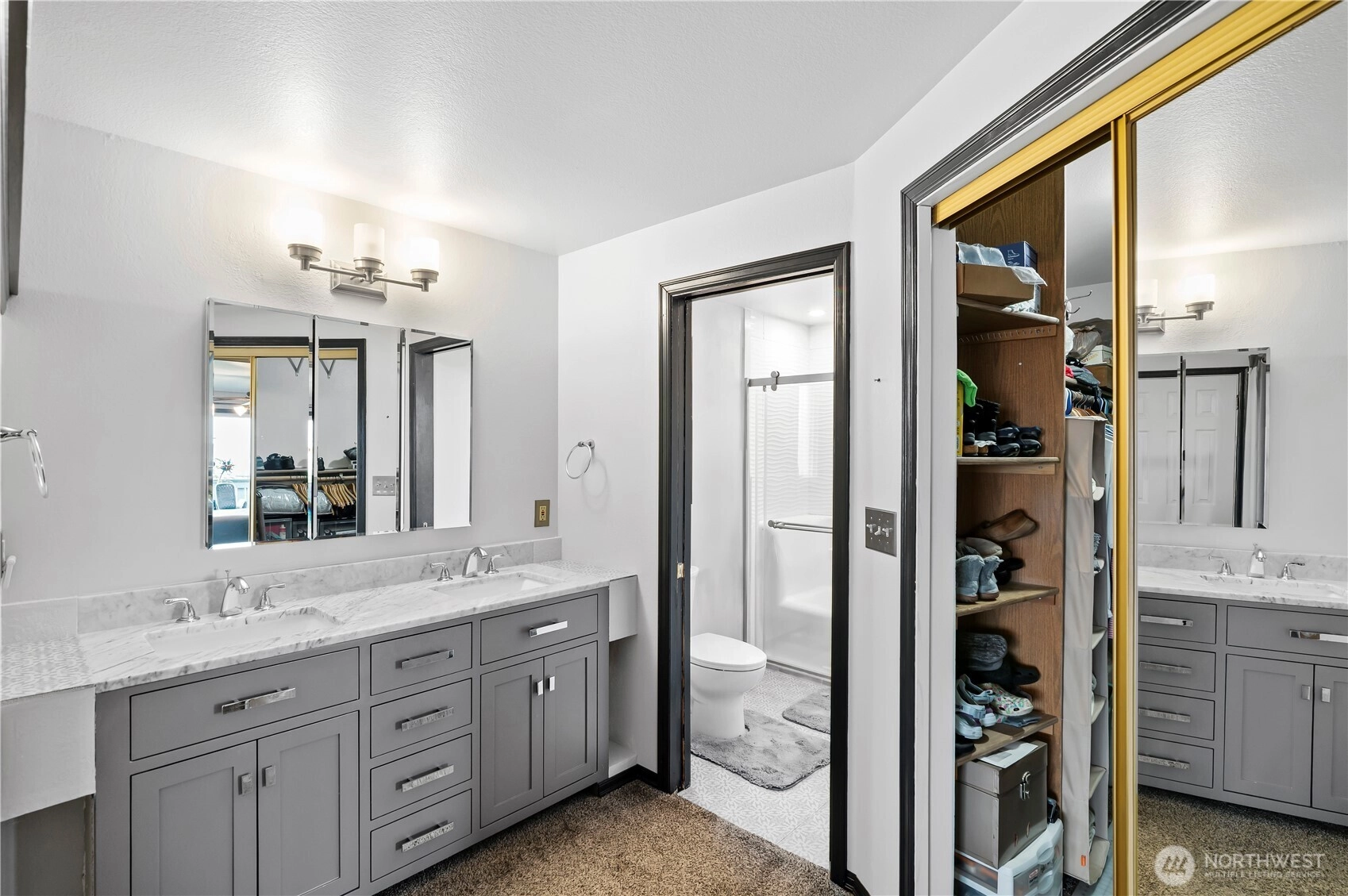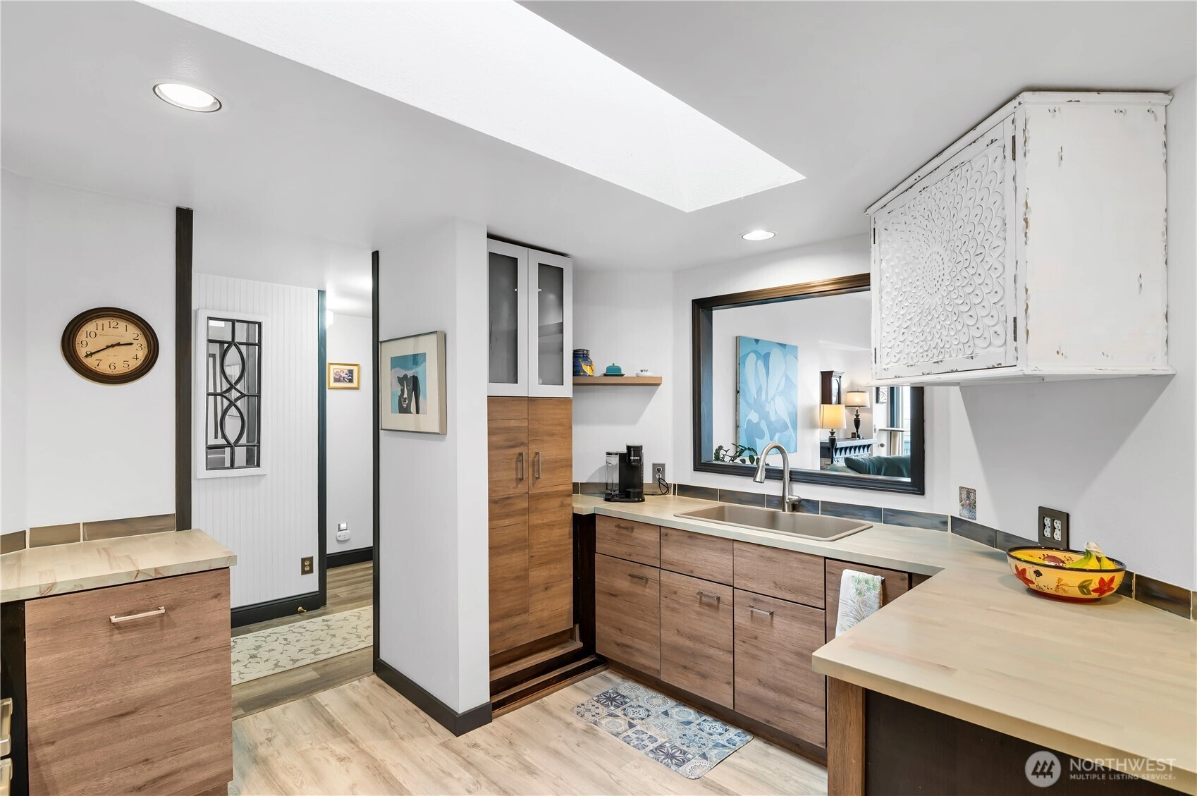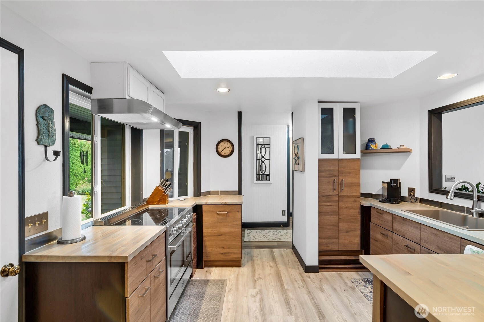 Zero-step entry! Rare find on the hill with Sound and mountain views, this 5-bedroom + office home offers a ton of layout versatility for both renting and full owner occupancy. Main floor: 3 beds incl primary suite, 2 baths, kitchen, dining, living. Extra storage/pantry space in the garage, pull-out cabinet shelving in the kitchen, true sit-in shower in primary bathroom, huge deck spanning the back of the home. The daylight basement has a massive living area with a full kitchen, two bedrooms, an office, bath, generous storage, and its own entrance opening to a fenced yard. It's already set up for separate living but worth looking into ADU permitting! RV/boat parking. Dbl check location (corner of Cedarhome/Henning).