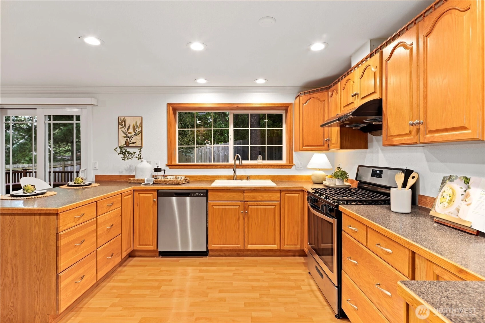 Tucked away on a cul-de-sac in the desirable Somerset area, this beautiful two-story home blends modern design with effortless living. A sun-drenched entry with soaring ceilings welcomes you into formal living & dining spaces, perfect for entertaining. Chef’s kitchen offers abundant storage and opens to an expansive deck, creating a seamless indoor-outdoor flow. The main floor also features a versatile family room with a cozy fireplace, a laundry area, and a powder bath, access to attached garage. Upstairs, the oversized primary suite boasts a walk-in closet and spa-like bath. Plus, 2 large bedrooms and a bonus room with a fireplace for work or play. Fresh paint, new carpet, move-in ready, & within the desirable Bellevue School District.