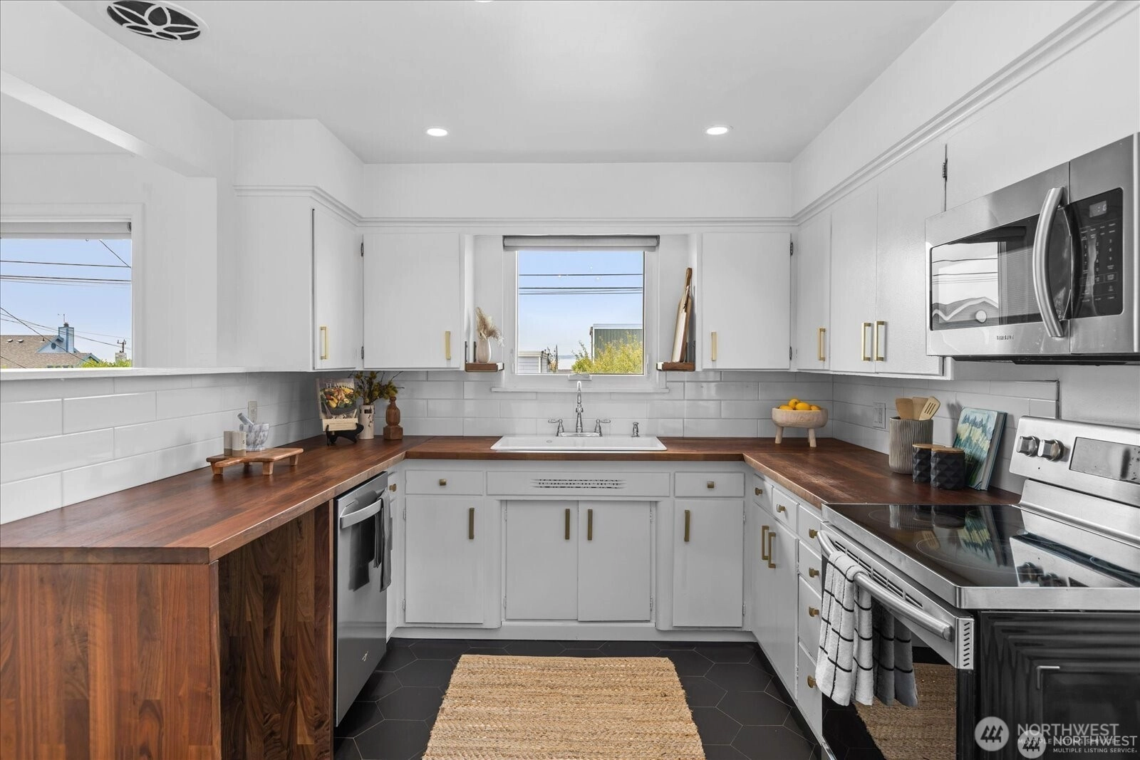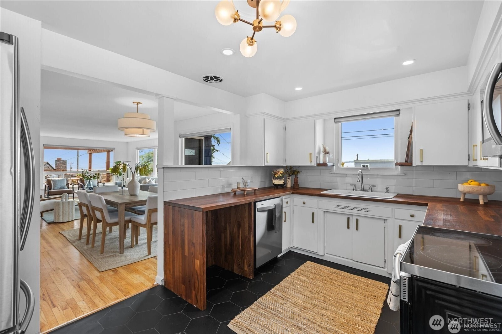 Welcome to the beach! You'll love this fresh, fun beachy home w/ partial Sound & mountain views. Just open any door or window to enjoy a fresh breeze off the water! This cutie is nestled in Richmond Beach bowl just a short stroll to the library, restaurants, parks, beaches, The Little Store & The Cabin Tavern. An exceptional investment opportunity to procure a property in this coveted neighborhood at an affordable price & either keep it as-is & simply enjoy the cozy spaces & abundance of natural light OR add on to capture more view or space (buyer to verify). Spa-like primary suite, peaceful yard featuring a gorgeous corkscrew willow, ample parking. Quick & easy access to I-5/public transportation. Downtown Edmonds less than 3 miles away!
