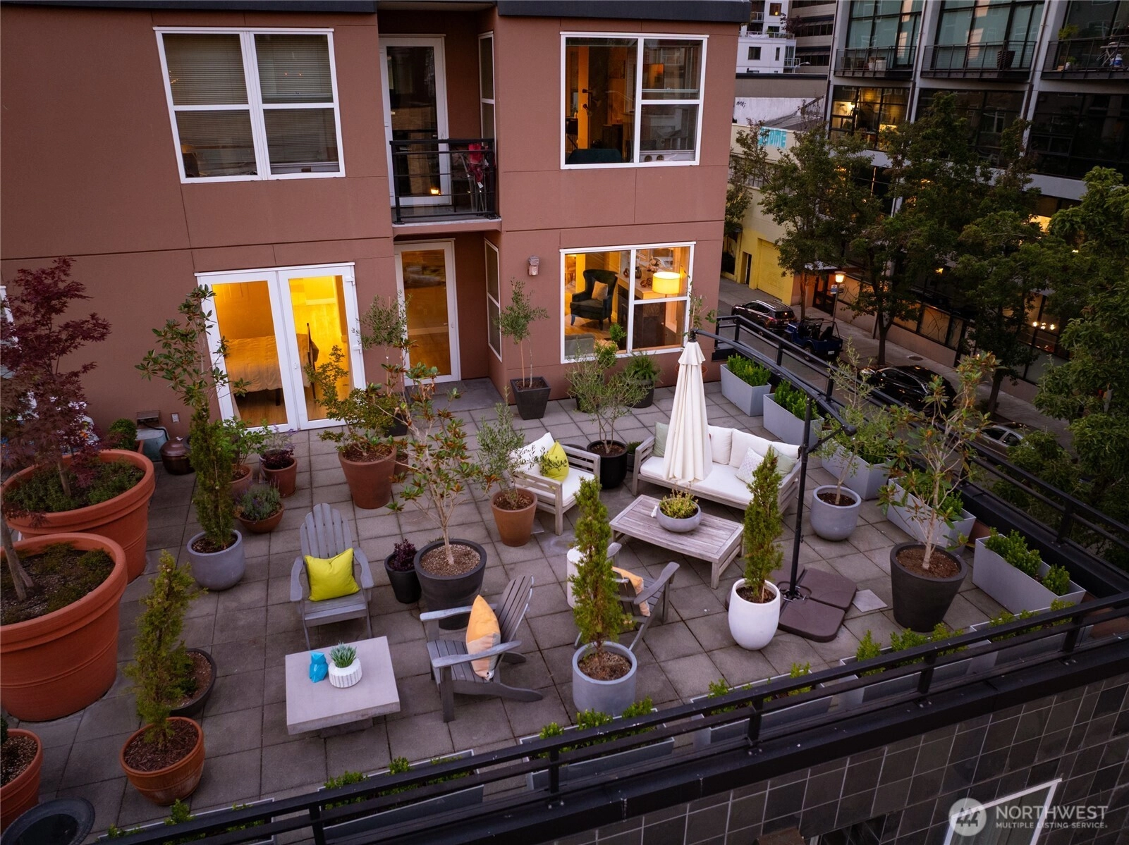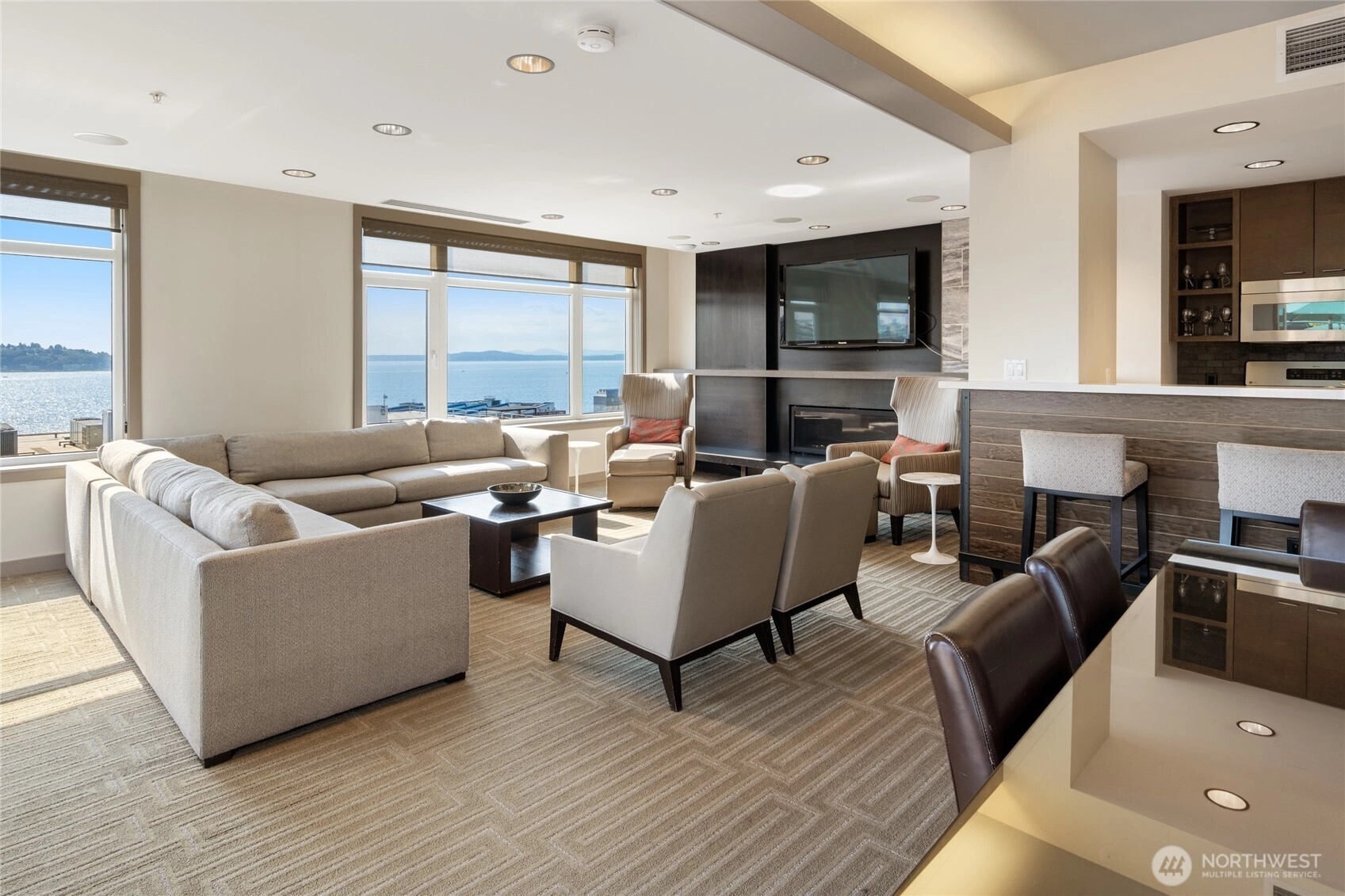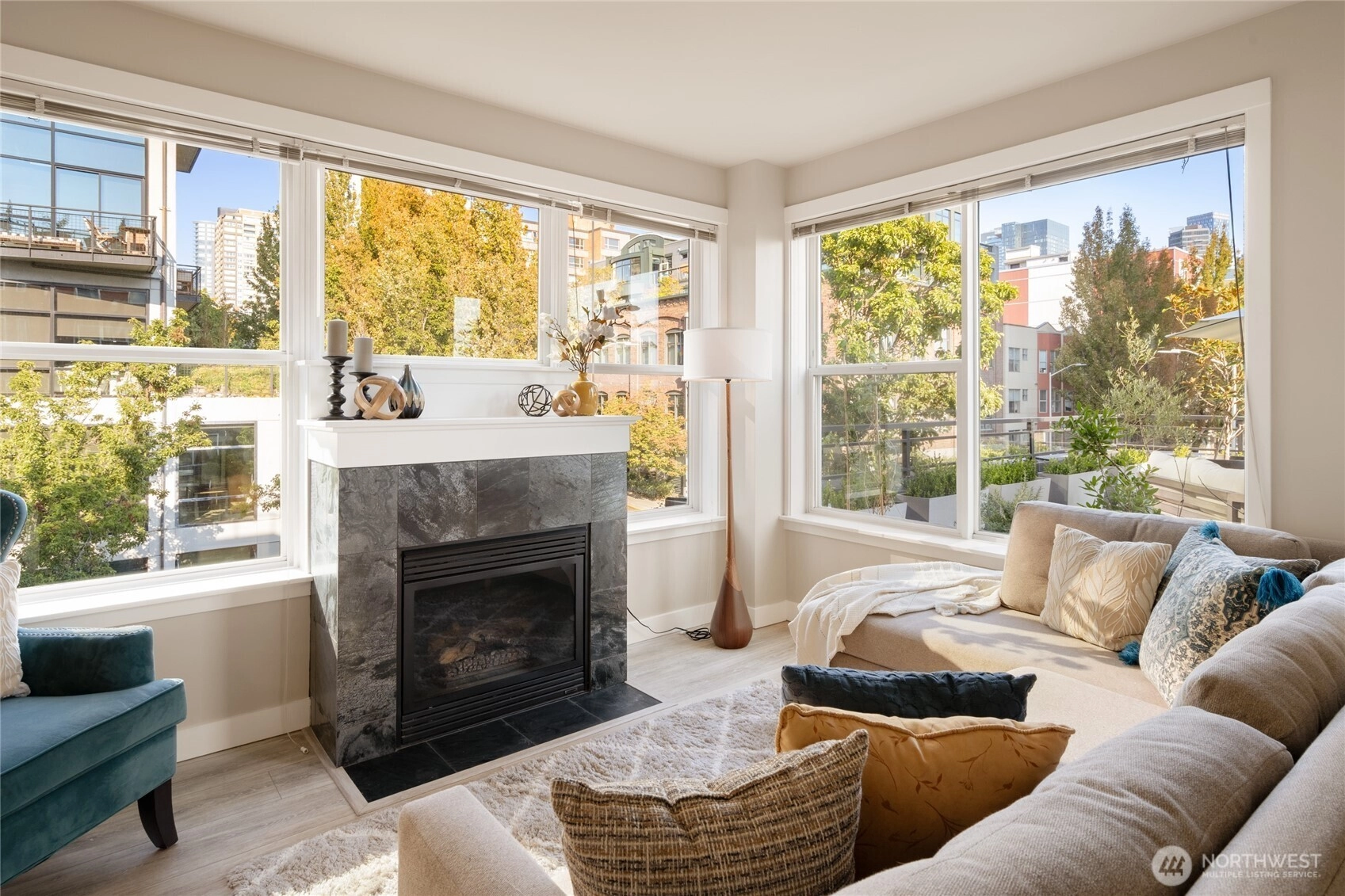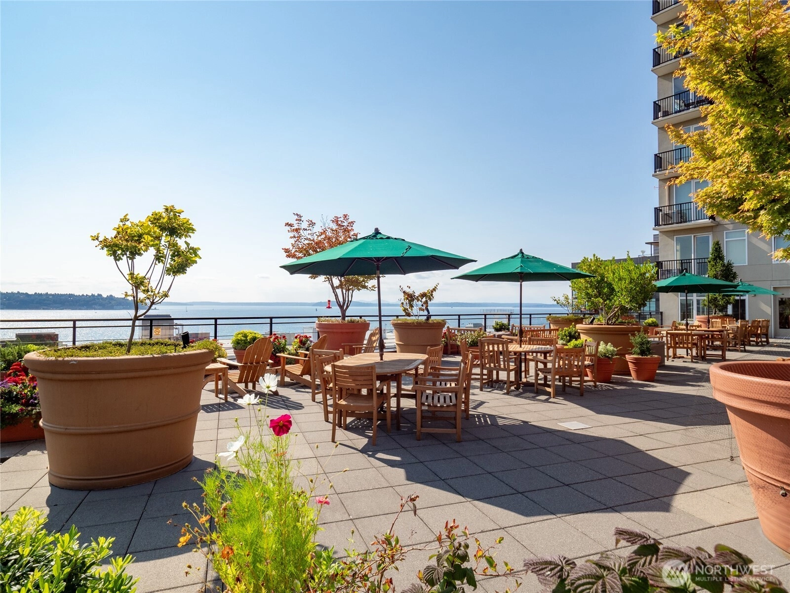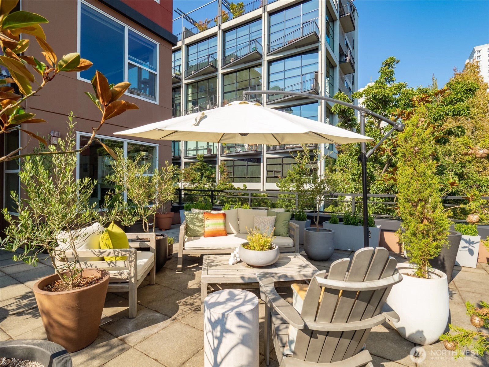 Bask in sunlight, sea breeze & stunning views from this one-of-a-kind unit at The Vine! Savor life's sweetest moments from the rare, private 660sqft terrace overlooking Elliott Bay, downtown & the Olympics; a remarkable outdoor sanctuary! French doors seamlessly connect the terrace to the bright interior, boasting large corner windows, new LVP floors, fresh paint, a gas fireplace & a chef's kitchen w/ quartz counters & stainless appliances. The versatile layout features 2 bdrms & an office nook. Parking & storage too. Fantastic bldg amenities include a rooftop deck & lounge w/ breathtaking views, 24hr concierge, guest suites, a gym & more! Immerse yourself in the vibrant energy of the city, then unwind in the calm of your peaceful retreat.