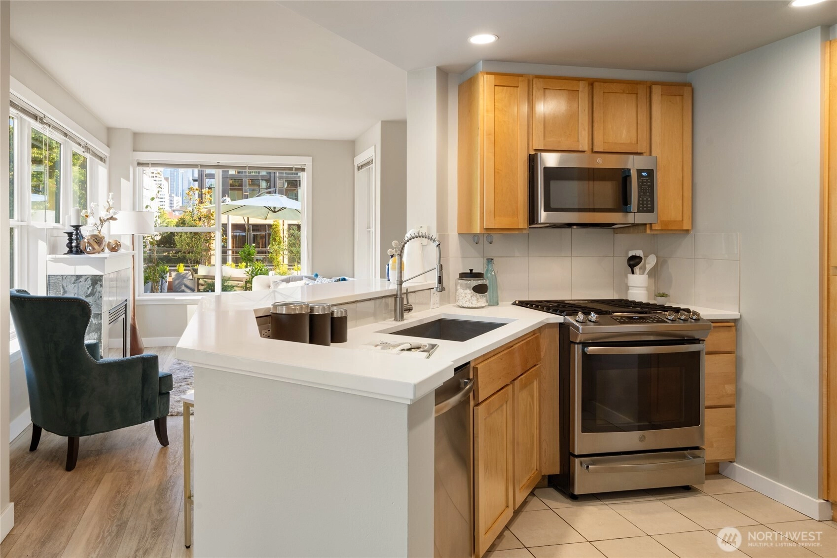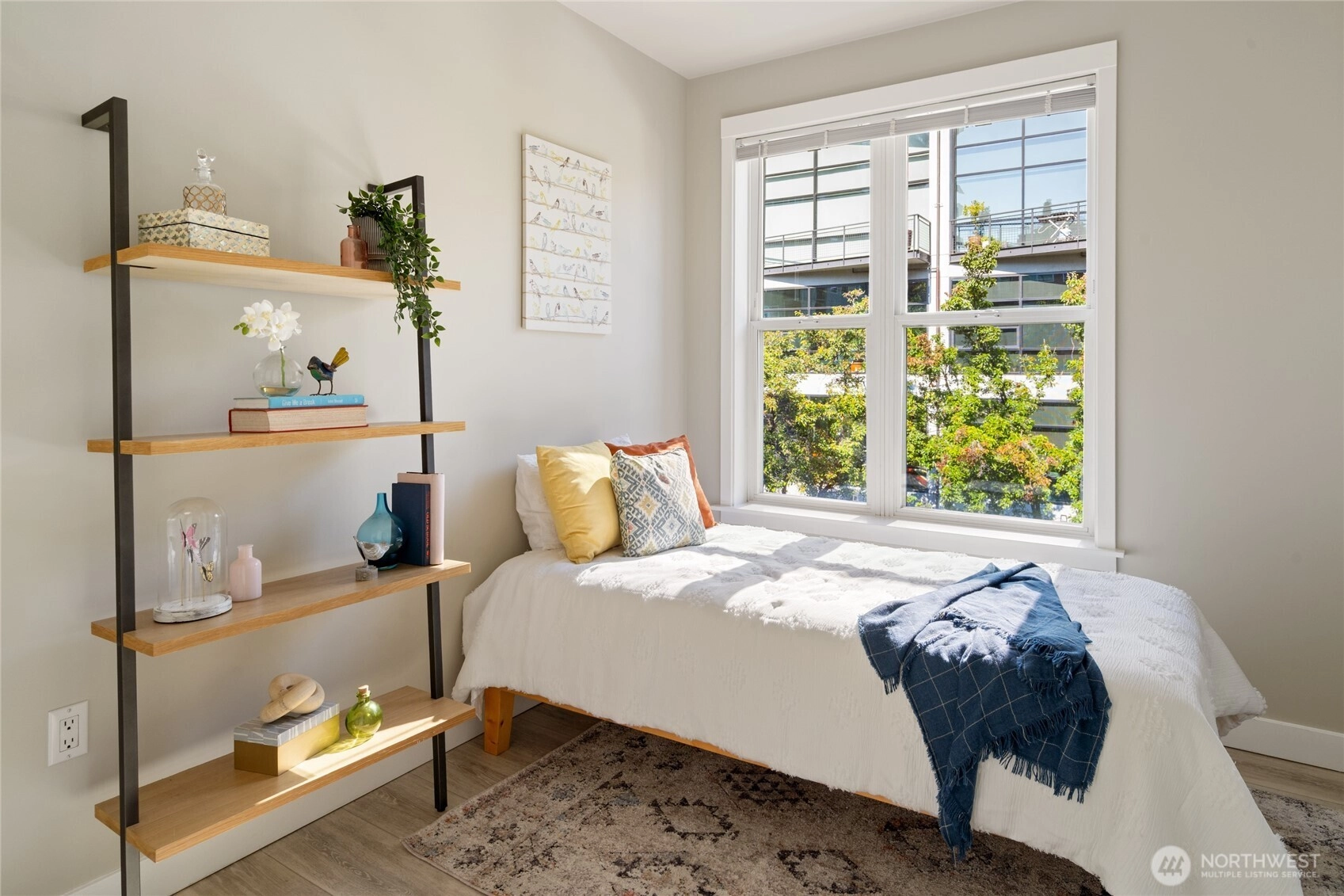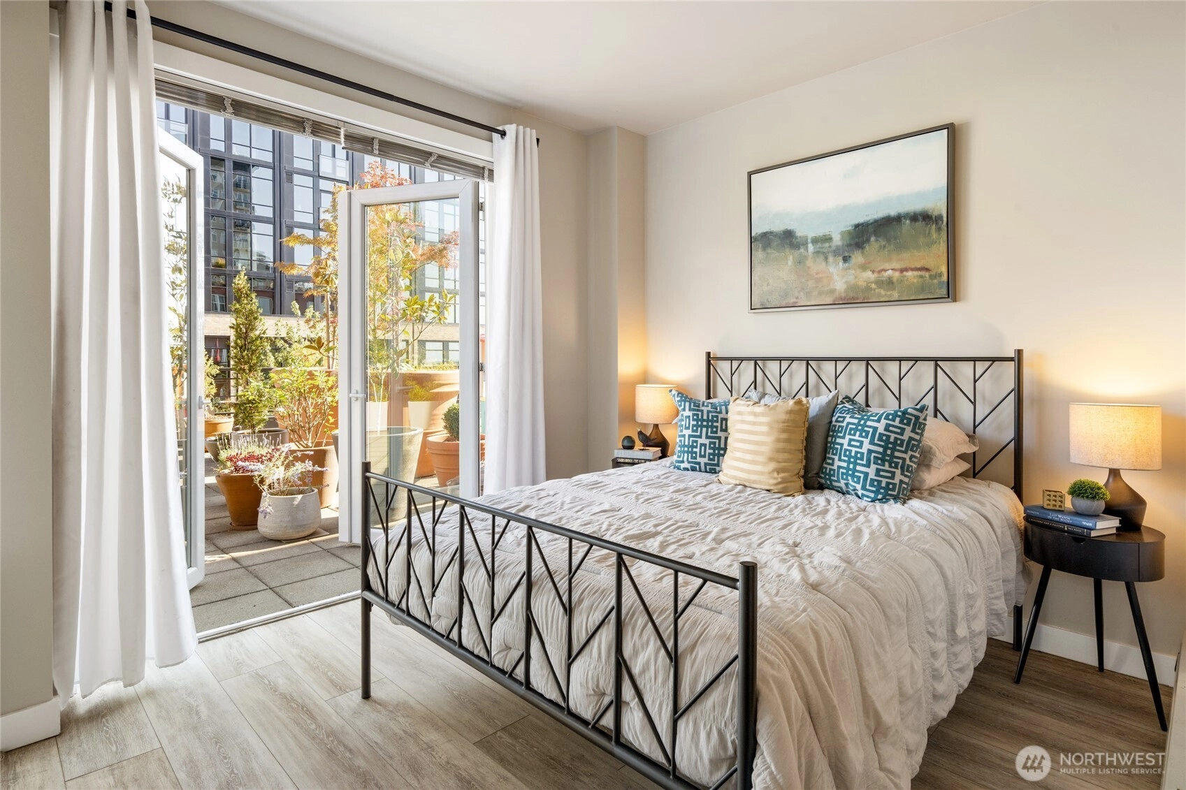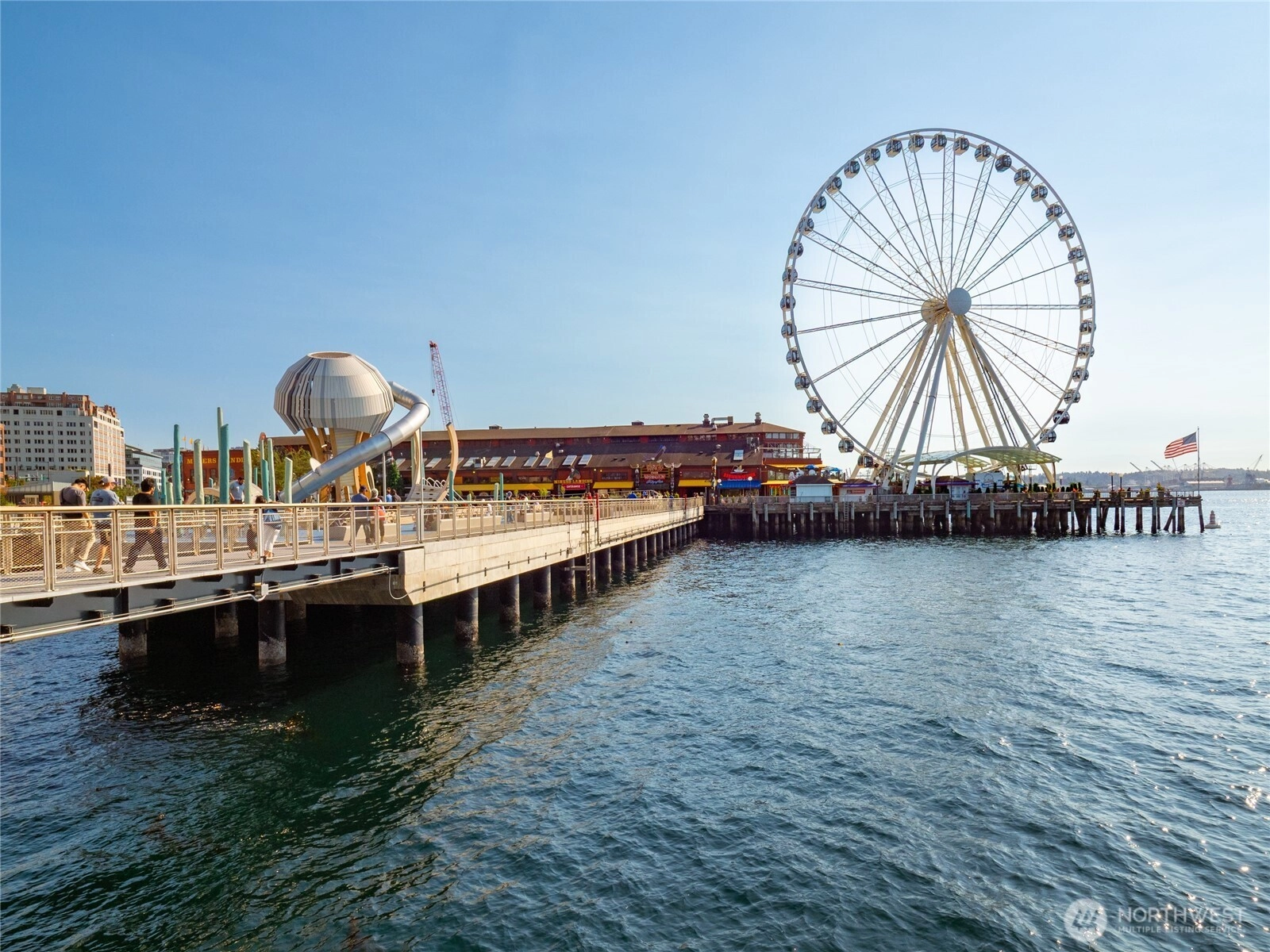 Bask in sunlight, sea breeze & stunning views from this one-of-a-kind unit at The Vine! Savor life's sweetest moments from the rare, private 660sqft terrace overlooking Elliott Bay, downtown & the Olympics; a remarkable outdoor sanctuary! French doors seamlessly connect the terrace to the bright interior, boasting large corner windows, new LVP floors, fresh paint, a gas fireplace & a chef's kitchen w/ quartz counters & stainless appliances. The versatile layout features 2 bdrms & an office nook. Parking & storage too. Fantastic bldg amenities include a rooftop deck & lounge w/ breathtaking views, 24hr concierge, guest suites, a gym & more! Immerse yourself in the vibrant energy of the city, then unwind in the calm of your peaceful retreat.
