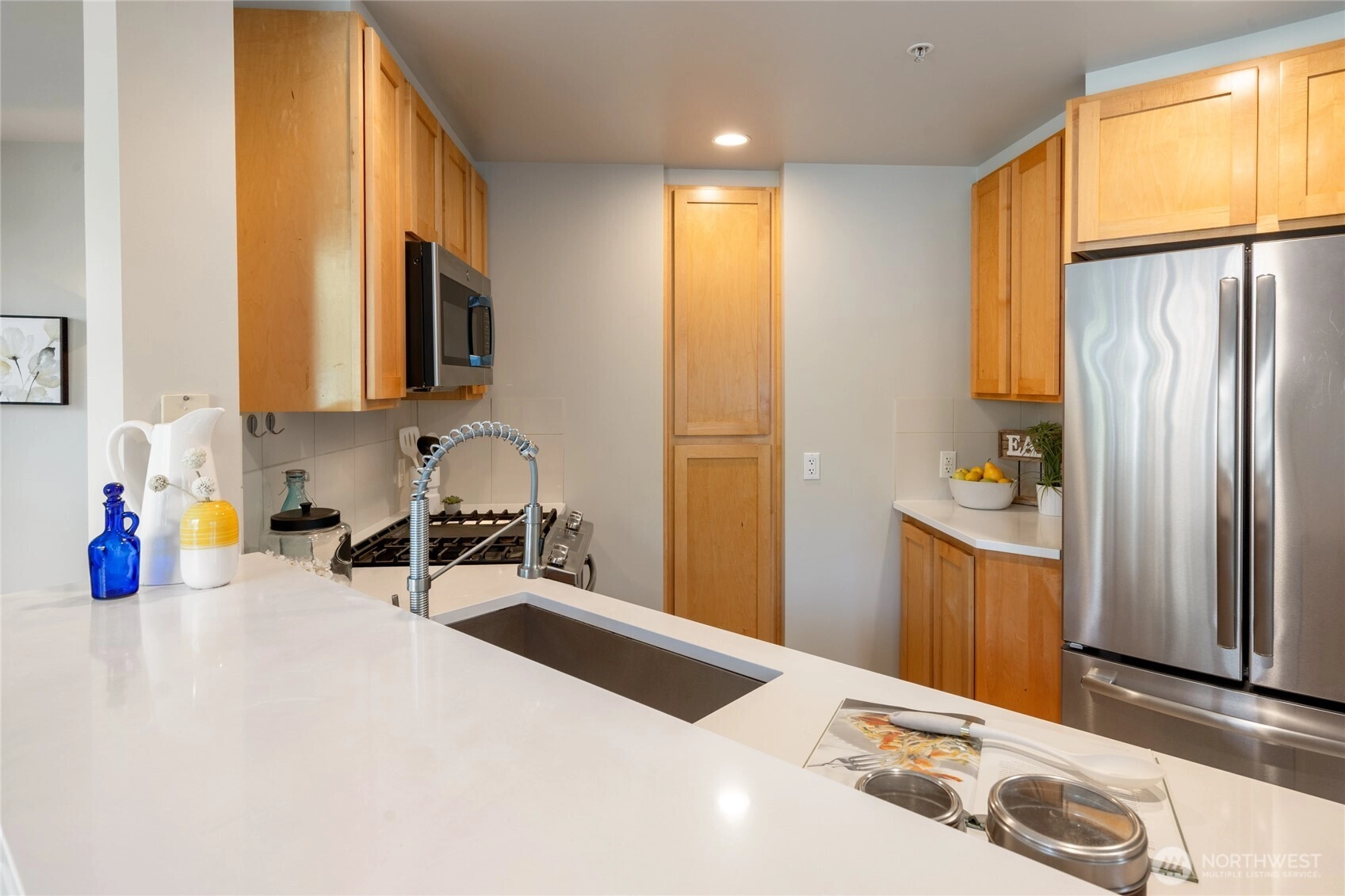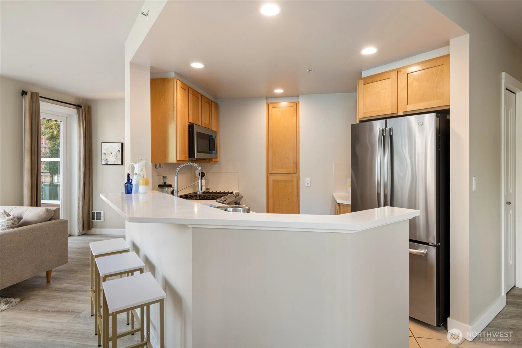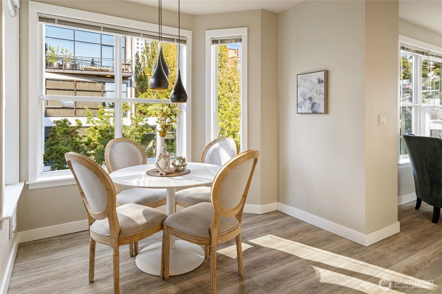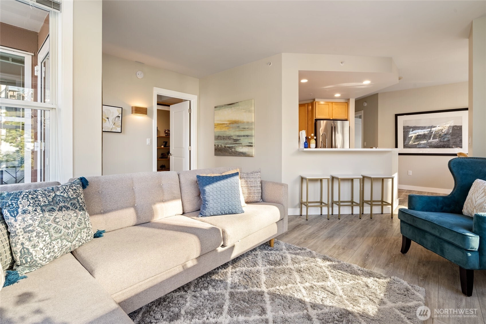 Bask in sunlight, sea breeze & stunning views from this one-of-a-kind unit at The Vine! Savor life's sweetest moments from the rare, private 660sqft terrace overlooking Elliott Bay, downtown & the Olympics; a remarkable outdoor sanctuary! French doors seamlessly connect the terrace to the bright interior, boasting large corner windows, new LVP floors, fresh paint, a gas fireplace & a chef's kitchen w/ quartz counters & stainless appliances. The versatile layout features 2 bdrms & an office nook. Parking & storage too. Fantastic bldg amenities include a rooftop deck & lounge w/ breathtaking views, 24hr concierge, guest suites, a gym & more! Immerse yourself in the vibrant energy of the city, then unwind in the calm of your peaceful retreat.