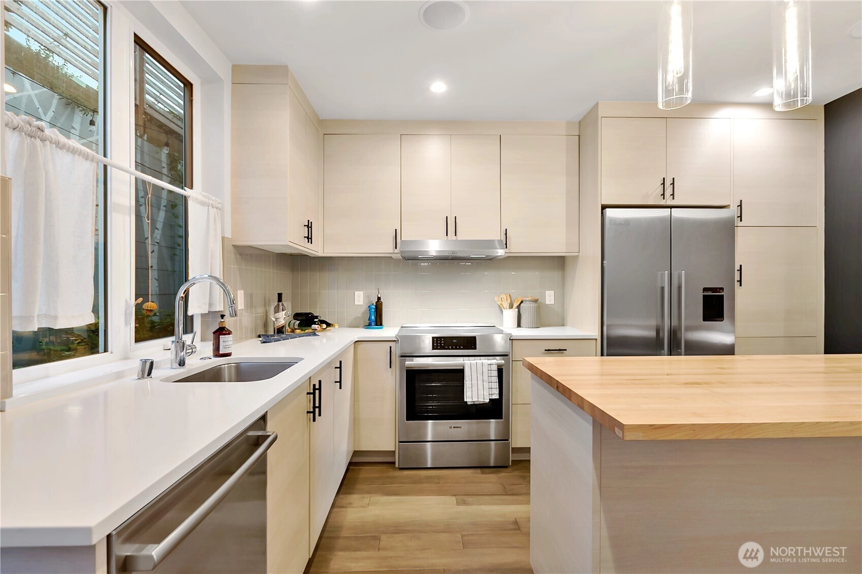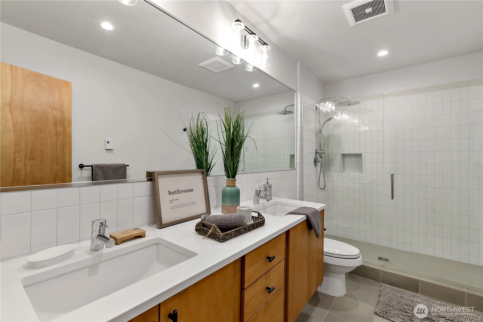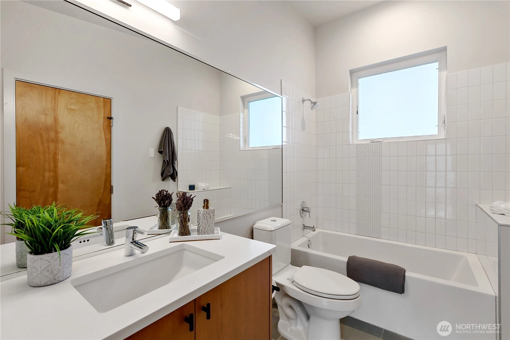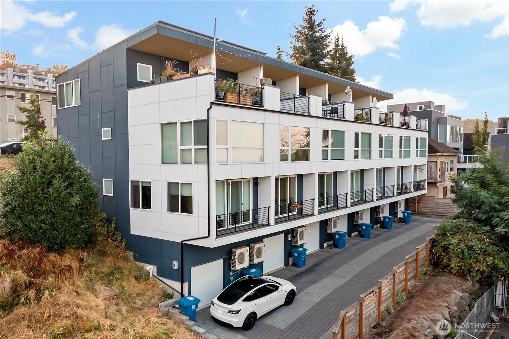 Modern, beautifully designed townhome in vibrant Queen Anne with sweeping west-facing views! This energy-efficient home features solar panels, EV charging garage, ERV fresh air system, multi-room speaker setup, and energy tracking with Sense. Live comfortably in this 3 bed, 2.25 bath spacious home with a rooftop deck. Built by a reputable green builder, with thoughtful details throughout. Easy access to 15th Ave! Extra storage via crawl space entry from garage. Close to Whole Foods, daycare, gym, and Interbay Golf Course. Easy drives to Ballard, Fremont, and SLU. Commute with ease to Expedia, Google, Facebook, and Amazon. Located in top-rated Seattle School District!