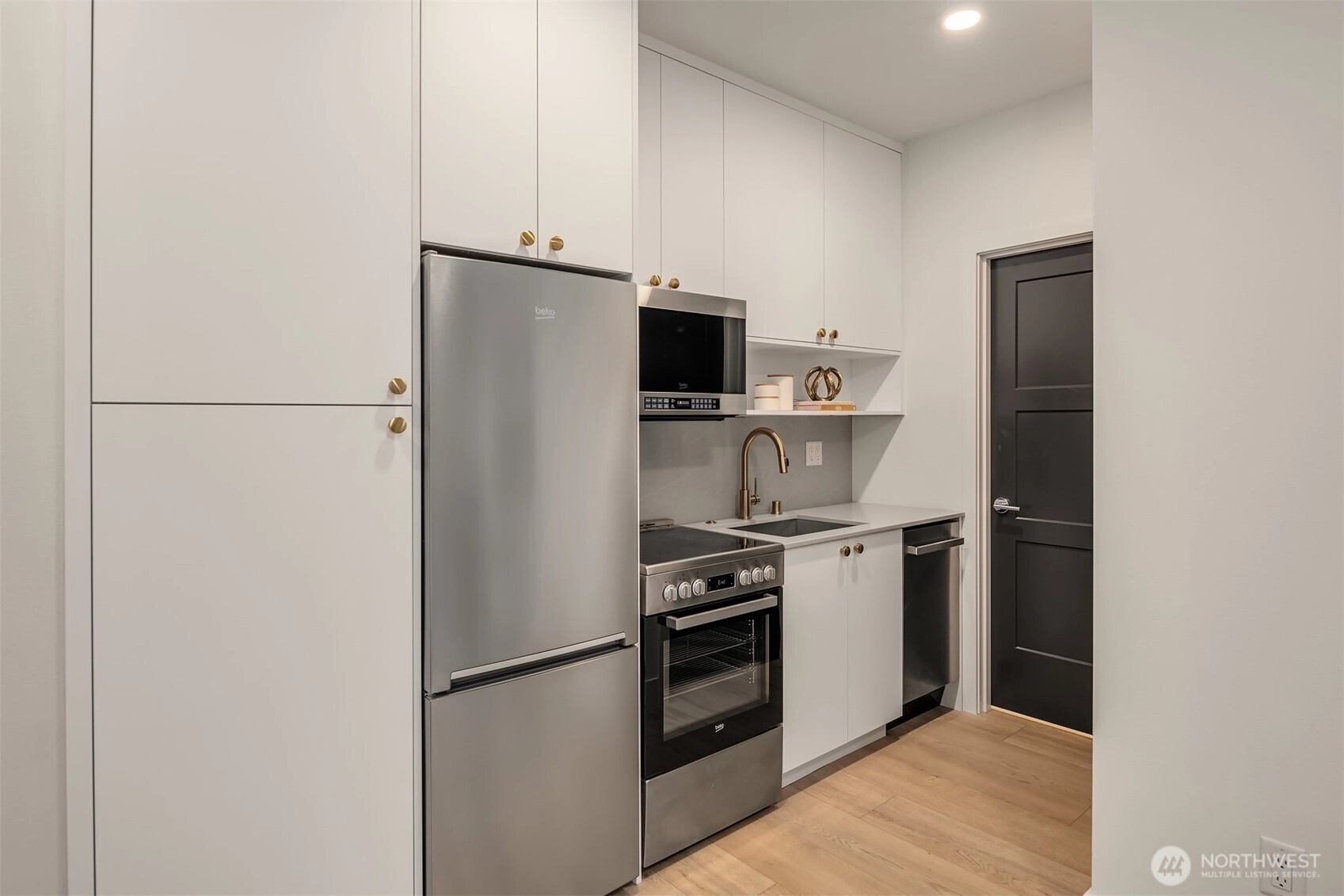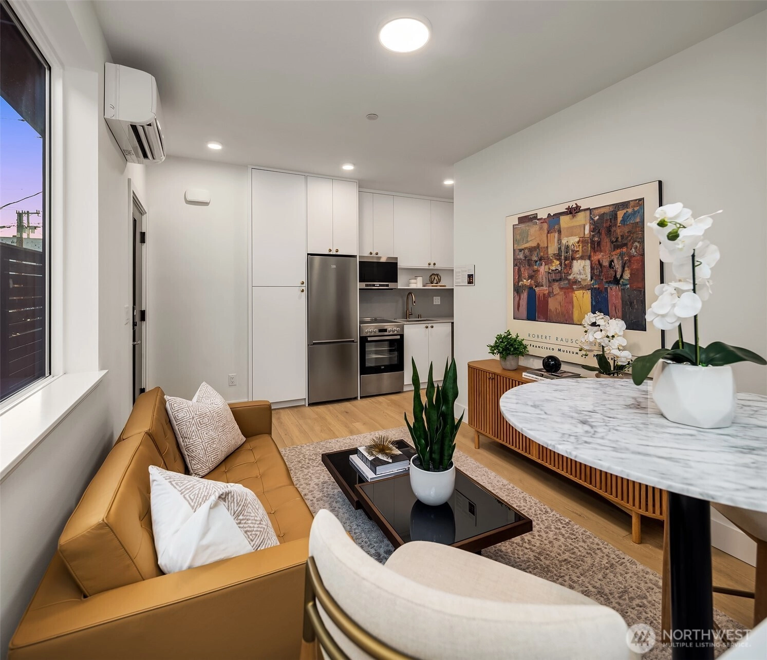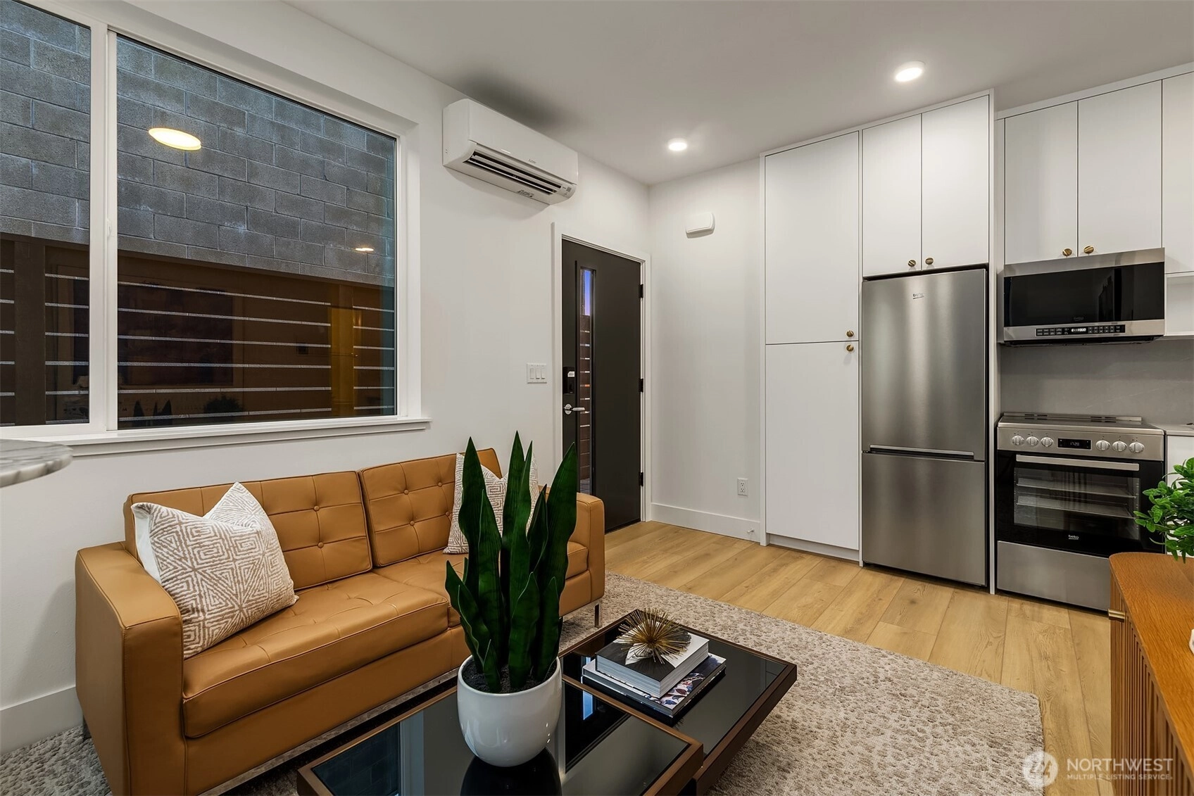 Acclaimed developer Halverson Design Build presents a classic New York City-style collection of residences, each featuring rare self-contained apartments on the first floors, ideally suited for rental, guest quarters, home offices, or live/work spaces. Modern design + a thoughtful layout highlight this sun-drenched Fremont townhome. Chef’s kitchen offers premier stainless appliances, quartz counters + designer finishes. Unwind in the luxurious primary bedroom suite with spa-like bath, which occupies the home’s entire top level. Step up to a private rooftop deck, an urban oasis with mesmerizing views + great potential for entertaining. Vibrant, walkable neighborhood with great parks + dining.
