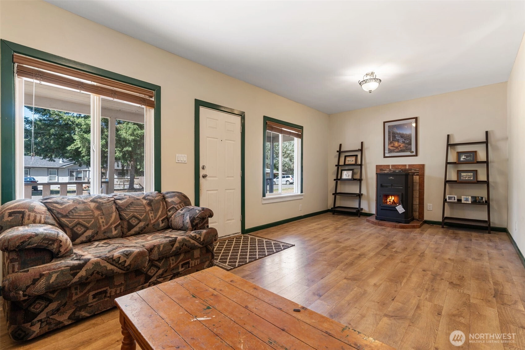 Charming 2-bedroom, 1-bath home situated on a spacious 12,197 sq. ft. lot in the heart of Vader. Step inside to a vaulted-ceiling living room with a cozy pellet stove, creating the perfect gathering space. Enjoy relaxing mornings on the covered front deck or afternoons in the fully fenced yard, offering room for gardening, pets, or play. A wonderful blend of comfort and outdoor space, ready to welcome you home. Conveniently located just minutes from I-5, this home offers easy access between Portland and Seattle. Come enjoy the charm of this quiet community and make this home your own.