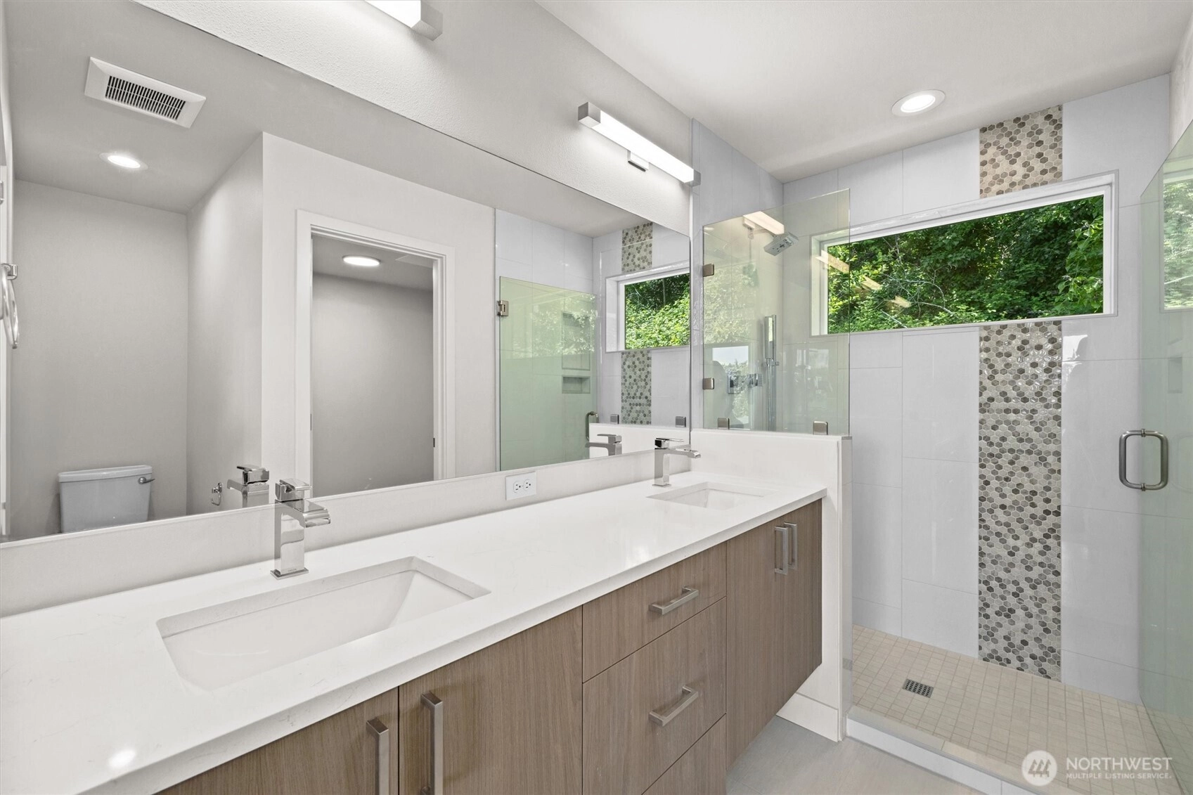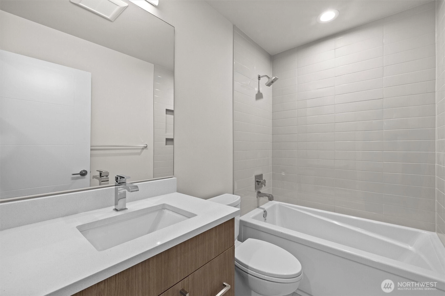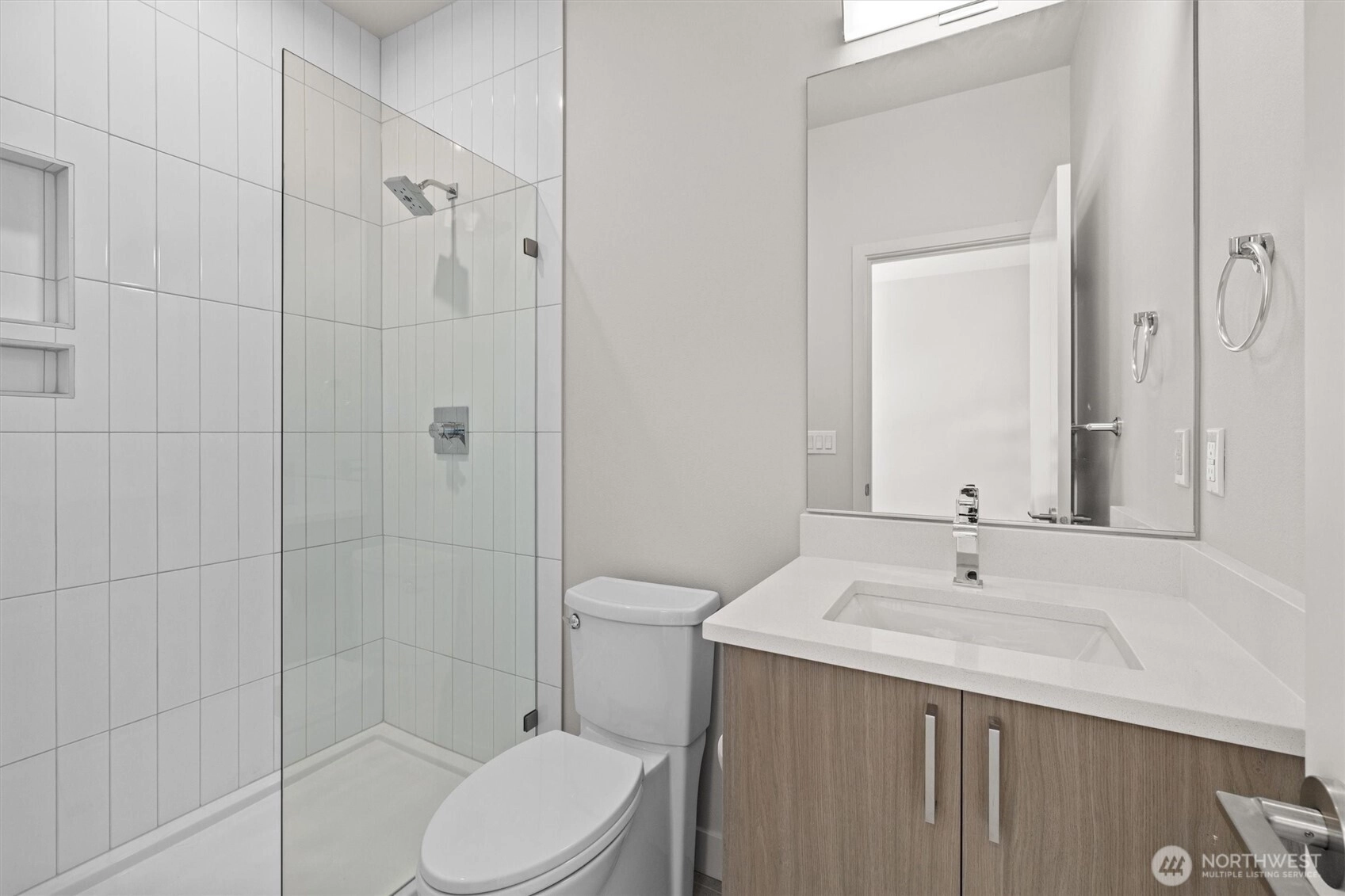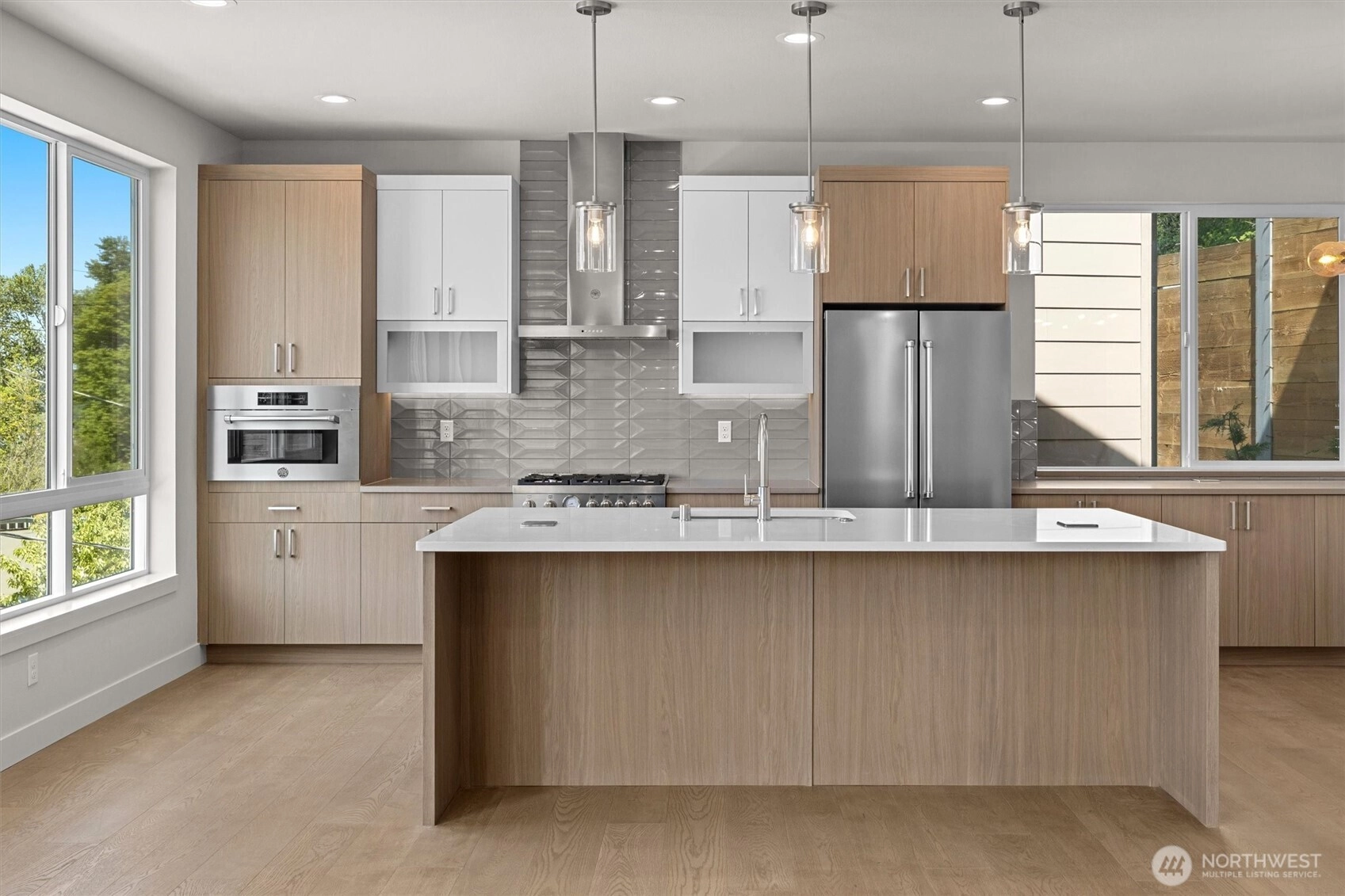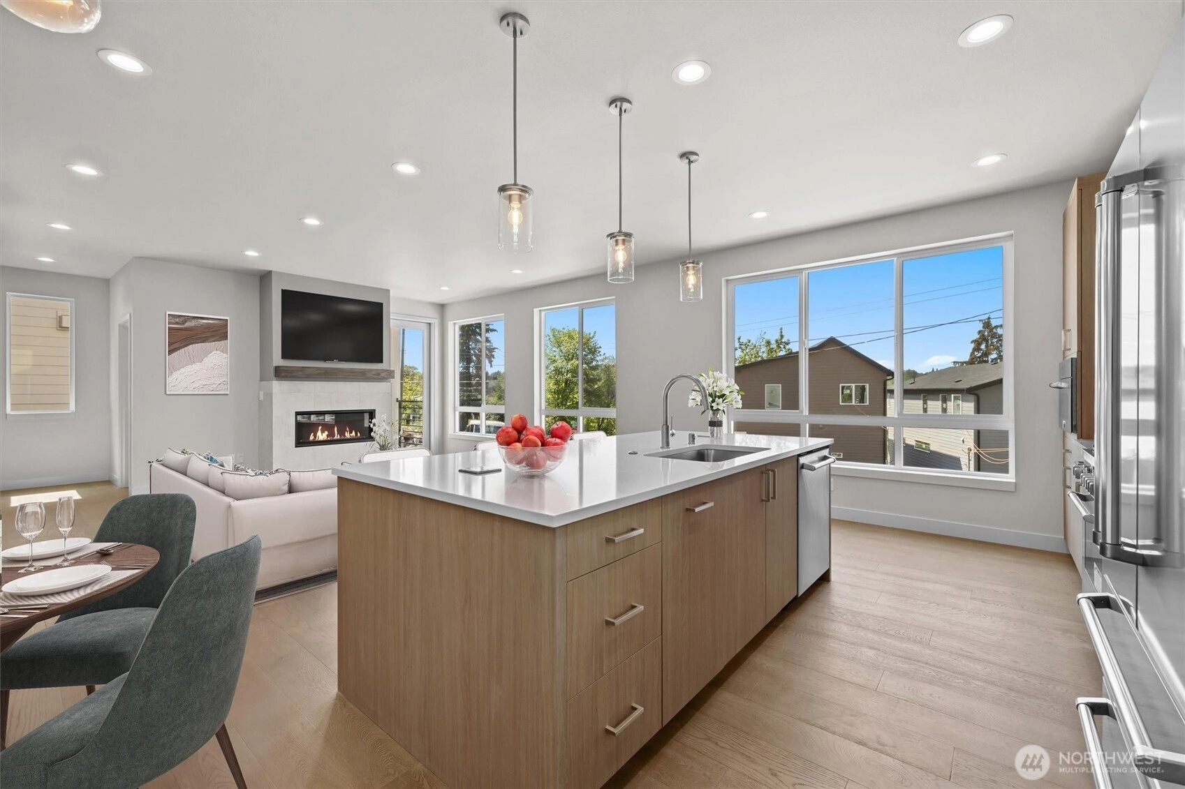 Welcome to Youngstown Reserve a premier community of luxury new construction homes! At the entry level you will find a guest room ensuite with 3/4 bath. Head upstairs to your great room where there is plenty of space for cooking alongside friends in the beautifully appointed kitchen w/European cabinetry, quartz counters, & high end appliances. You'll appreciate the designated dining area, living room with fireplace & the covered deck perfect for your BBQ. The spacious primary has lovely golf course views & features 5 piece bath with soaking tub, large shower & walk in closet. Highlights: gas furnace & forced air & mini split A/C, tankless H2O & 1 car garage. 10 minutes to DT Seattle and 5 minutes to Alki!