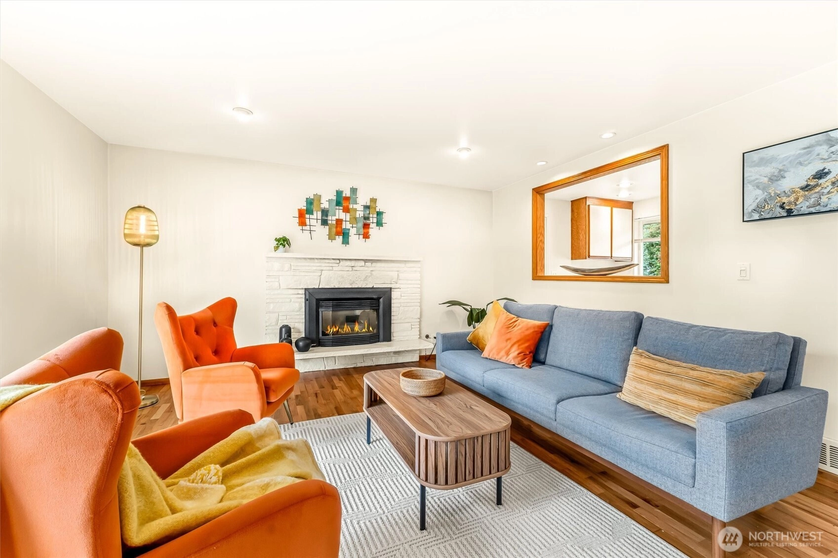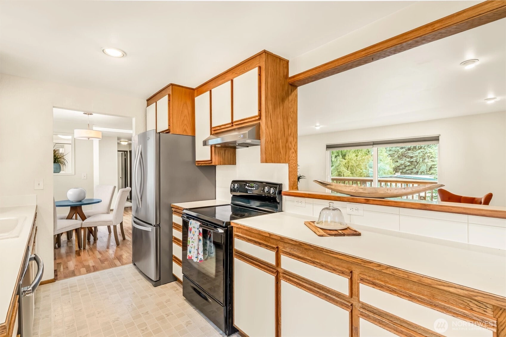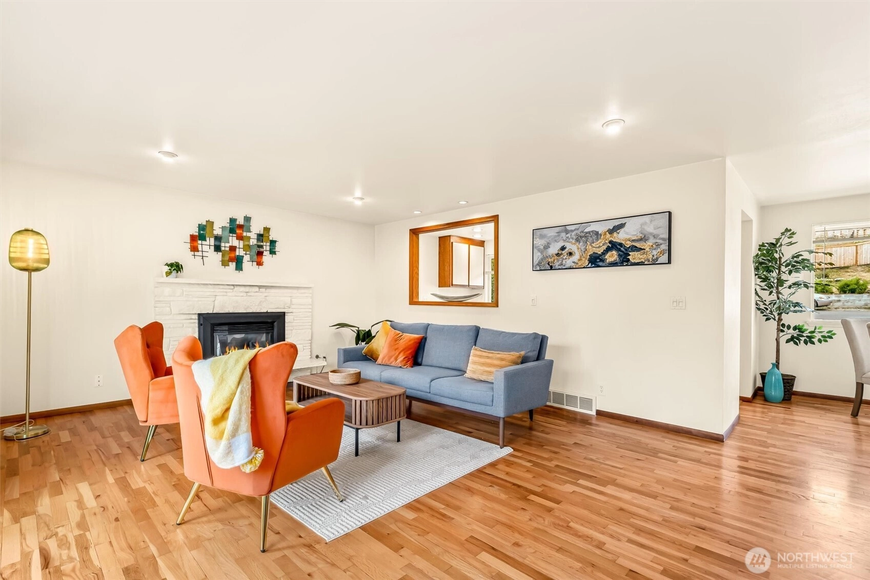 This lovely daylight rambler is pre-inspected and ready to move in. Located on a desirable corner lot with south-facing sun exposure. It features a bright skylight entry and original hardwood floors throughout. The kitchen includes an eating area, and the large living room has a gas fireplace and a view of the spacious backyard and fruit trees. Lower level could be readily converted into a MIL residence and features an expansive recreation room, a three-quarters bathroom. Don't miss the fourth bedroom (or would you use it as an office?). This comfortable home also includes a spacious double garage and a workspace, along with ample parking in the driveway. The rear deck offers a large entertainment area, a private fully fenced yard.