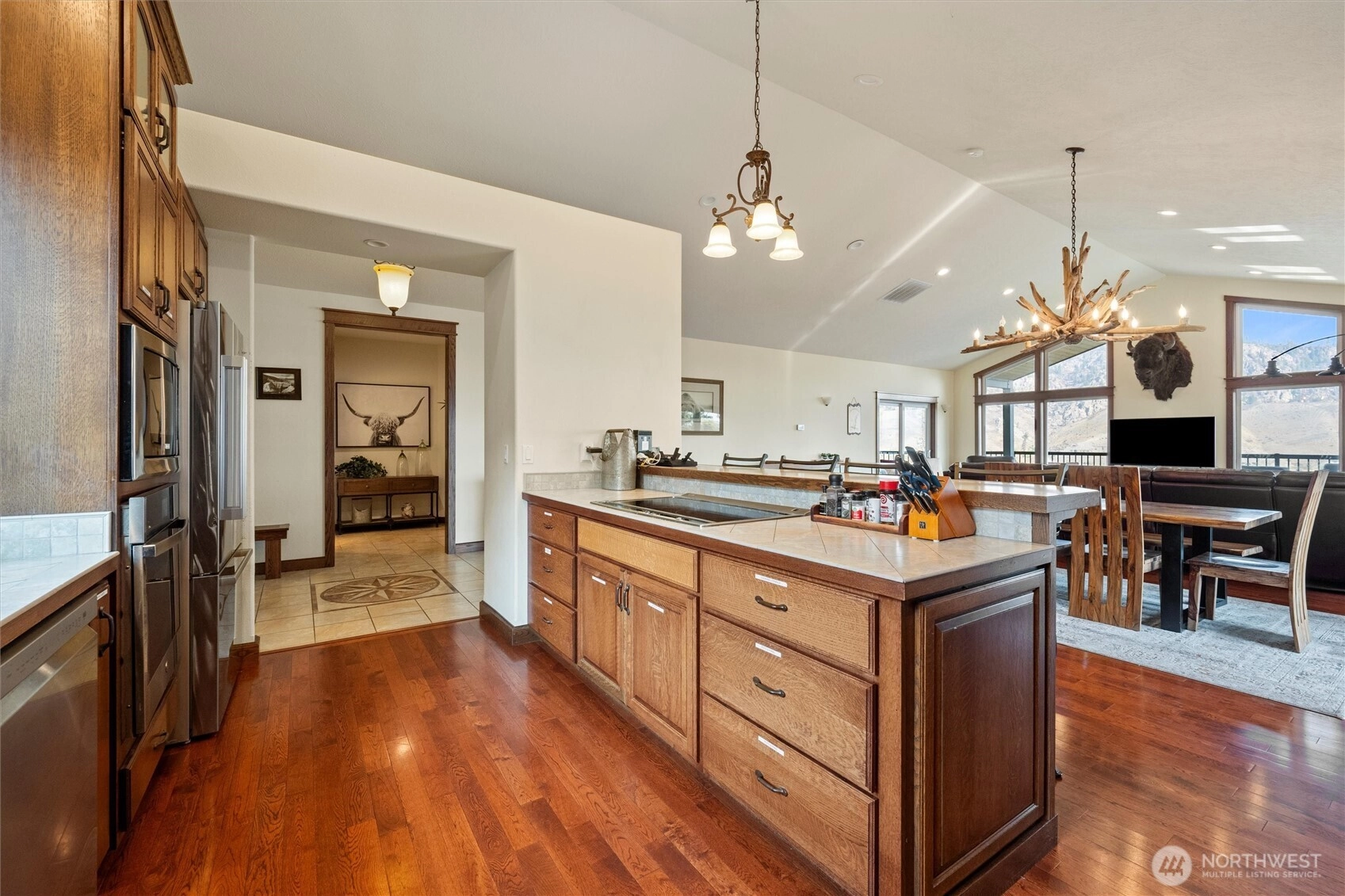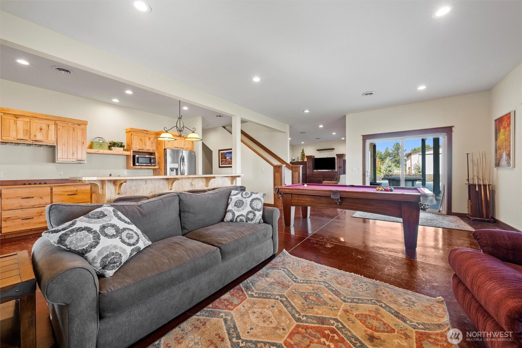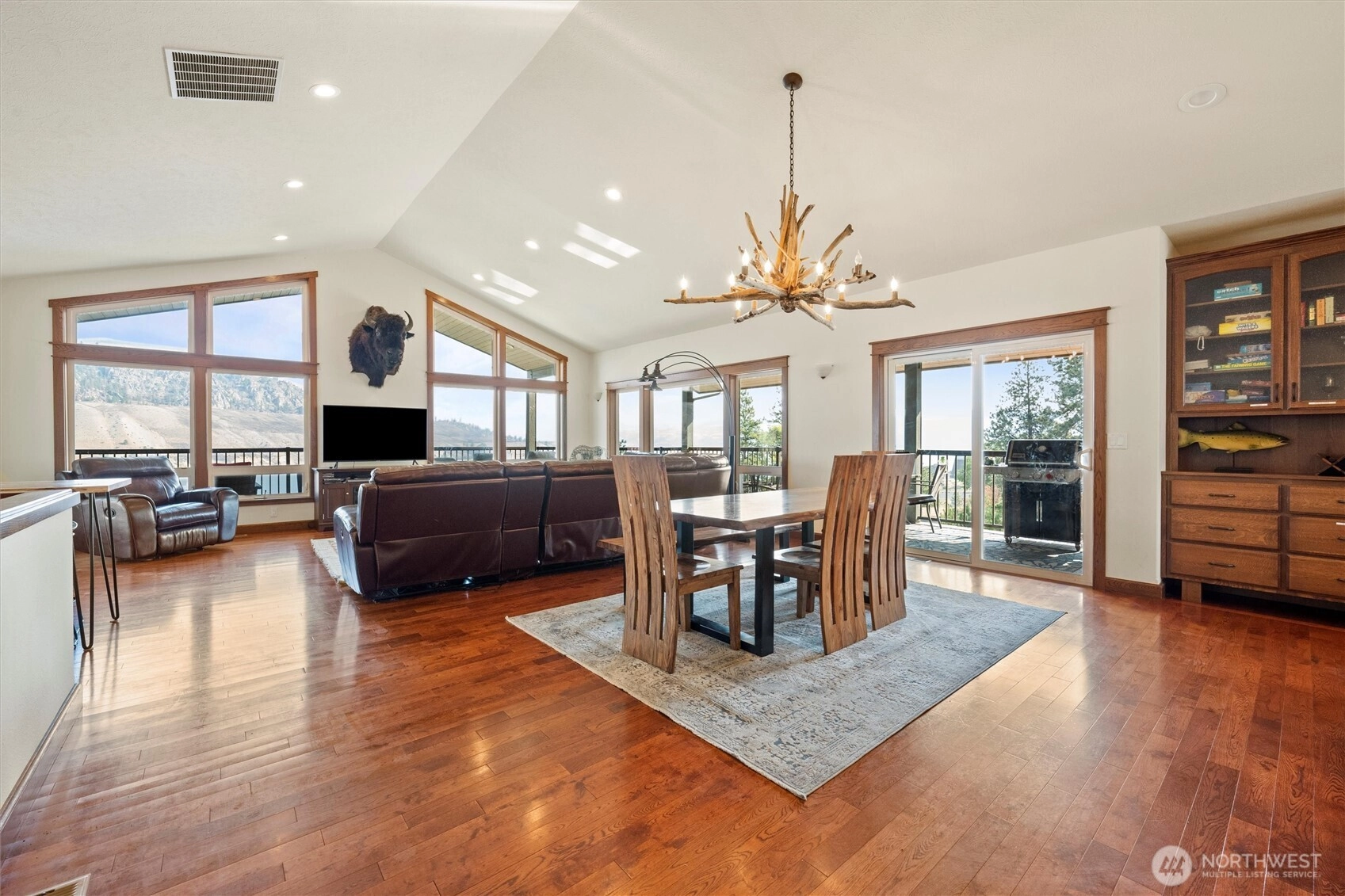 Set along a premier stretch of Lake Roosevelt, this 3700+/-sq ft home offers a rare combination of space, versatility, & breathtaking scenery. Walls of windows frame the views of the water, creating a seamless connection of indoor comfort & natural beauty just beyond your doorstep. The main house is designed w/expansive gathering spaces, open kitchens, & a primary suite that feels like a private retreat. 900+/-sq ft ADU adds great flexibility for guests or rental income. Outdoors, the large covered decks invite you to relax or entertain while watching the river flow by. Grab a paddle for the sports court, jump in the hot tub, sit by the fire, or practice on the putting green. Detached 40x60 shop w/drive through doors. Very successful VRBO!