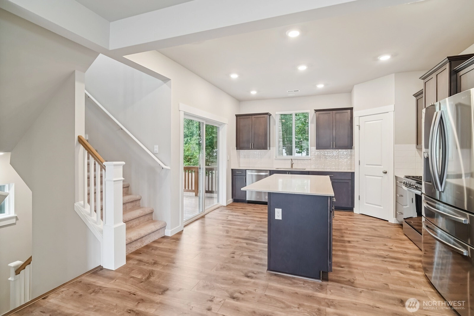 Beautiful north-facing 2022 home in the sought-after Lakeside Loop community! This well-designed 3-story, 4-bedroom, 3.5-bath home offers a spacious main floor with a bright living room, open kitchen with island, and dining area—plus a versatile bedroom ideal for guests or a home office. Upstairs, enjoy a luxurious primary suite with an attached bath and walk-in closet, along with two additional bedrooms and a full bathroom. The lower level features a generous bonus/recreation room and a convenient half bath—perfect for movie nights or game time. Step outside to enjoy year-round outdoor dining and entertaining with a covered deck and patio. Your home is calling!! Come and see!