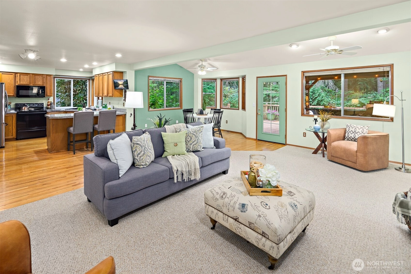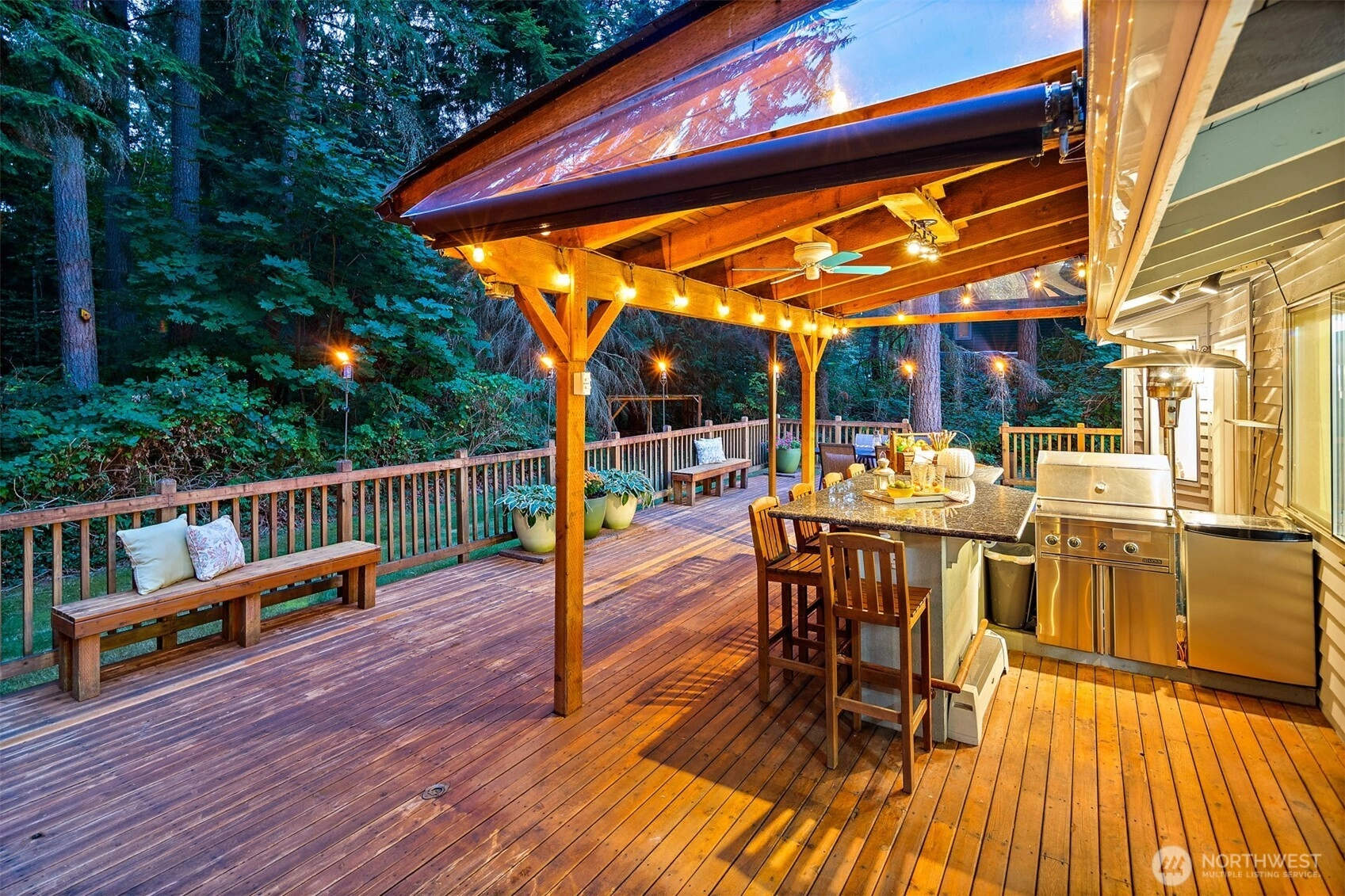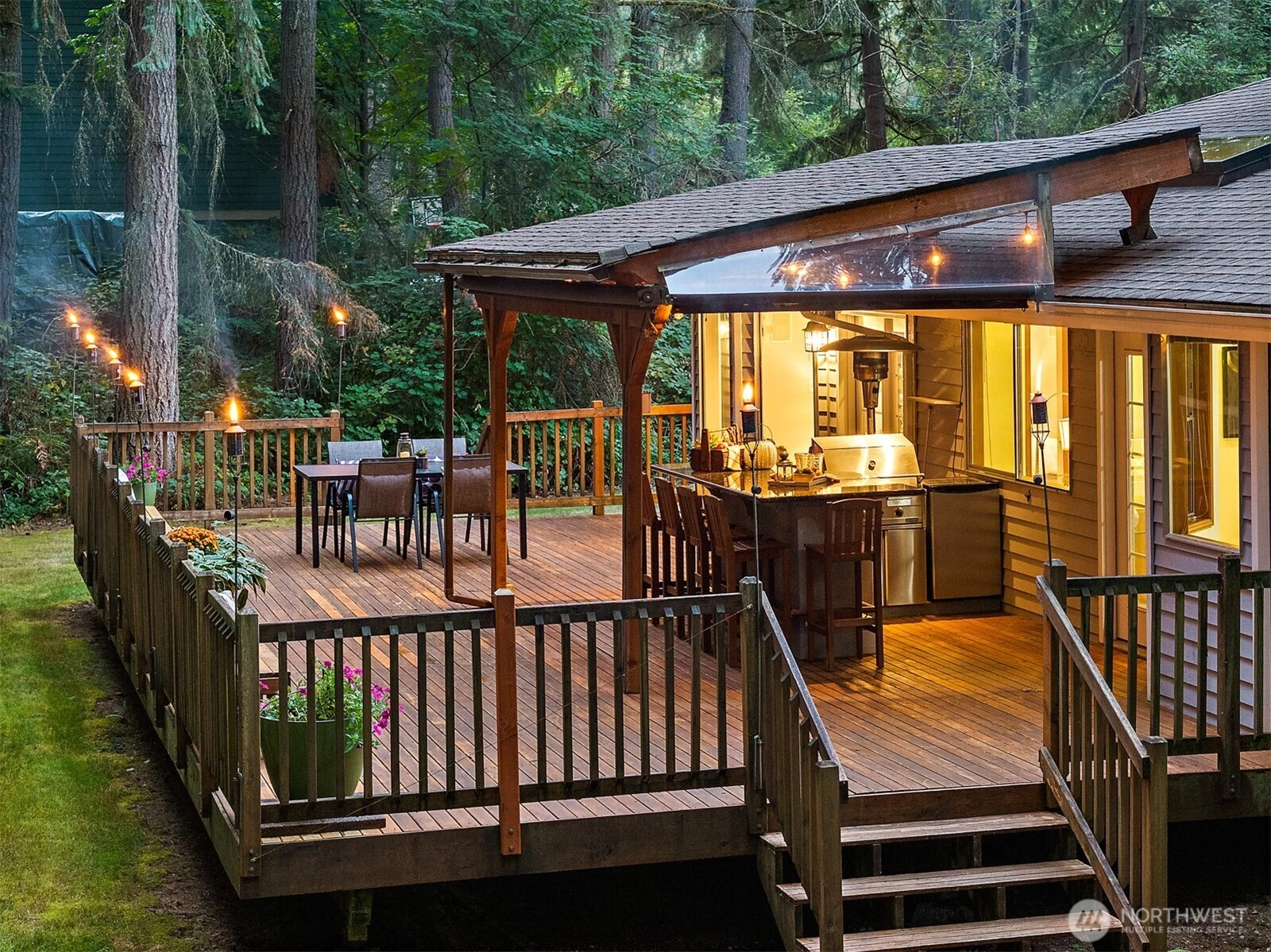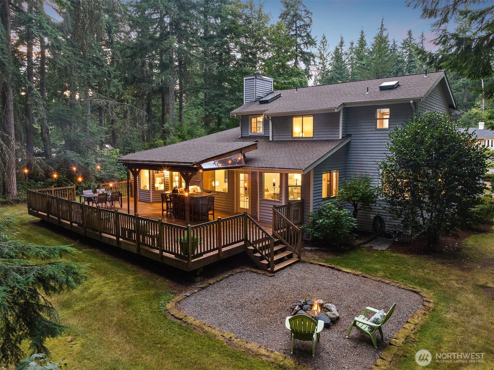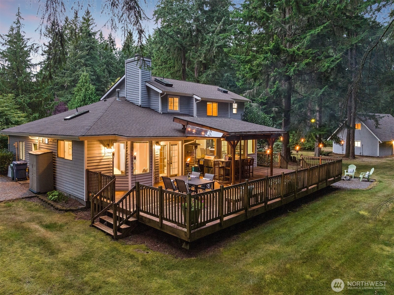 Welcome to your storybook escape at the end of a quiet Redmond cul-de-sac & just minutes to Microsoft! This meticulously maintained 2,524 SF home on a private 1-ac lot features 3 bedrms, an office w/closet space & a luxurious main-level primary suite. The kitchen flows into a spacious family rm & out to a large deck w/heated cabana, granite bar, fridge & built-in gas BBQ—perfect for entertaining. Enjoy RV pkg next to an attached garage, plus an 864 sqft detached shop & garage w/a 576 sqft loft—ideal for a studio or guest qtrs. New roof in 2020 & crawl space updates in 2025 offer peace of mind. Whether you're hosting gatherings or seeking a private & peaceful retreat, this property delivers with space, flexibility, & charm in equal measure.