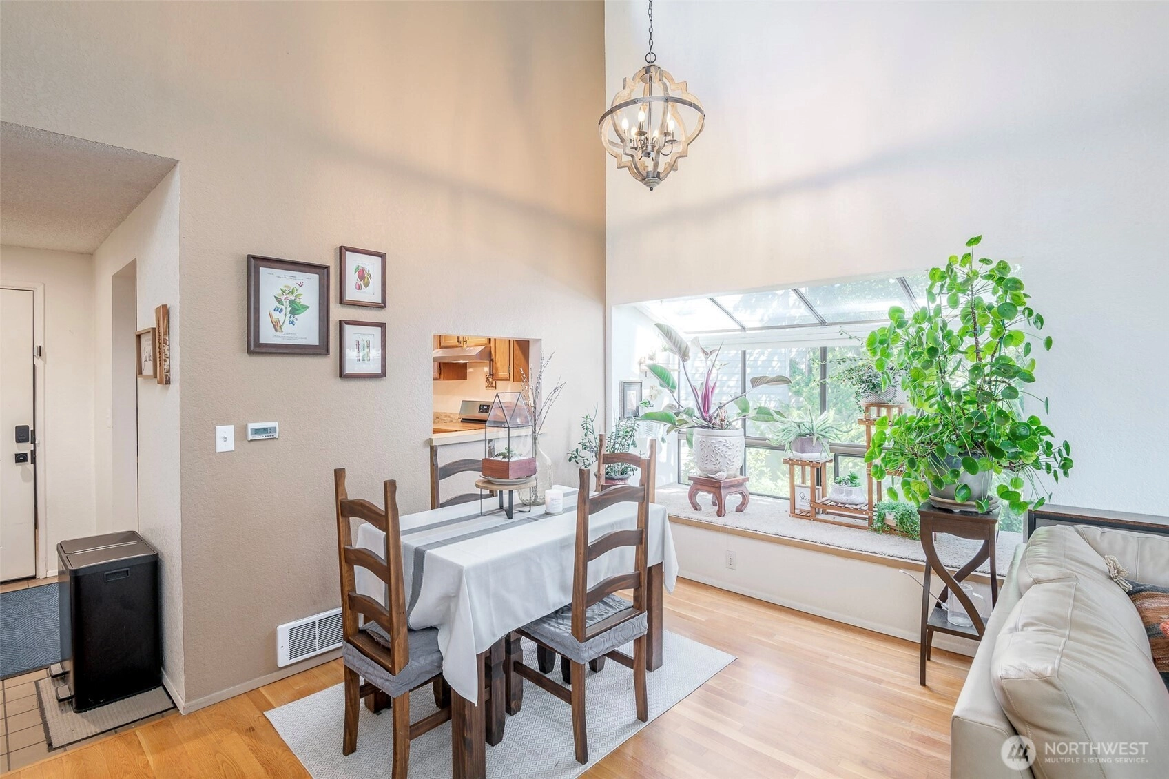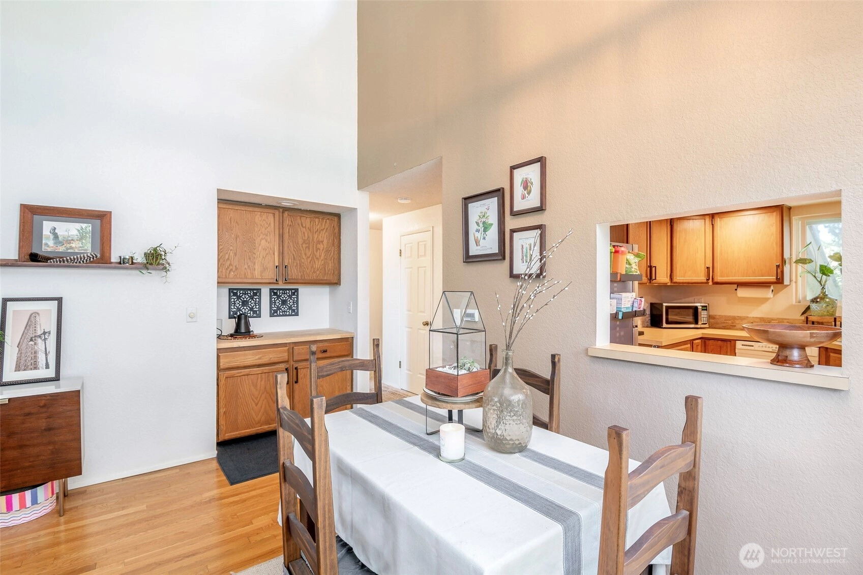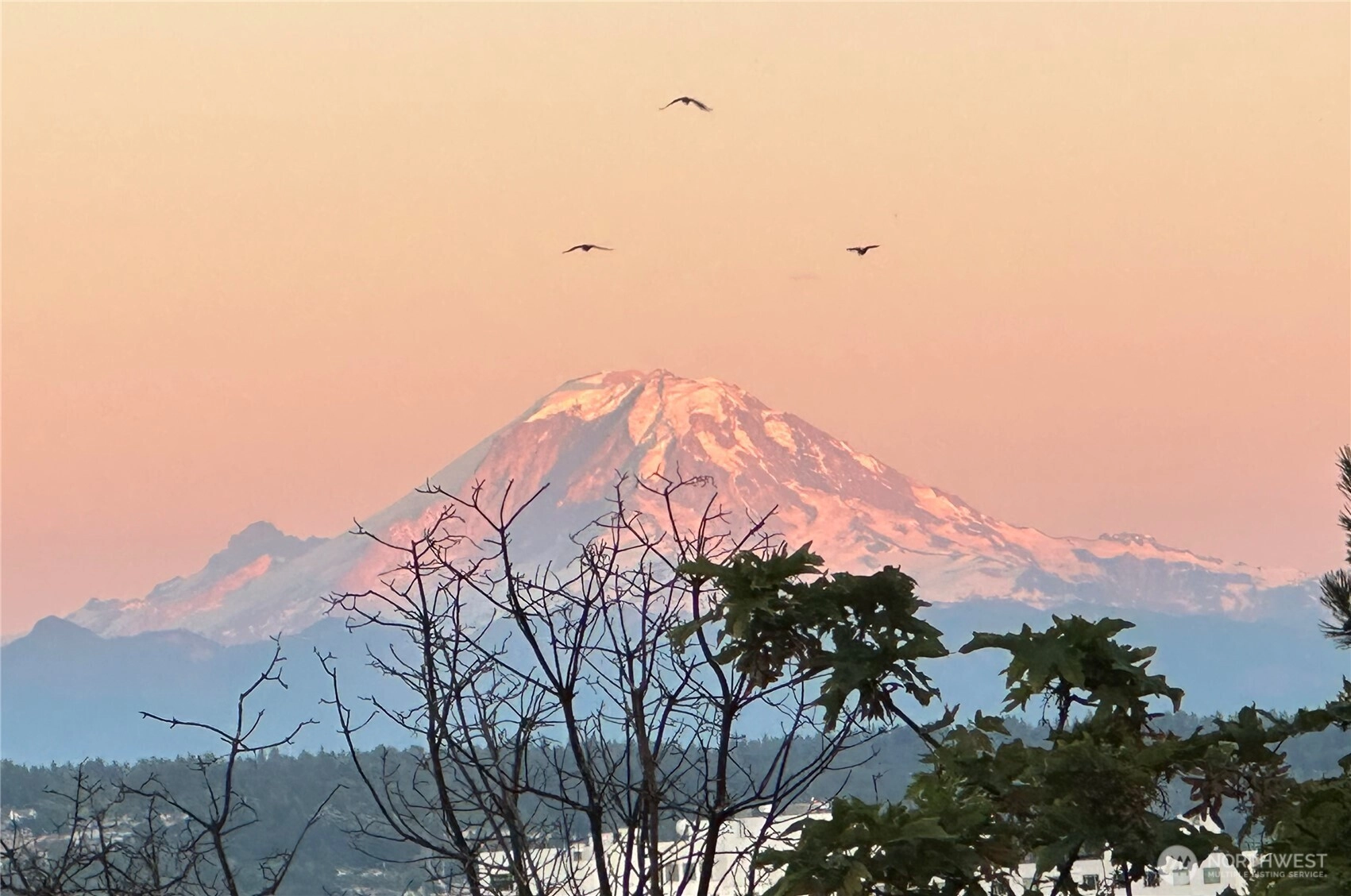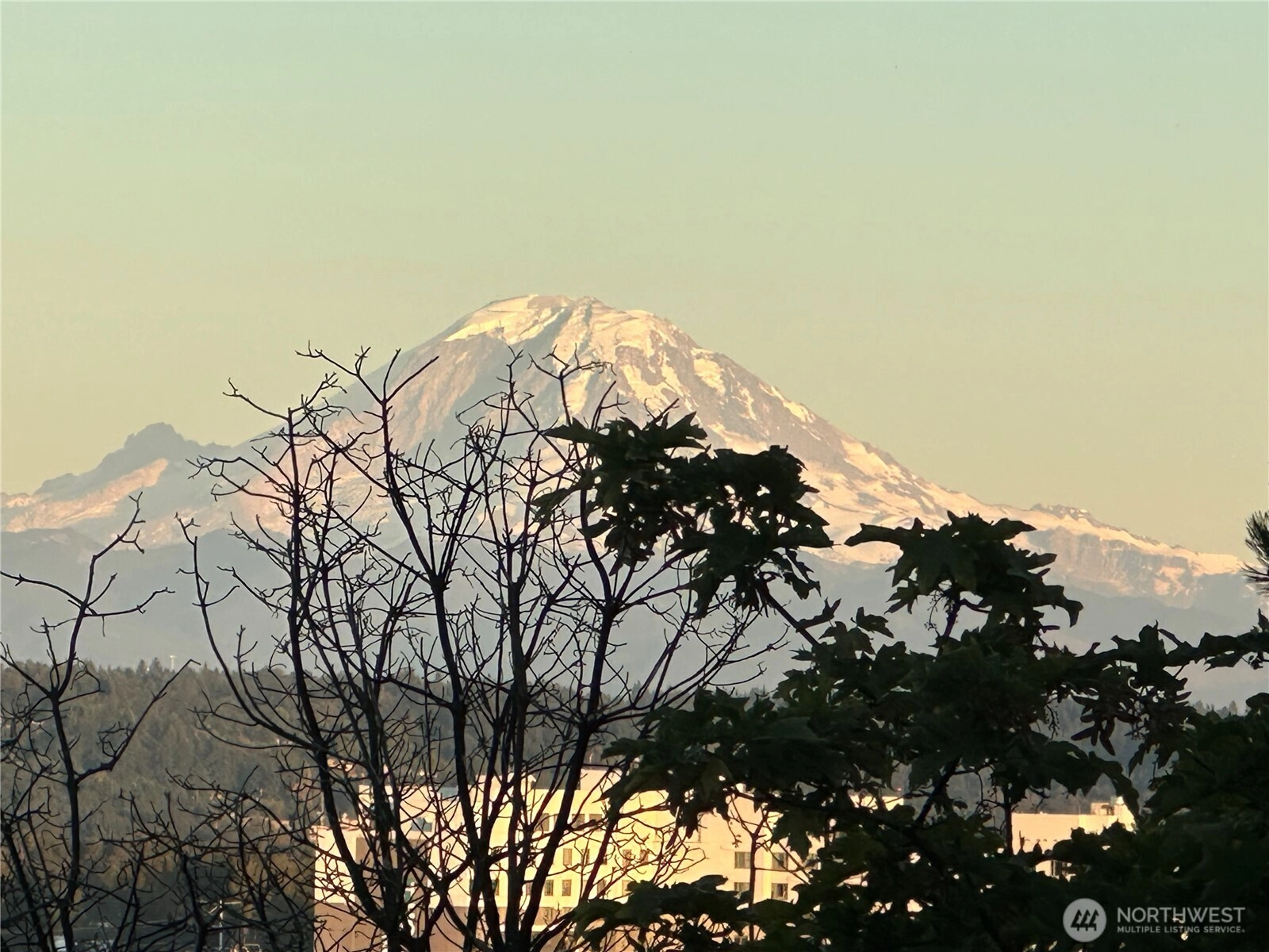 Perched on the third level of Sunwood Condominiums, this 1,098 sq. ft. 2-bedroom, 2-bath home offers privacy and unforgettable Mount Rainier views. The light-filled layout includes soaring ceilings throughout the living and dining room with two charming solarium nooks & a cozy fireplace, plus a spacious primary bedroom with ensuite bath. Step onto your private balcony to take in sweeping vistas, or enjoy the unbeatable convenience of being just minutes to Seattle, freeways, and Westfield Shopping Center. As a Sunwood Condominium resident, you can enjoy the cabana with a heated pool and tennis courts. Comfort, style, and views — all in one.