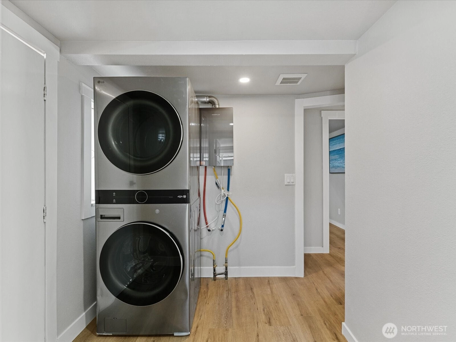 Step inside this beautifully remodeled home featuring brand-new LVP flooring, custom cabinetry, sleek quartz countertops, and stainless steel appliances. Fresh interior paint and updated lighting create a bright, modern feel throughout. A convenient washer and dryer are included, making this home truly turn-key. Enjoy outdoor living on the spacious back deck—perfect for entertaining or relaxing evenings. Freshly laid sod enhances the curb appeal out front. Ideally located near a park, with quick access to I-5, shopping, and dining, this home combines style, comfort, and convenience. Ask about the rate buy down for qualified buyers when using the preferred lender. Make this move in ready home yours today!