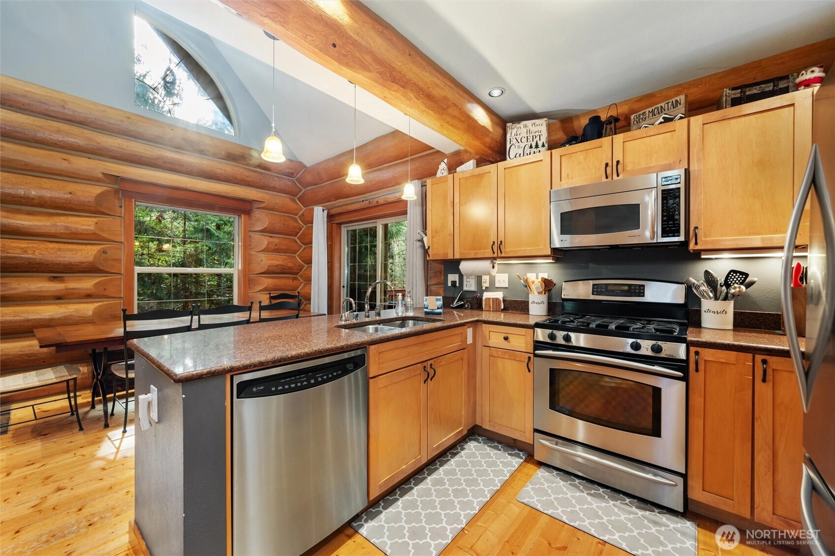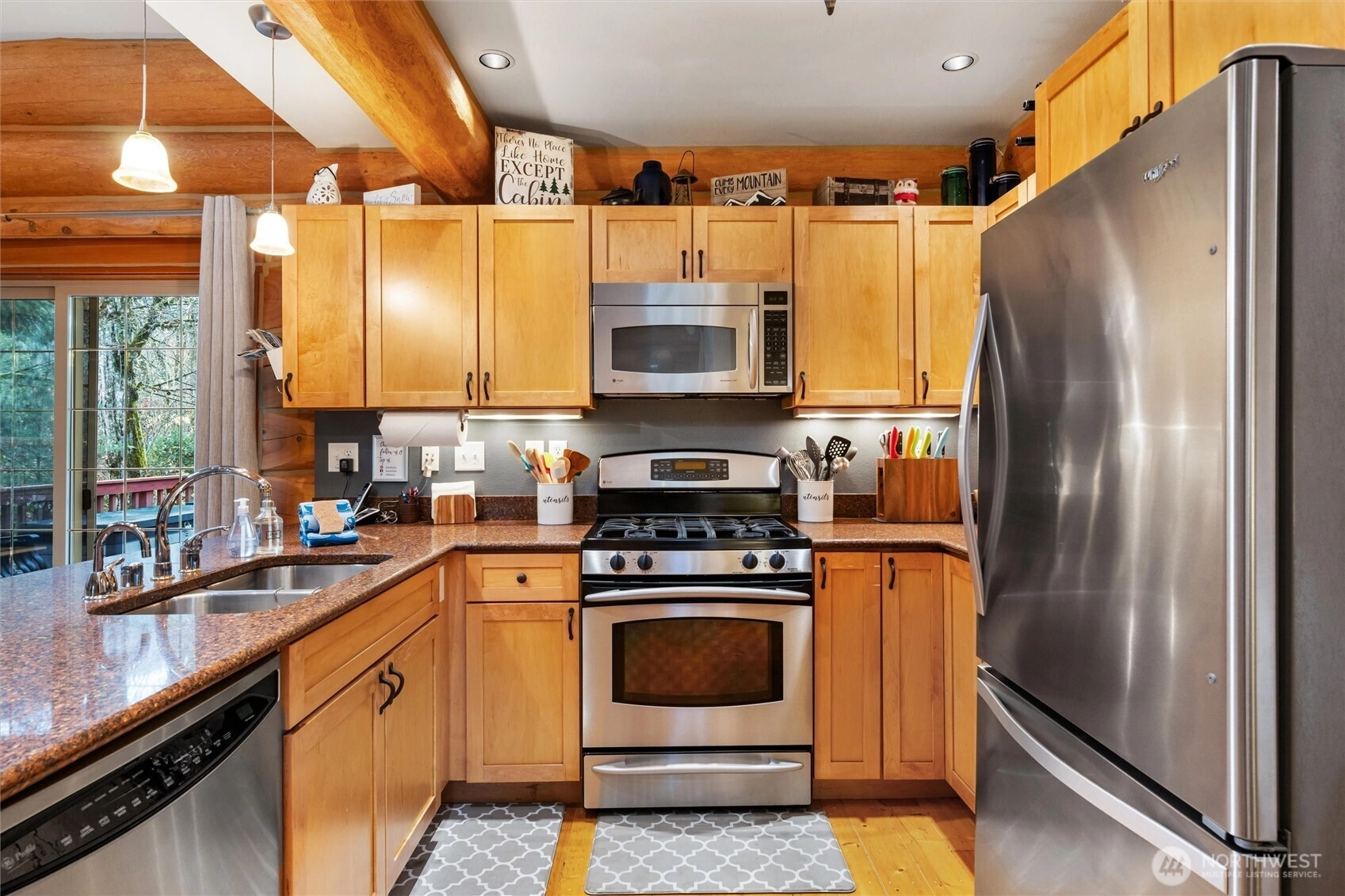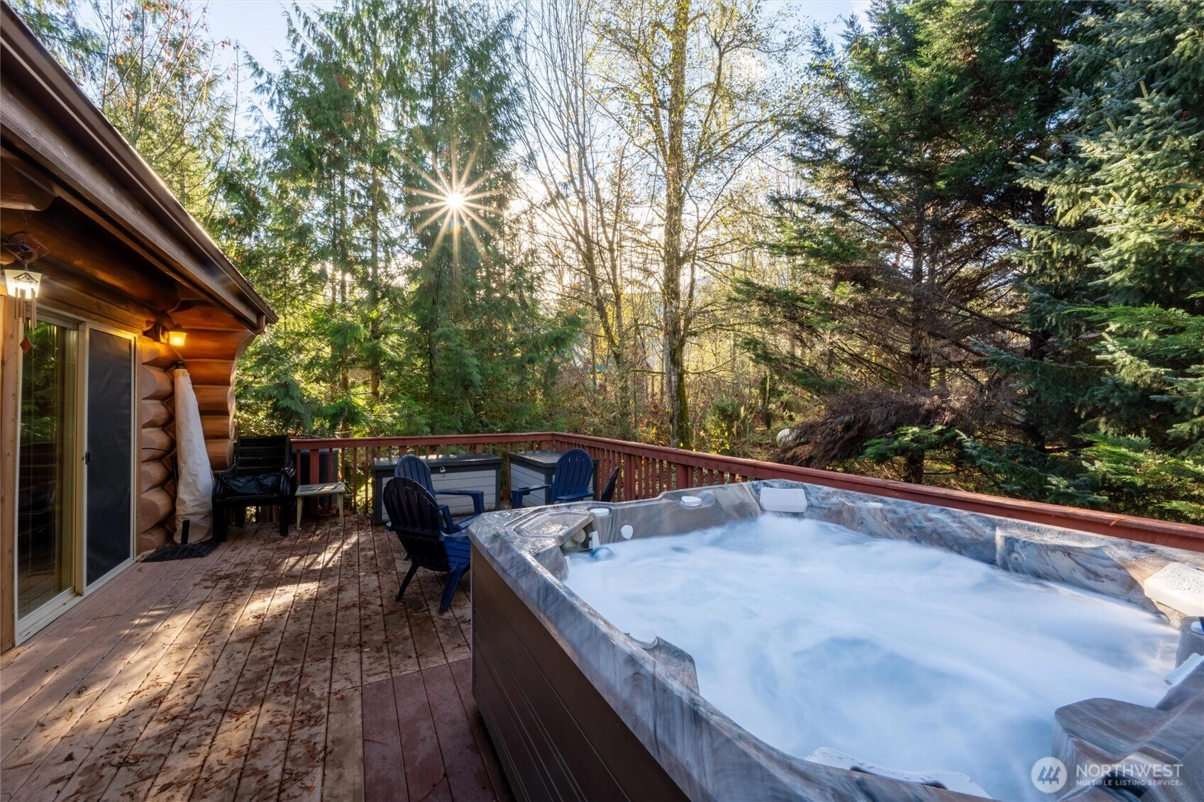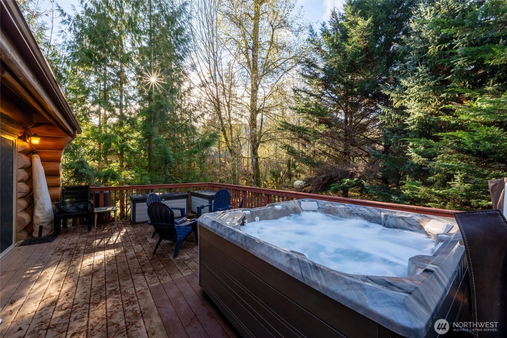 Gorgeous log home in Mount Baker Rim. This amazing log home has space for everyone. Relax on the main level in the spacious living room with vaulted ceiling & gas FP, open to dining room & kitchen with granite countertops & SS appliances. Bedroom, full bath & utility room also on main level. Private deck off dining area with hot tub to relax after a day on the mountain. Upstairs with primary bedroom & extra sleeping loft. Basement with expansive bonus room & gas fireplace. Heated garage & automatic generator. Gated community with pool, tennis courts, clubhouse, playground & more! You only need to bring your clothes this home is being sold fully furnished & turn key ready for your next adventure at Mount Baker. NEW high speed fiber internet