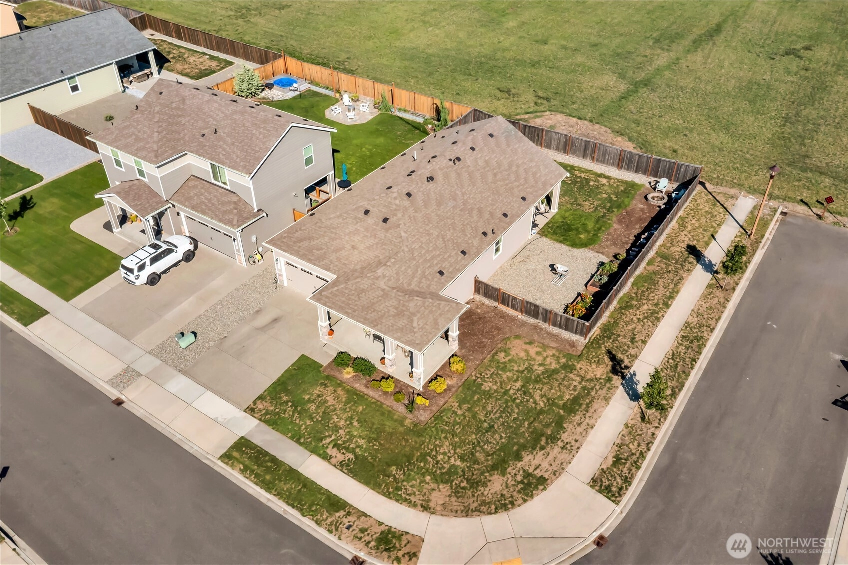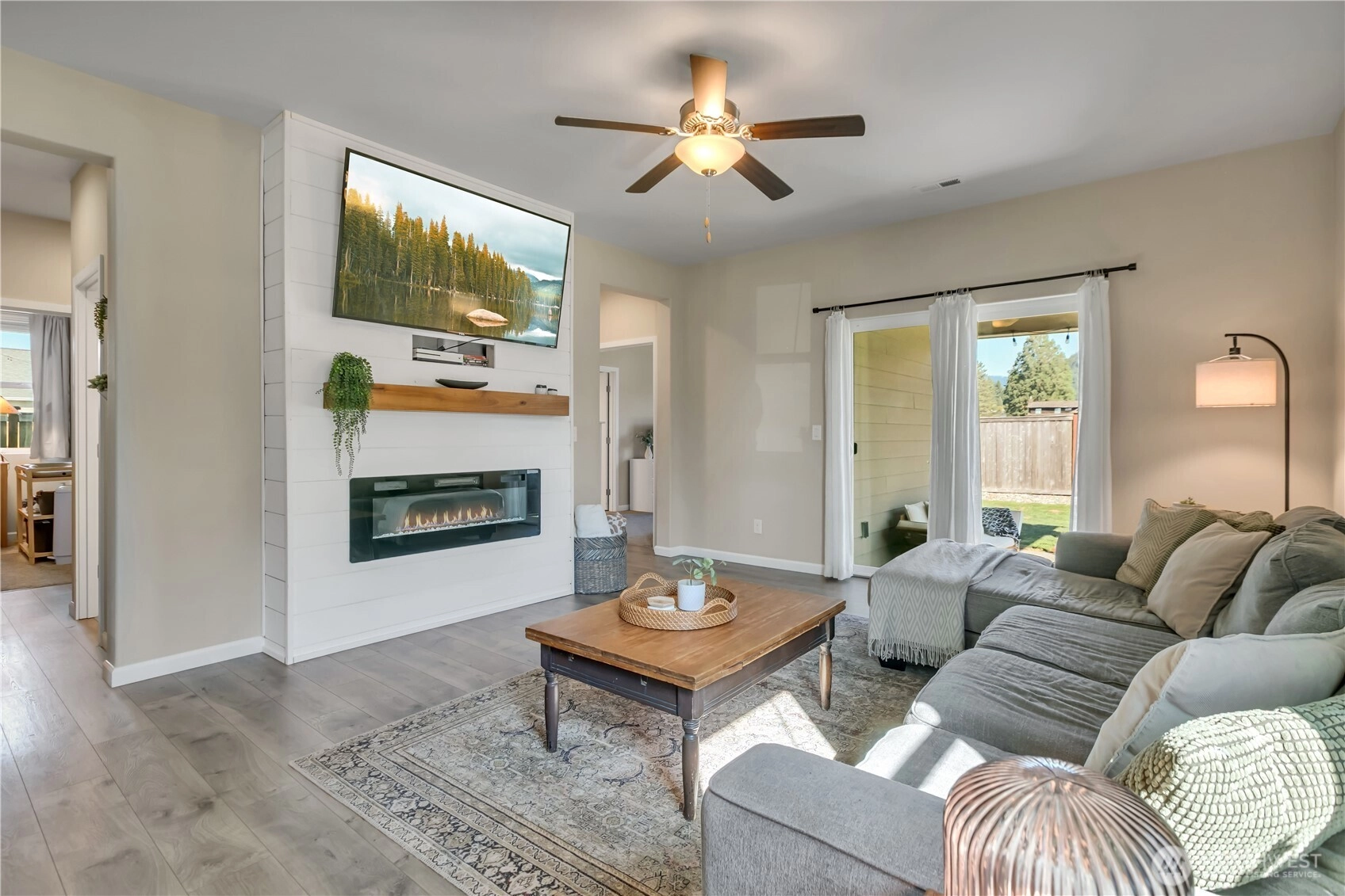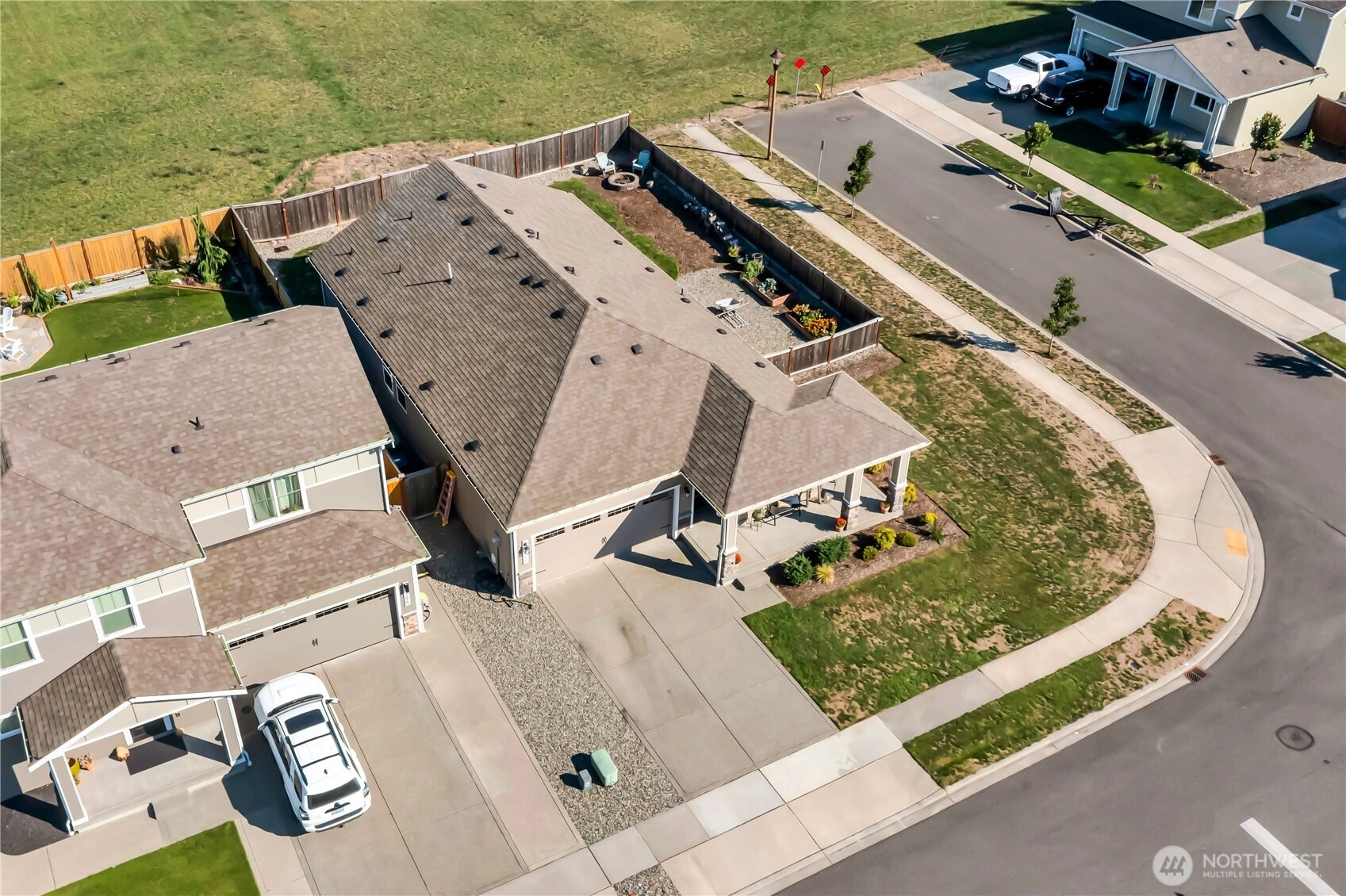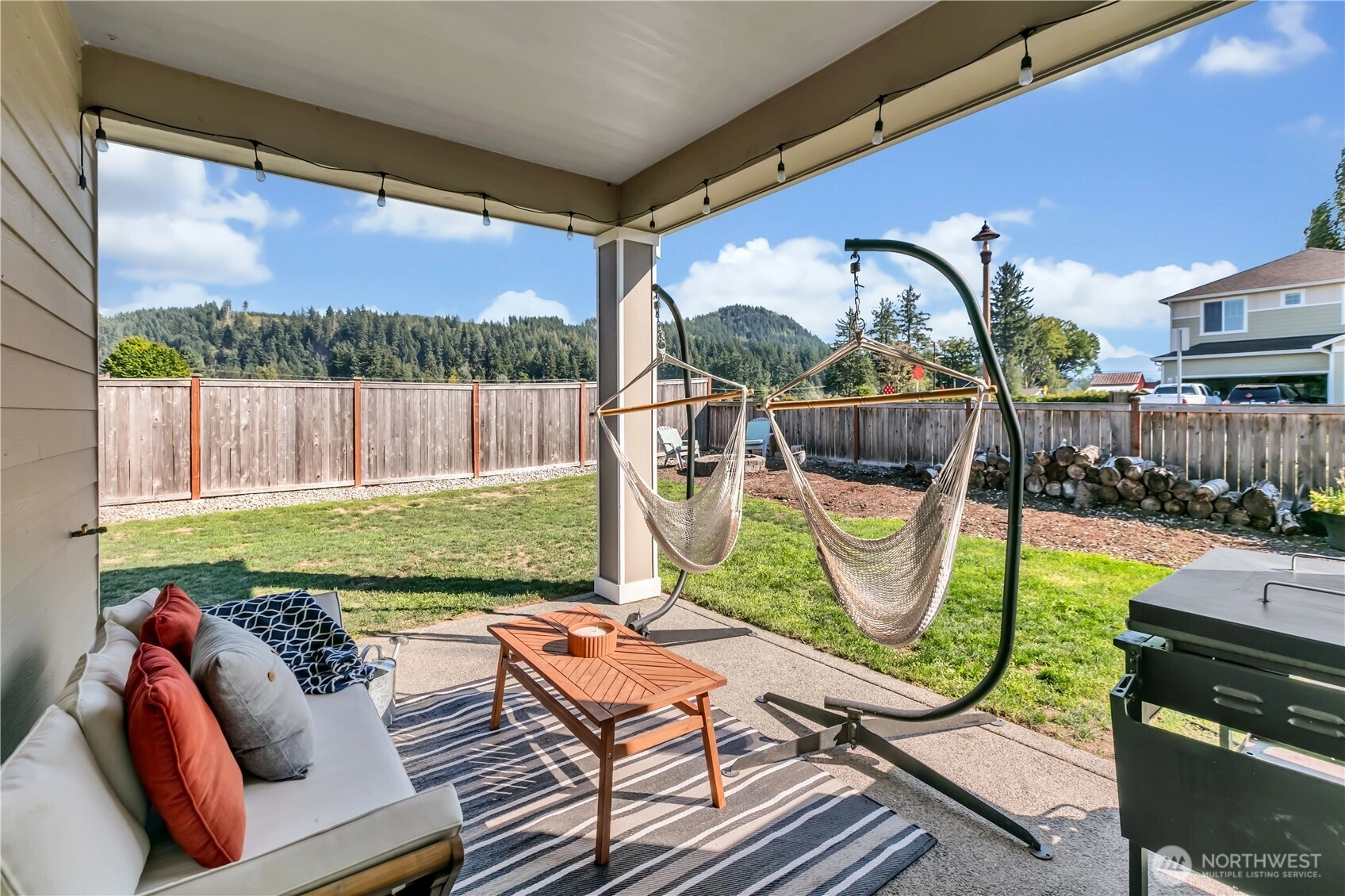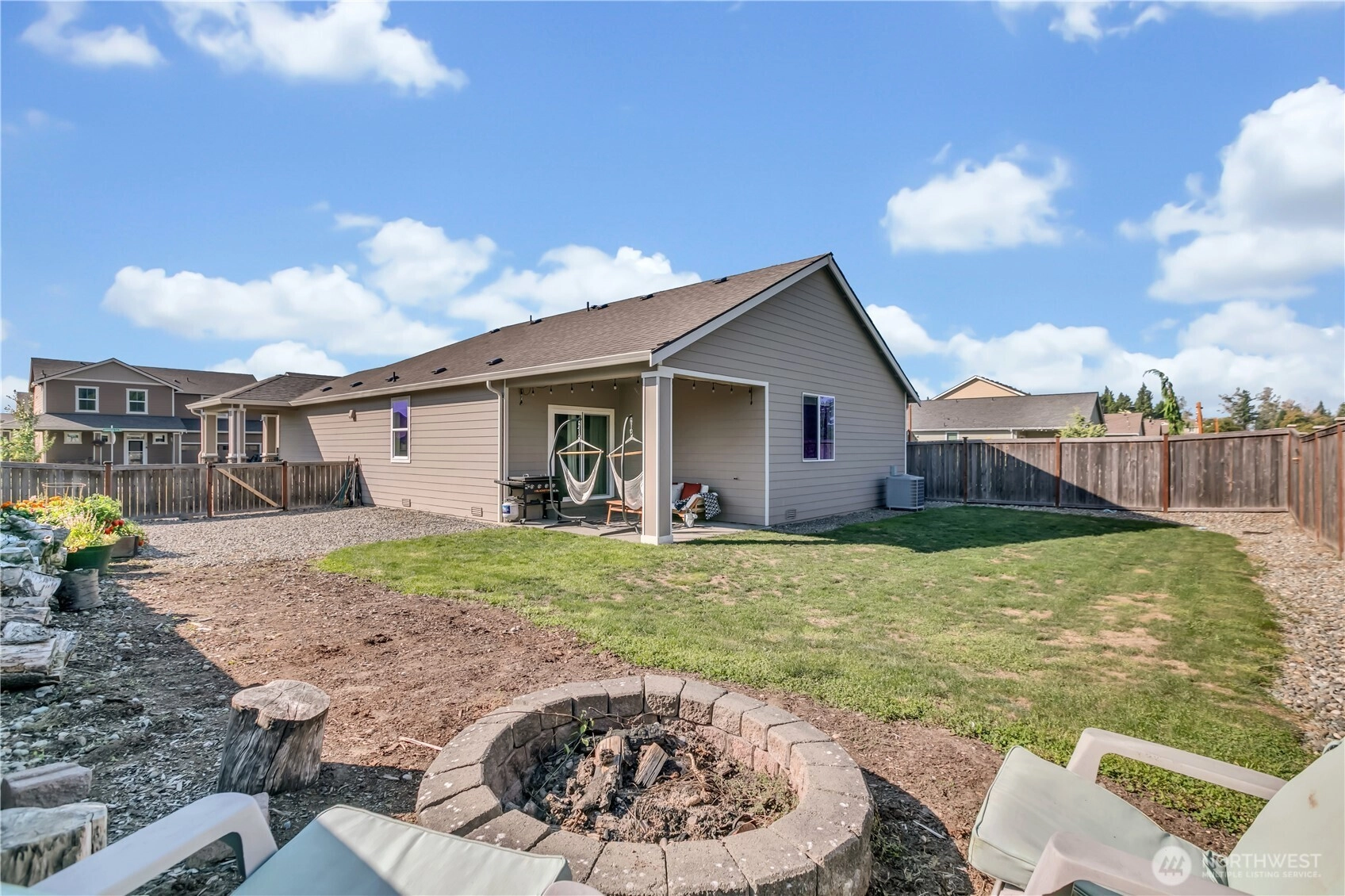 Nestled at the base of Mt. Peak in the scenic Suntop Farms neighborhood, this inviting corner lot RAMBLER offers the perfect blend of comfort & community! Find 1,480 sqft of open living space, 3 beds & 2 full baths, all on a fully fenced lot w/ NO rear neighbors! Inside find formal living & dining rooms, kitchen w/ SS appliances, quartz counters, custom tile backsplash & convenient pantry. Durable LVP flooring throughout the main living areas & newer carpet in bedrooms. Primary suite features 5-piece bath & walk-in closet. Outside enjoy the fenced backyard w/ covered patio. 2 car garage provides more room for storage w/ custom racks. Stay comfy year-round w/ new AC! Just minutes from downtown Enumclaw, walking trails, shopping and schools!