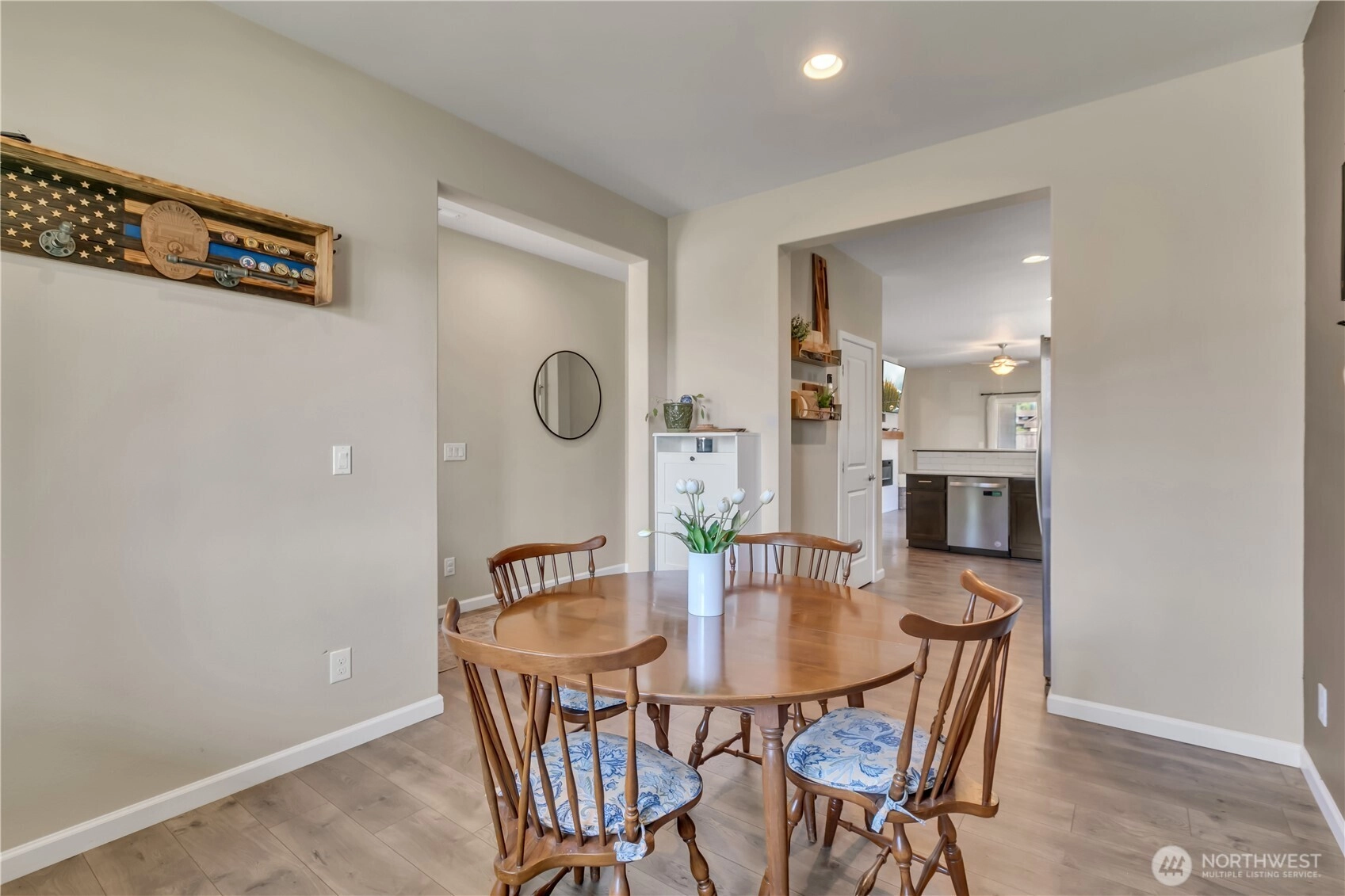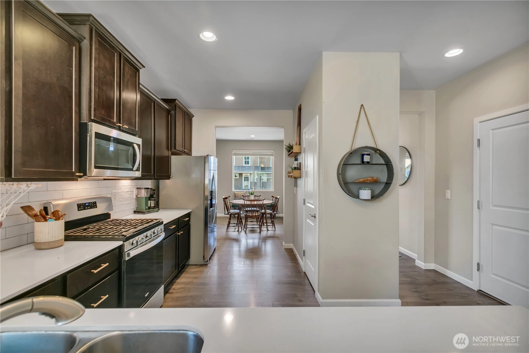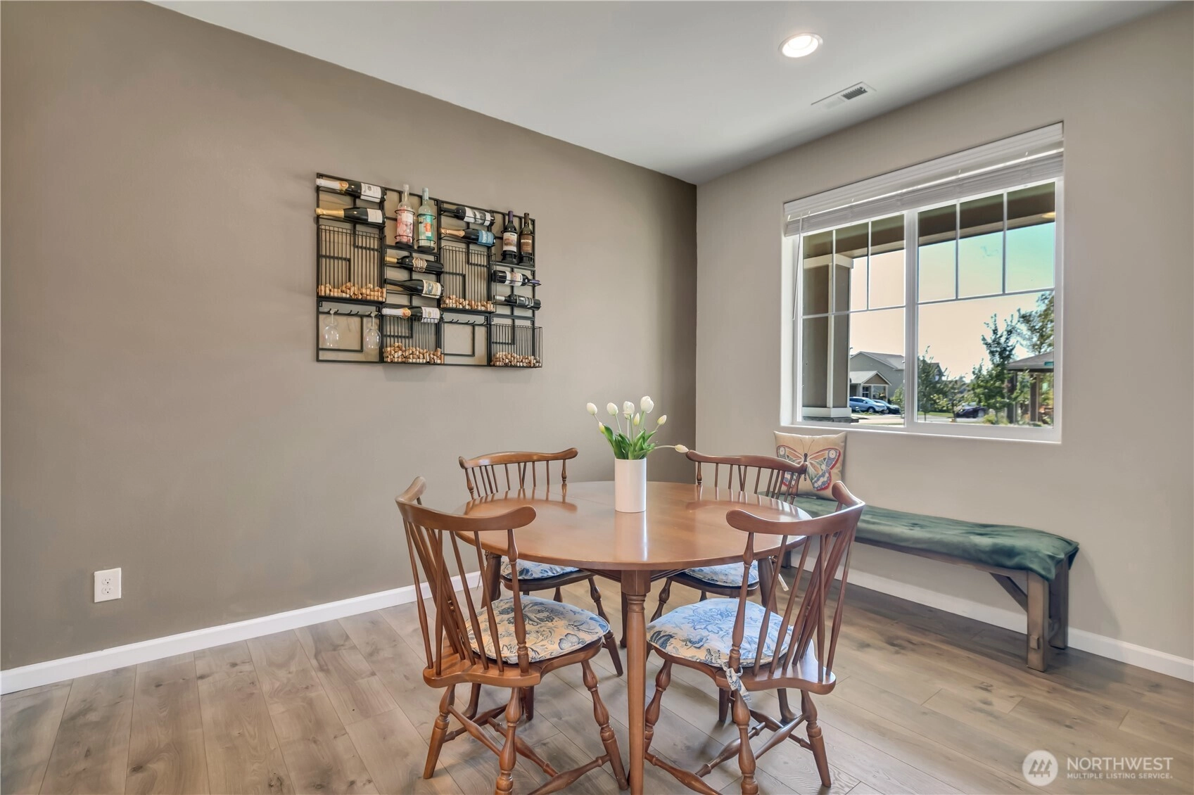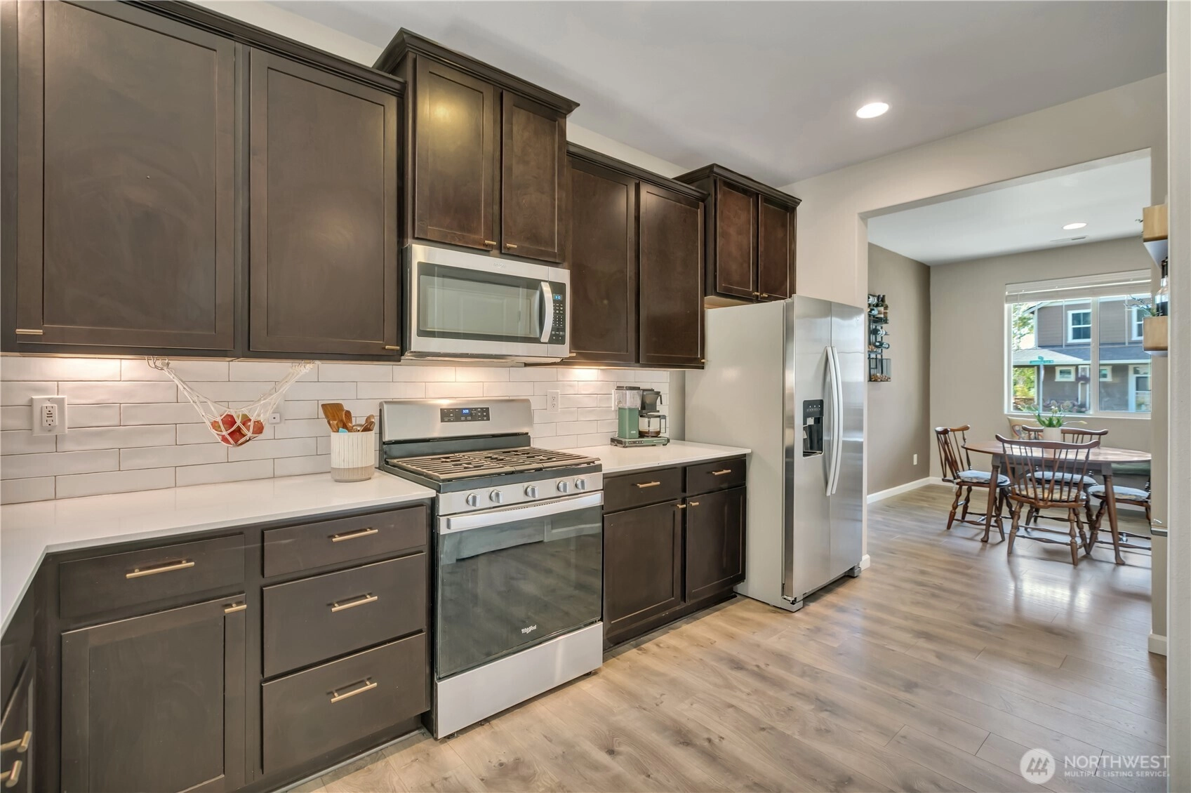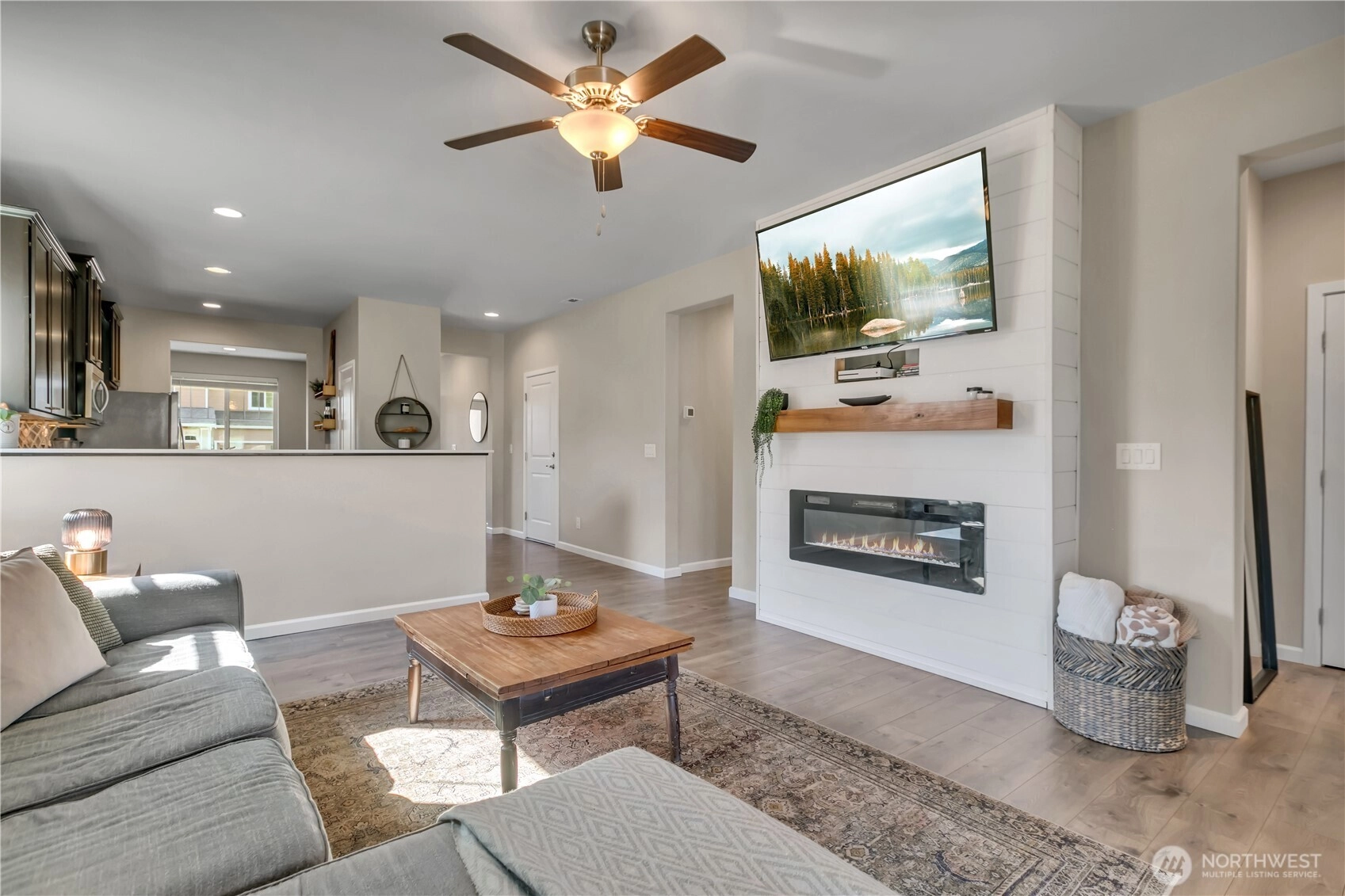 Nestled at the base of Mt. Peak in the scenic Suntop Farms neighborhood, this inviting corner lot RAMBLER offers the perfect blend of comfort & community! Find 1,480 sqft of open living space, 3 beds & 2 full baths, all on a fully fenced lot w/ NO rear neighbors! Inside find formal living & dining rooms, kitchen w/ SS appliances, quartz counters, custom tile backsplash & convenient pantry. Durable LVP flooring throughout the main living areas & newer carpet in bedrooms. Primary suite features 5-piece bath & walk-in closet. Outside enjoy the fenced backyard w/ covered patio. 2 car garage provides more room for storage w/ custom racks. Stay comfy year-round w/ new AC! Just minutes from downtown Enumclaw, walking trails, shopping and schools!
